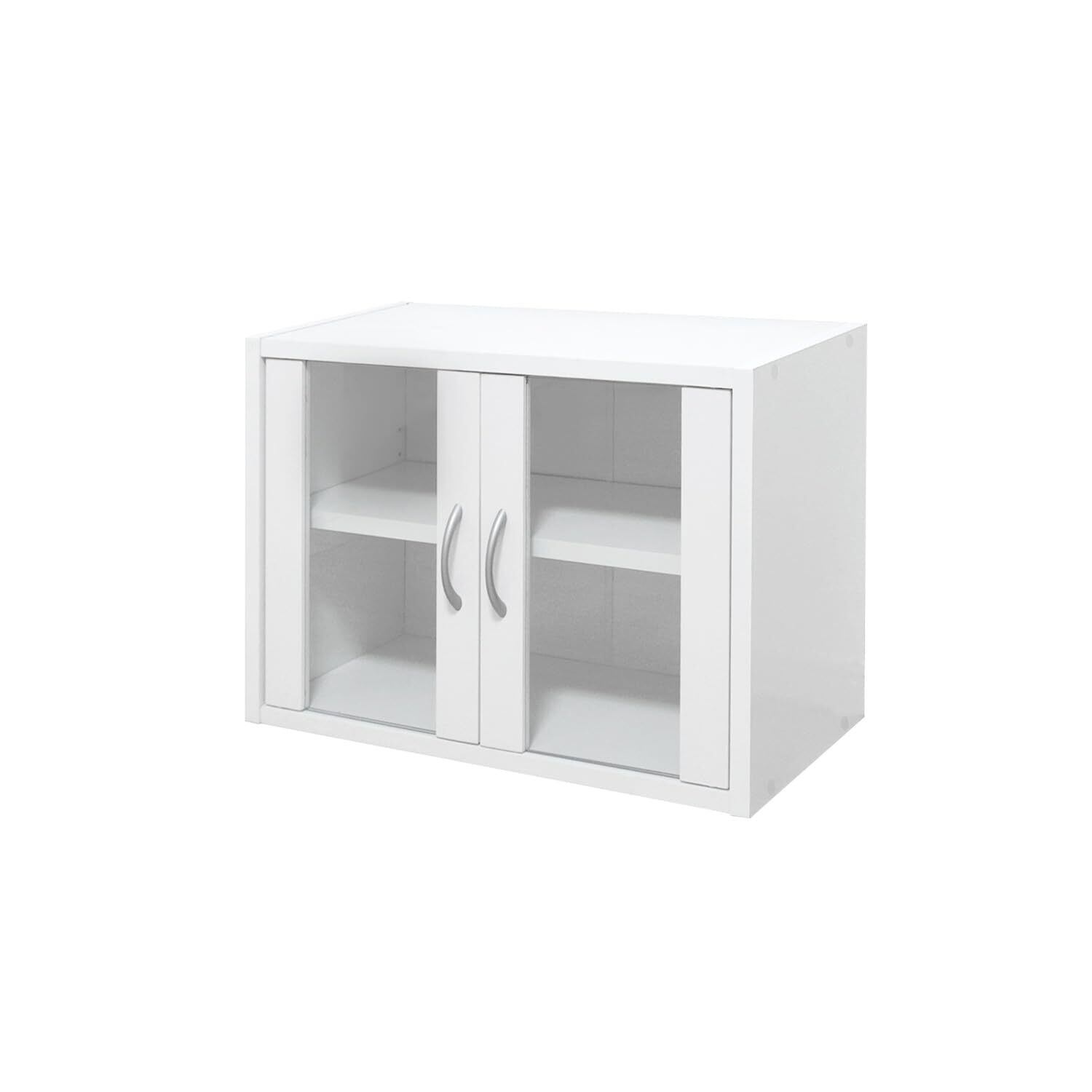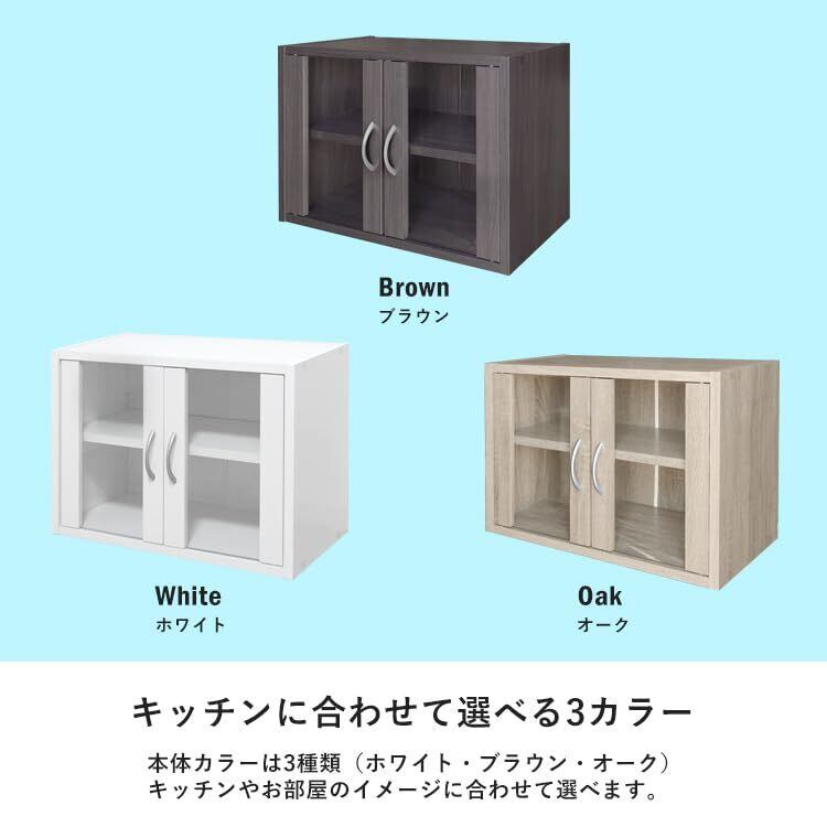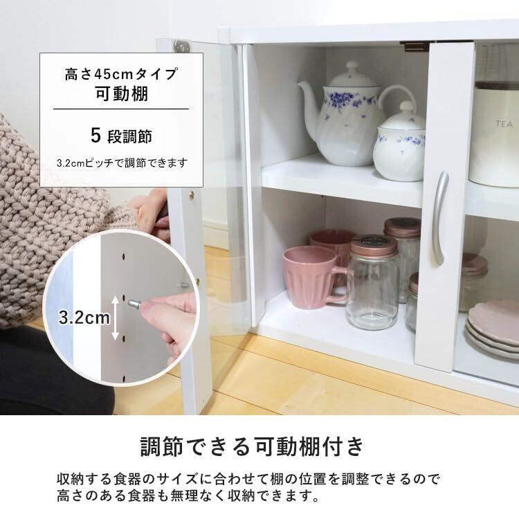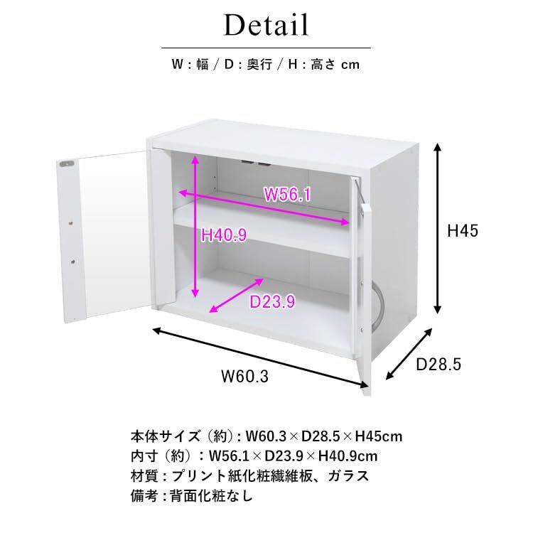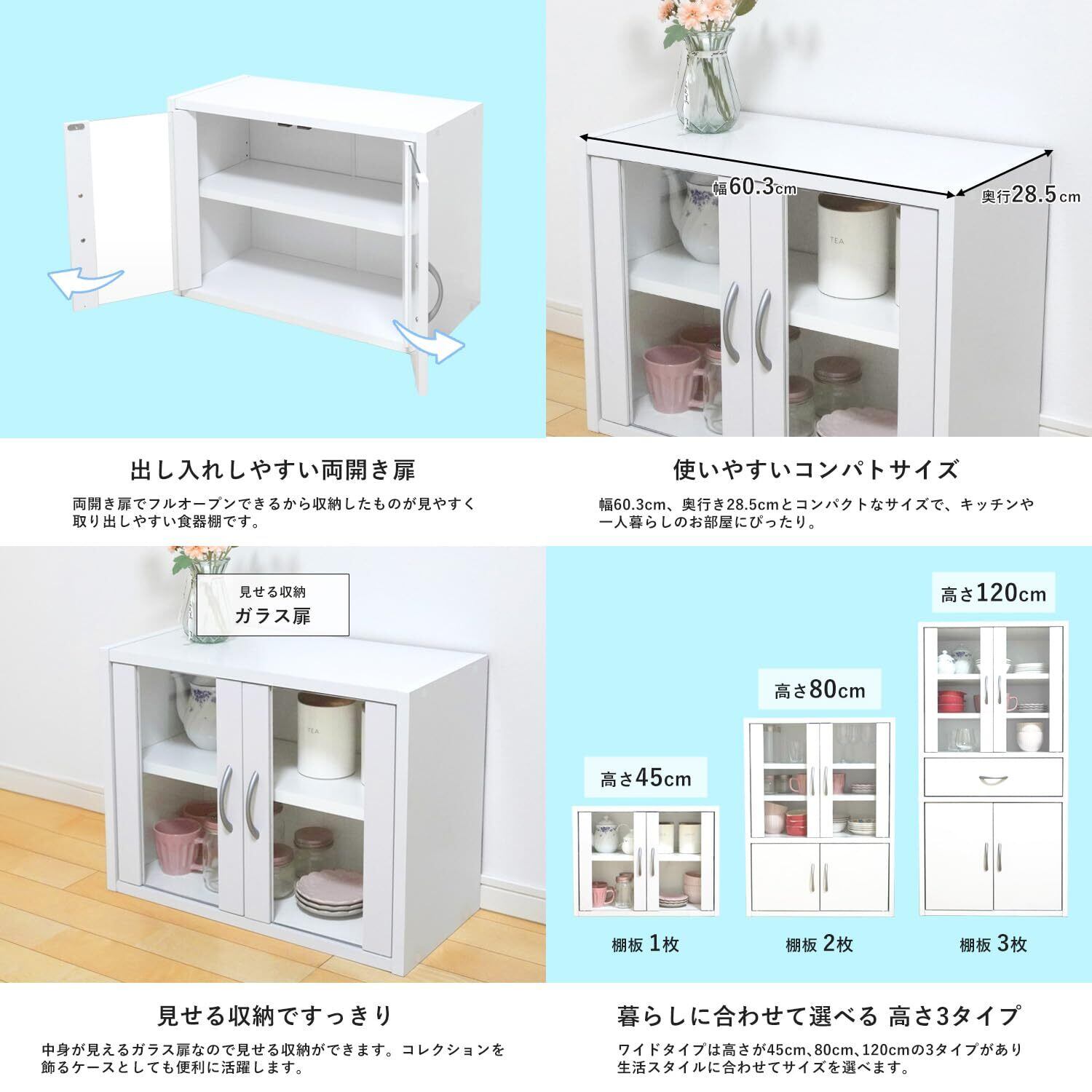 キッチンラック 食器棚 ワイド 幅60cm 高さ45cm ロータイプ コンパクト 薄型 一人暮らし 扉タイプ ガラス扉 シンプル ホワイト 組立品