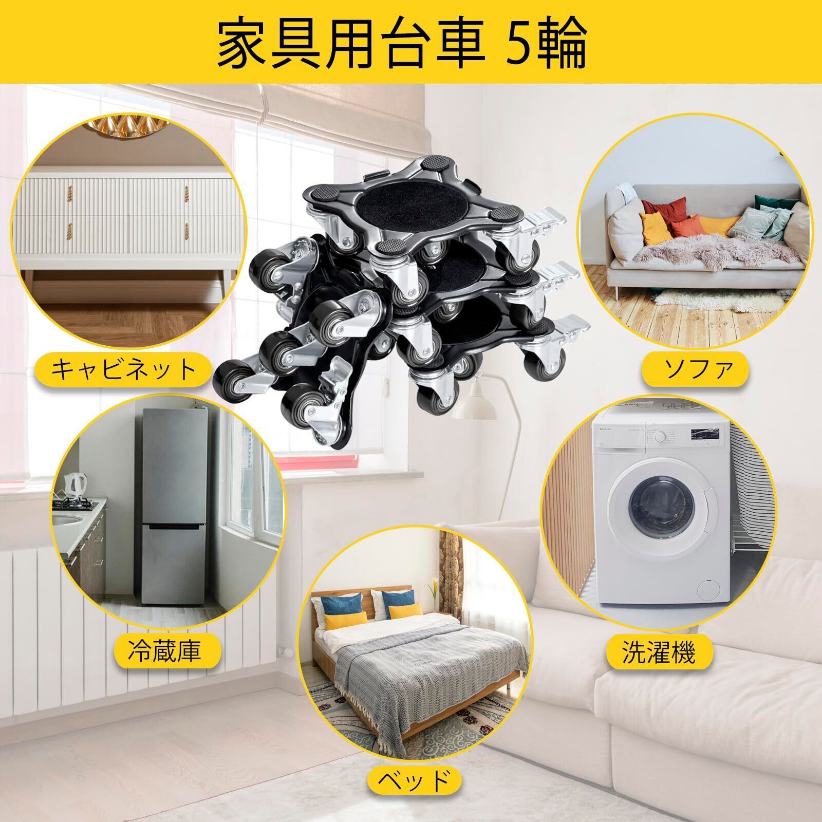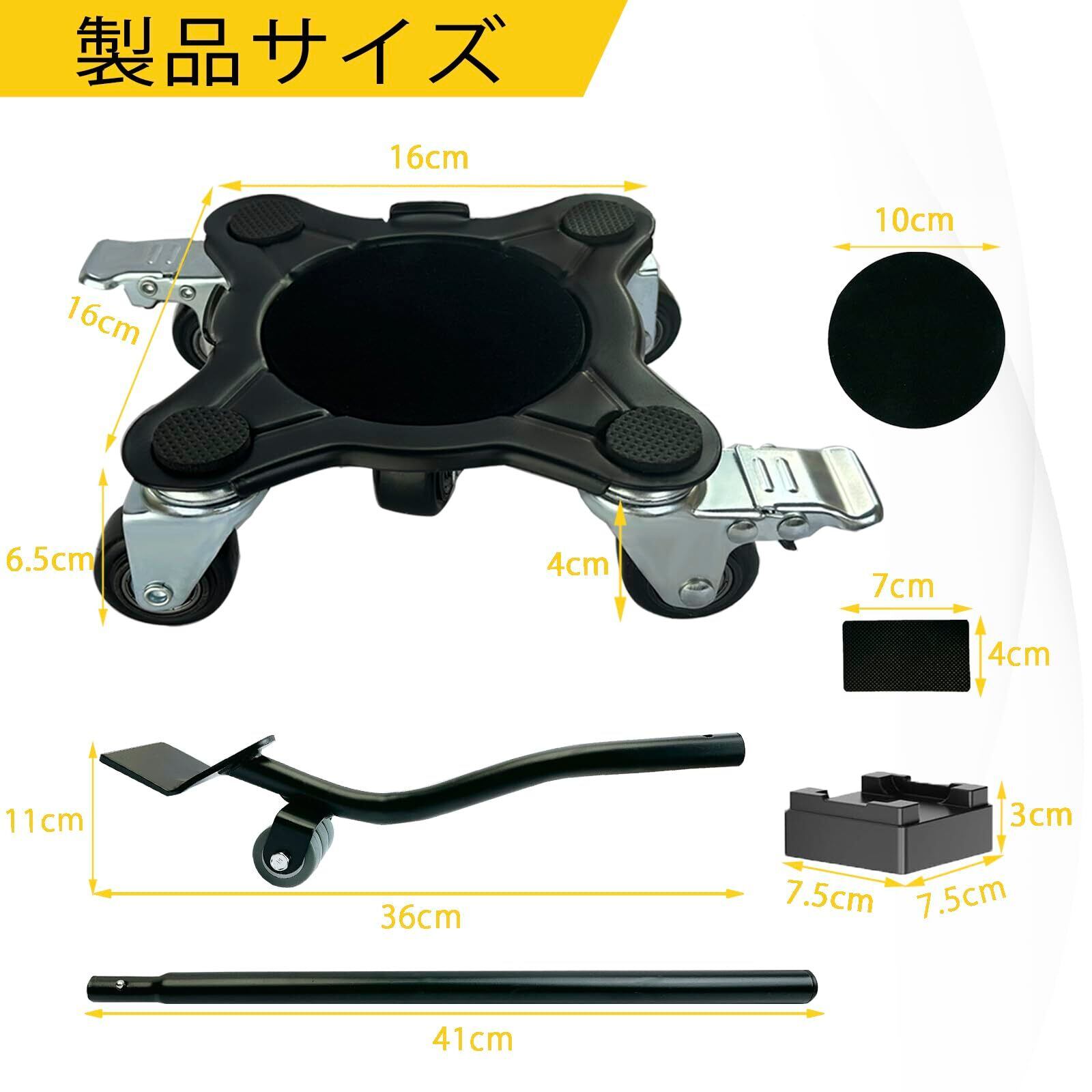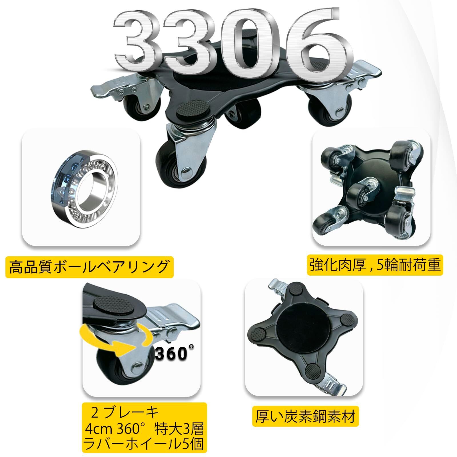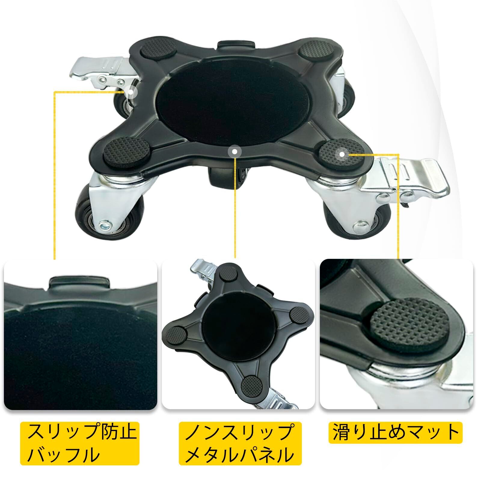 (5輪) 家具台車セット4点セット、カーボンスチールパネルヘビーデューティ台車、ブレーキ付き360°回転、ダブルベアリング、耐荷重1500KG ひとりでも運べる 移動 家具 引っ越、静音 キャスター、クローリングポール、延長ポール、サポートブロック、衝撃吸収パッドを装備 | kki