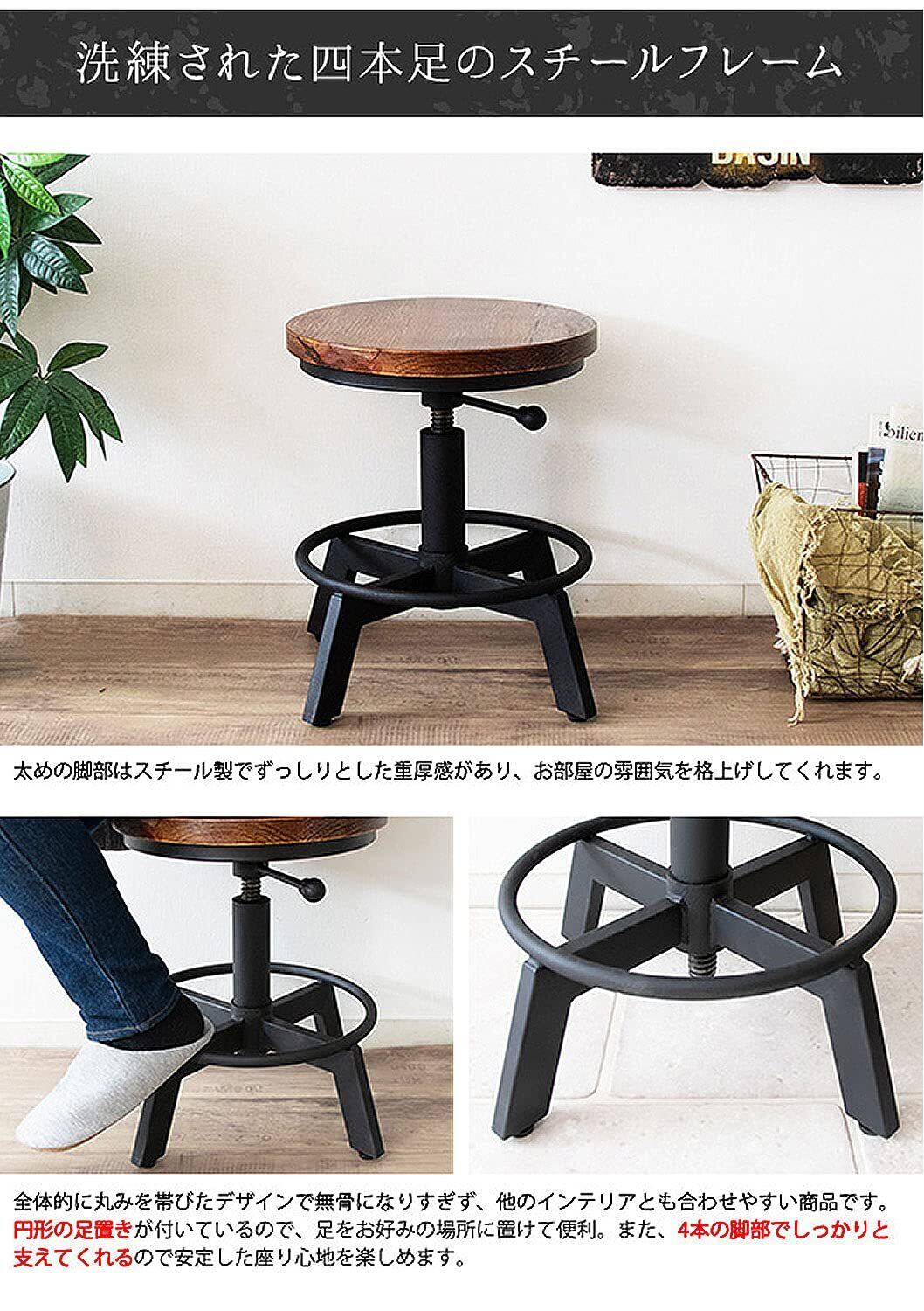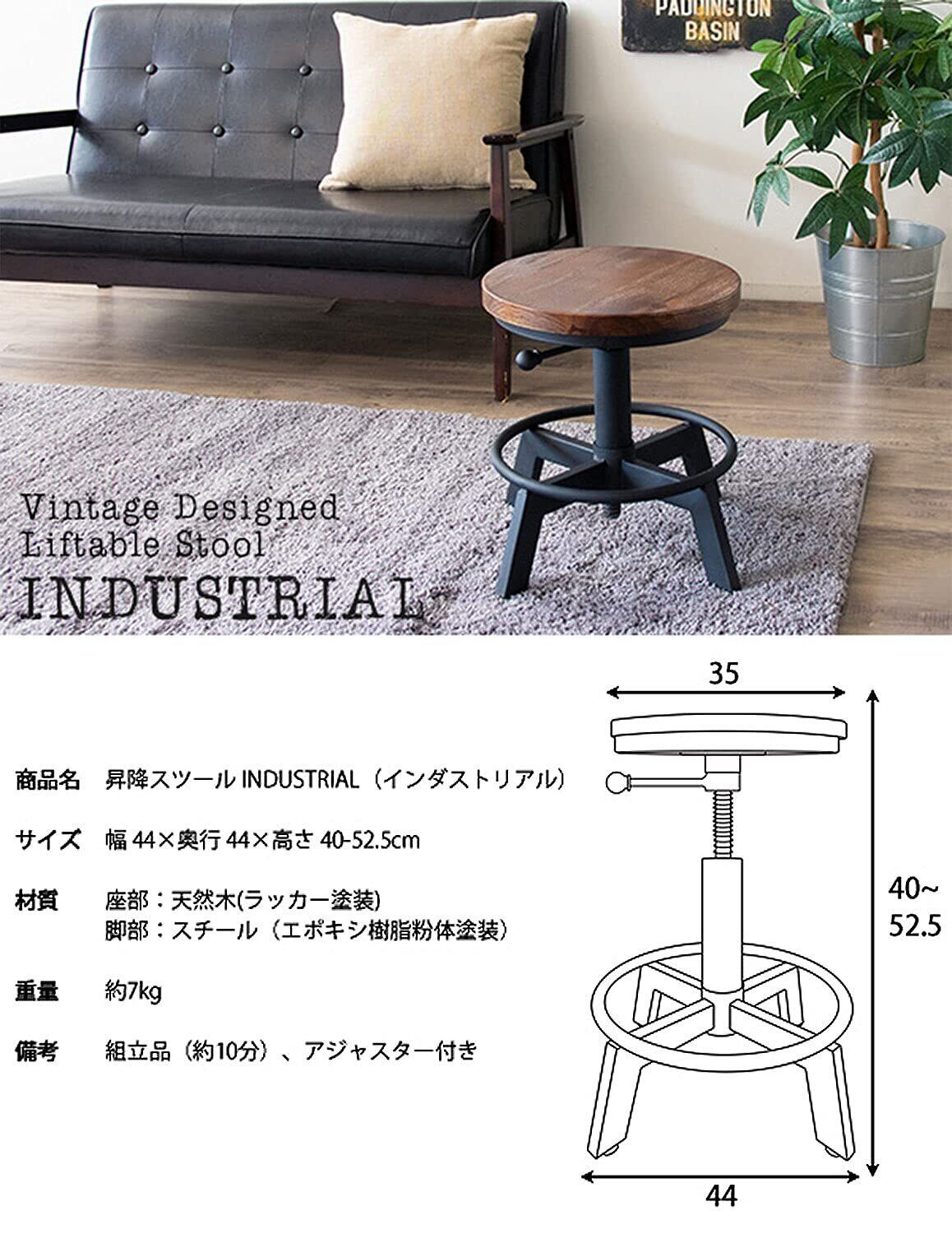 宮武製作所 昇降スツール INDUSTRIAL(インダストリアル) KNC-A500 ブラウン 幅 44×奥行44×高さ 40~52.5cm