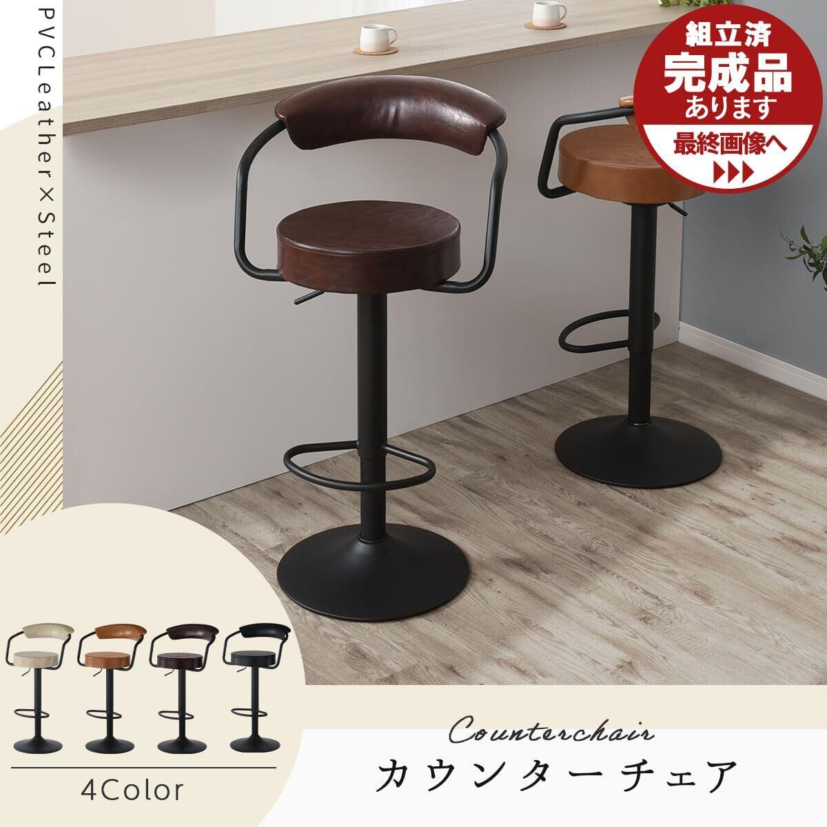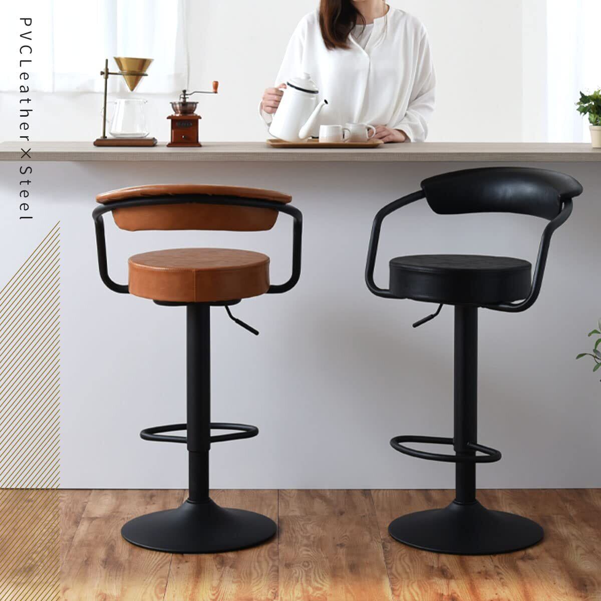 ぼん家具 カウンターチェア 背もたれ付き 昇降式 座面高65.5~86cm 回転 バーチェア ダイニング チェア ハイチェア 耐荷重120kg ブラック