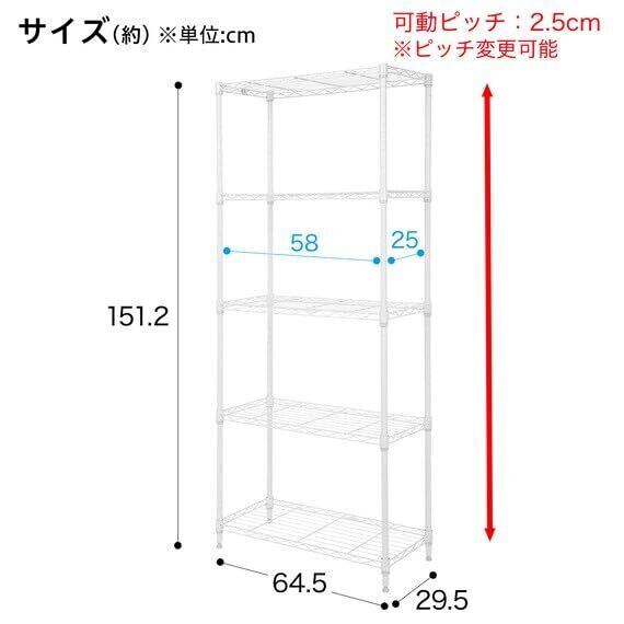 ニトリ(NITORI) スチールラック STANDARD 4段 ホワイト 幅64.5×奥行29.5×高さ151.2cm 8791251