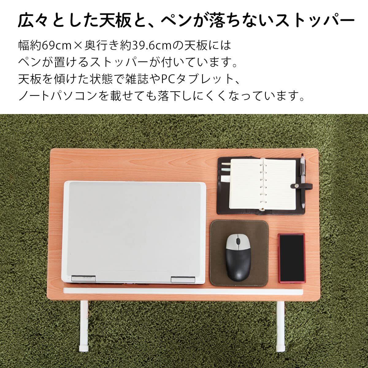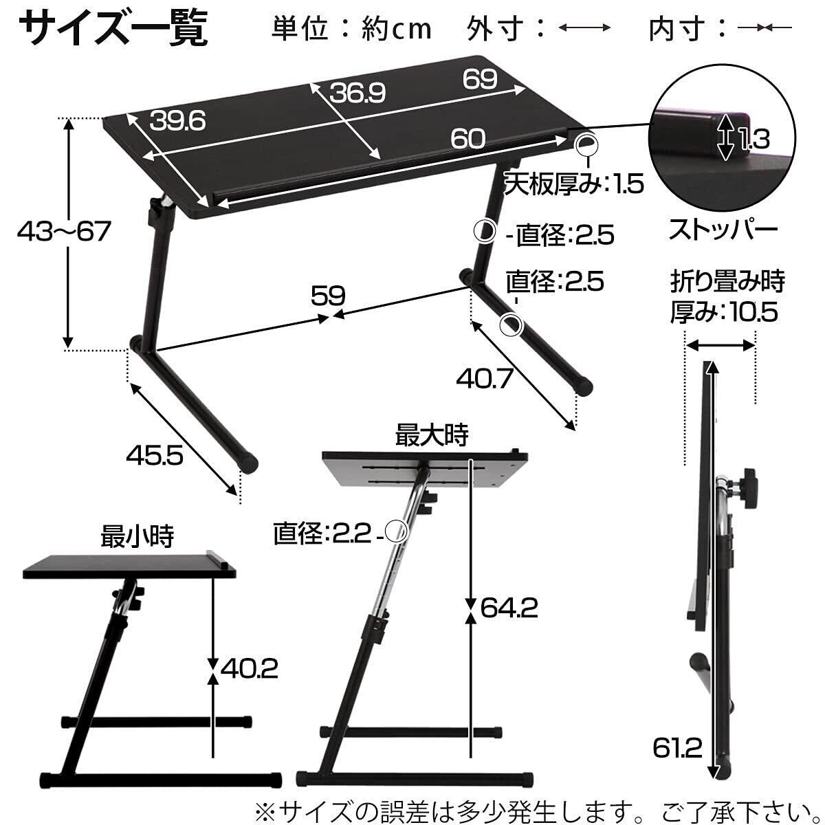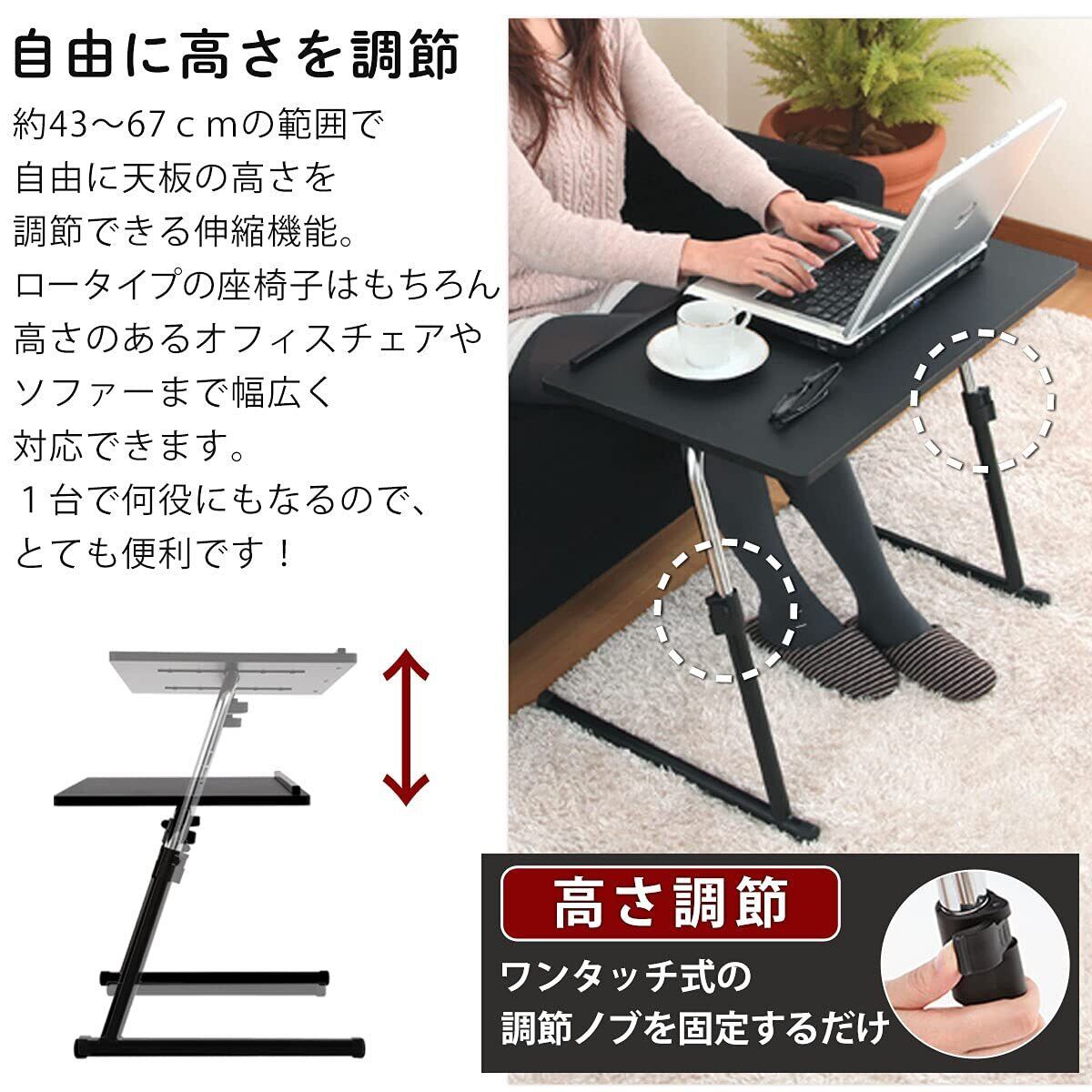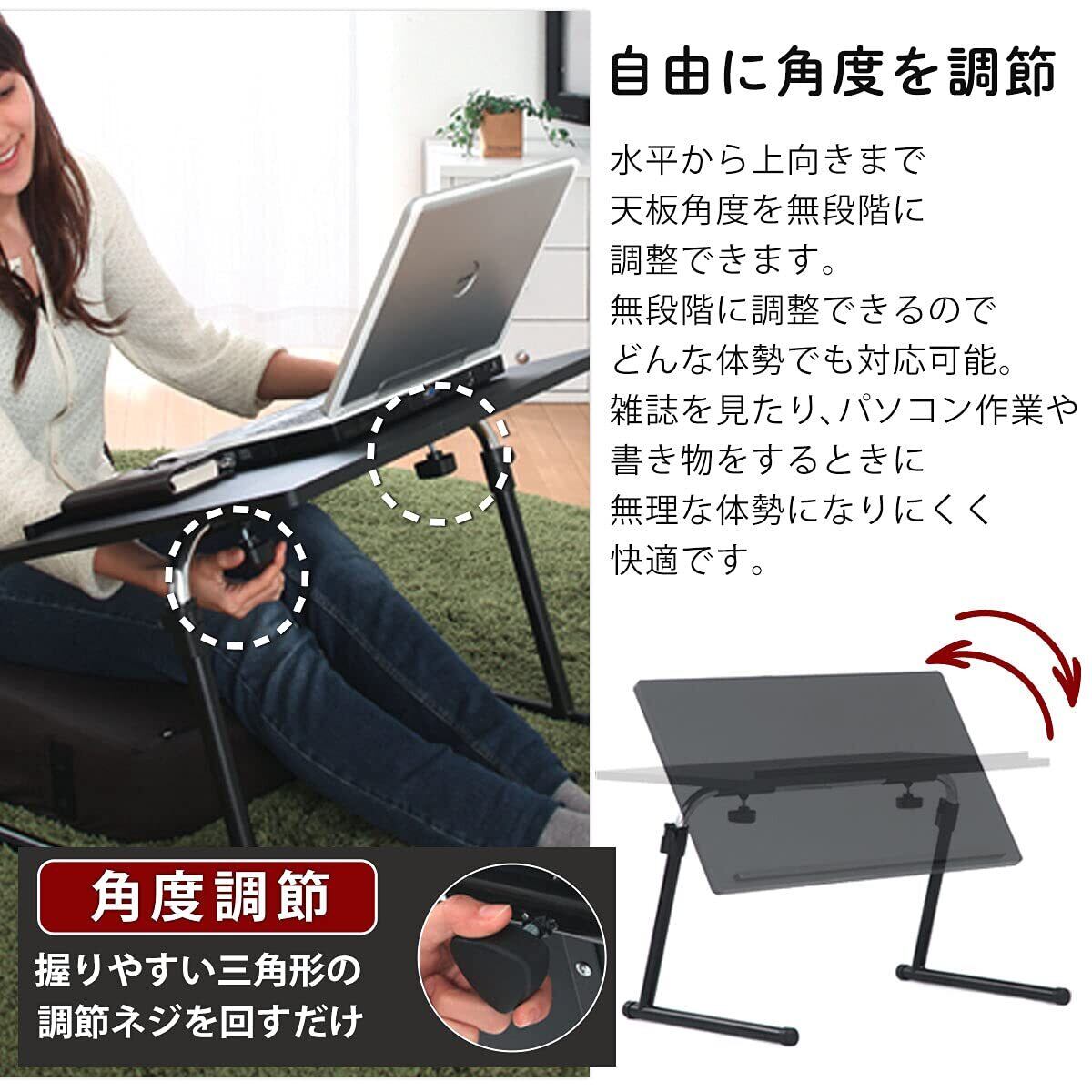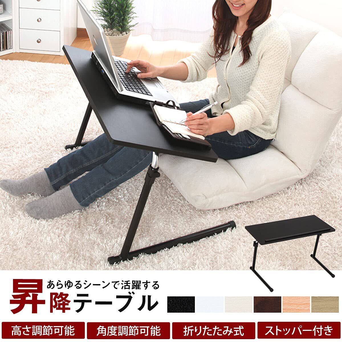 ぼん家具 サイドテーブル 折りたたみ 昇降式テーブル 角度調節可能 木製 ソファテーブル ブラウン