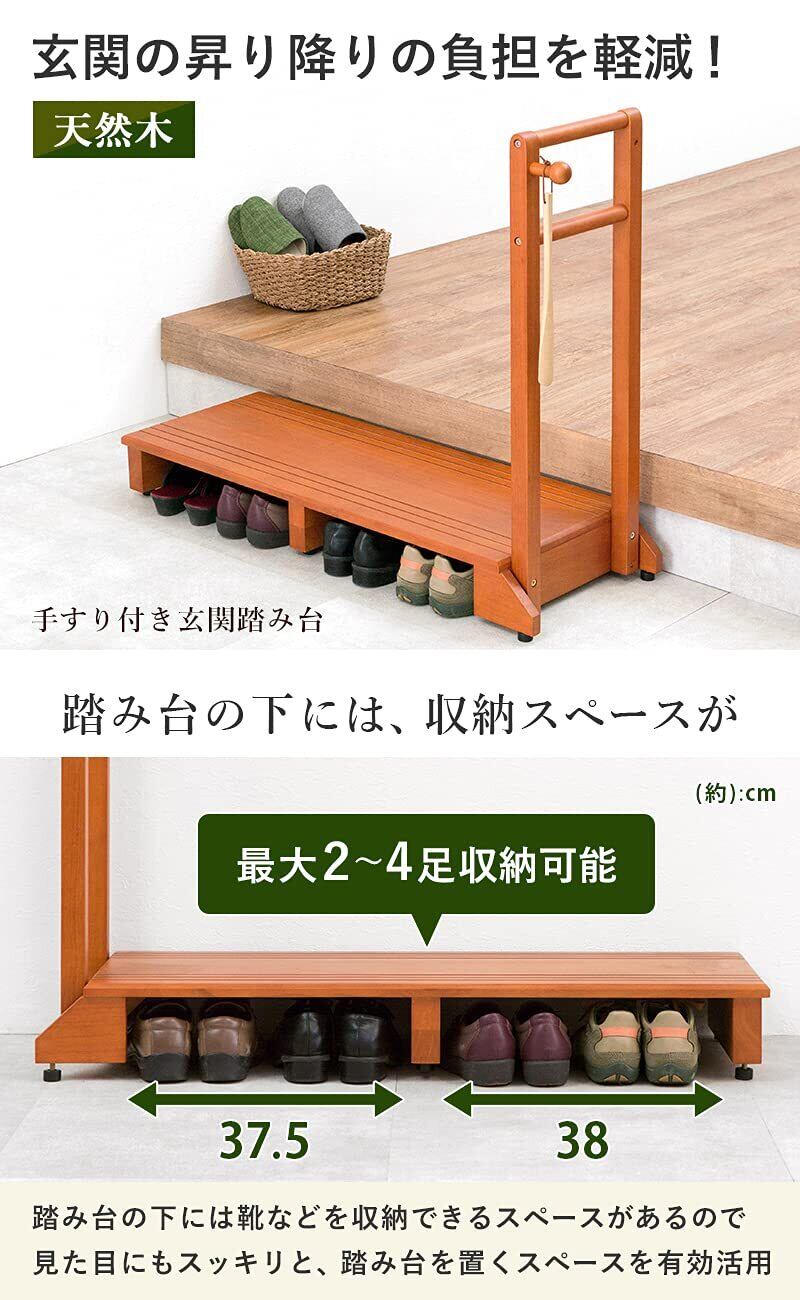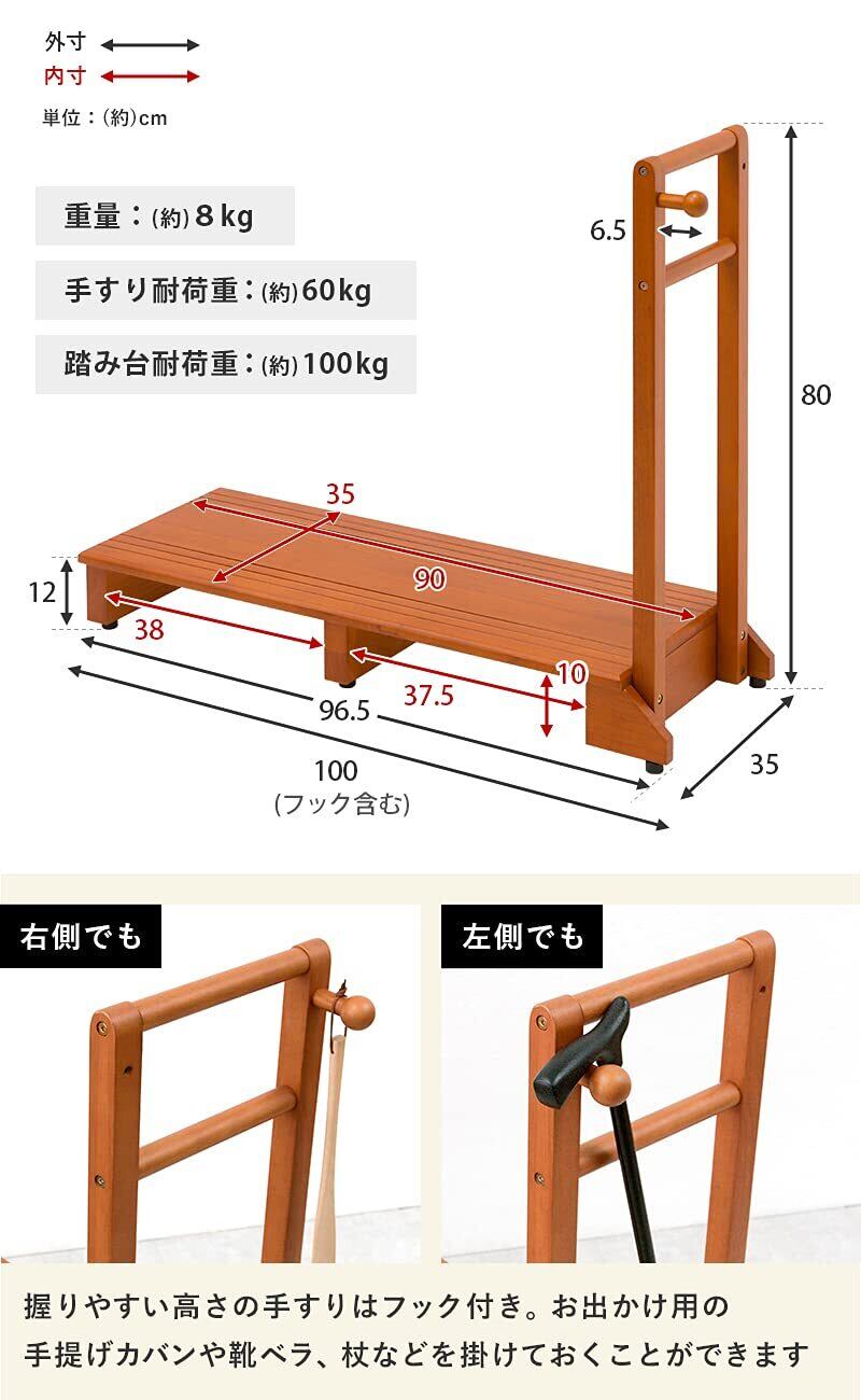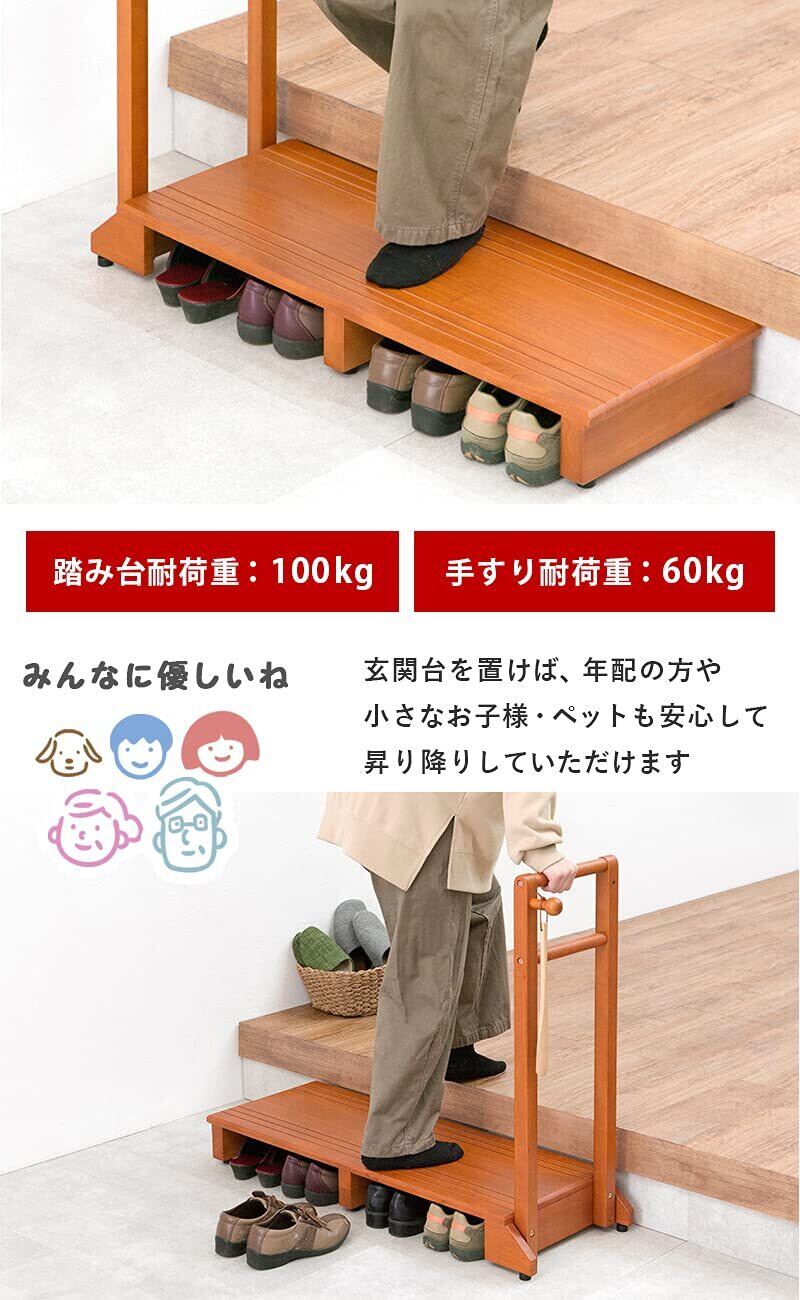 萩原(Hagihara) 玄関踏み台 玄関台 手すり付き踏み台 手すり台 ワイド 【安心の耐荷重100kg】 ひざ 腰 負担軽減 子供 高齢者 ペット 幅100 ライトブラウン VH-7934LBR-W | kki