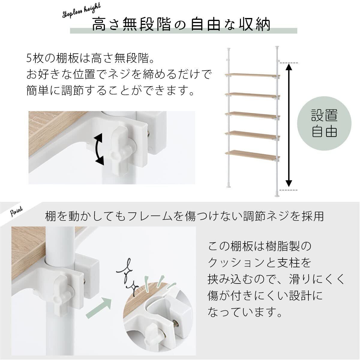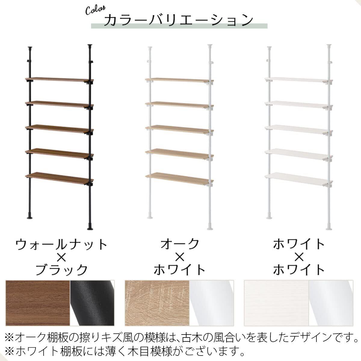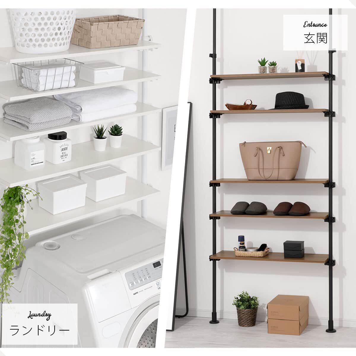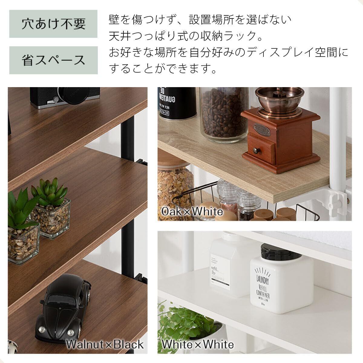 ぼん家具 つっぱりラック 幅90×奥行24×高さ195~276cm 壁面収納 つっぱり 棚 ウォールラック 可動棚板 リビング ウォールナット×ブラック