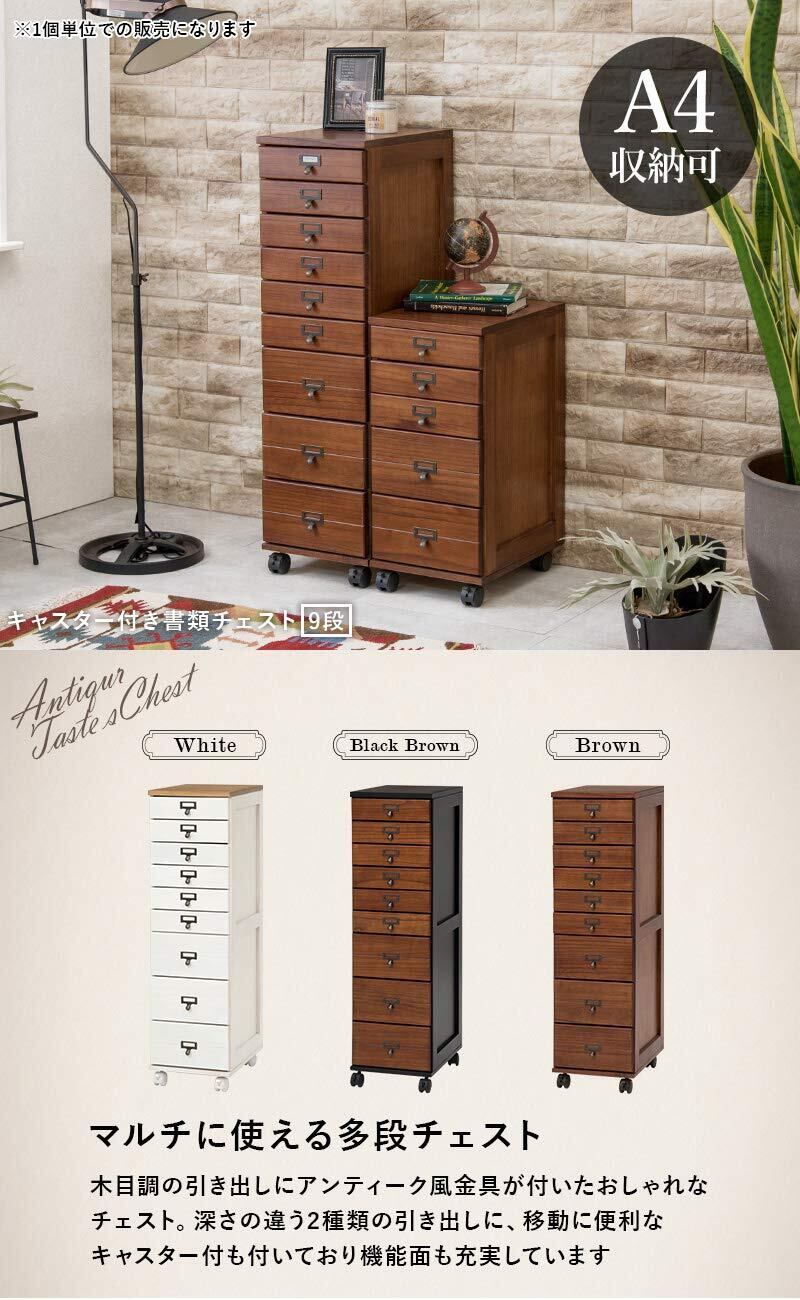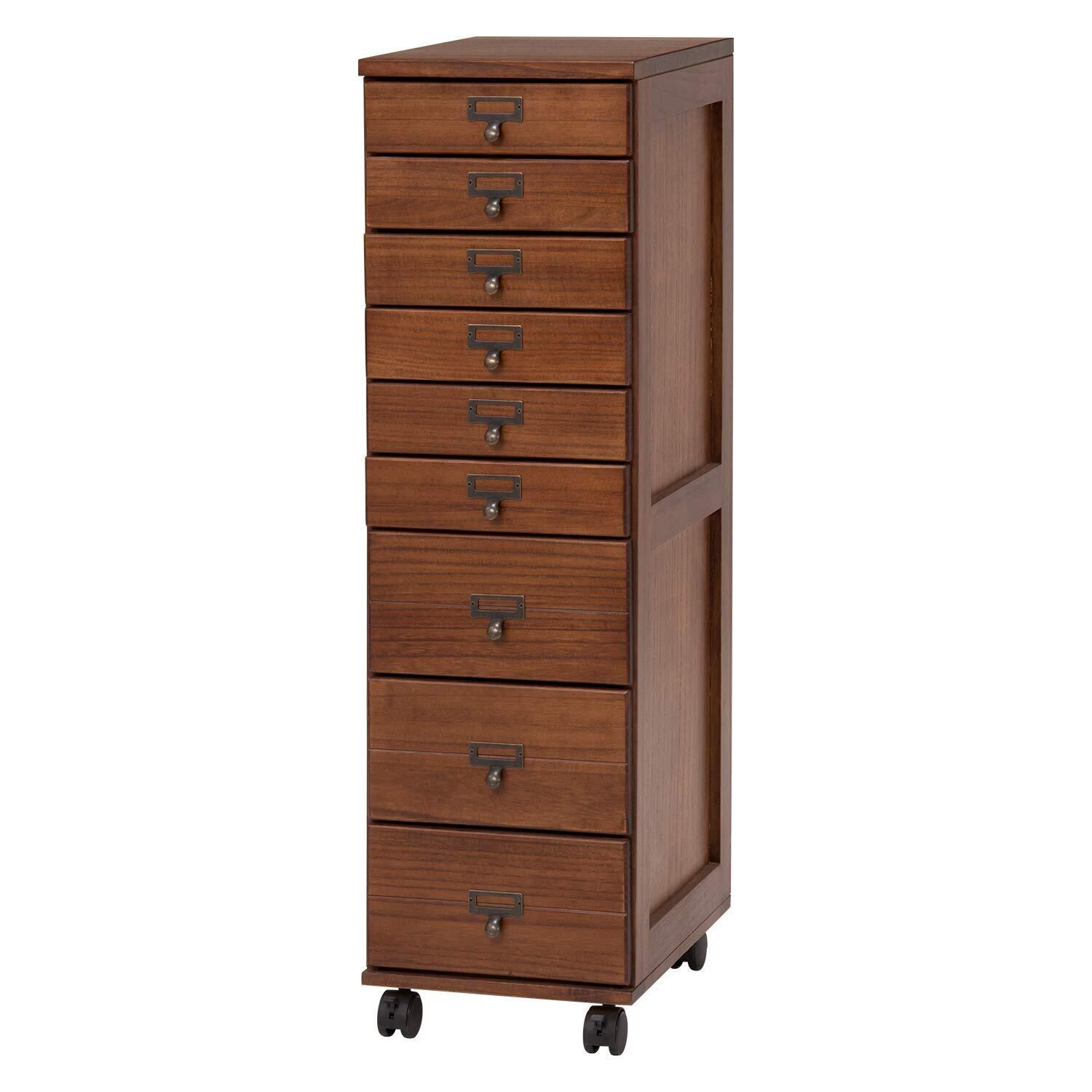 萩原(Hagihara) 多段チェスト 書類チェスト 書類 棚 A4 引出9段 【すぐに使えるほぼ完成品】キャビネット ドキュメント 天然木 ネームプレート付 キャスター付 ブラウン MCH-6171BR | kki