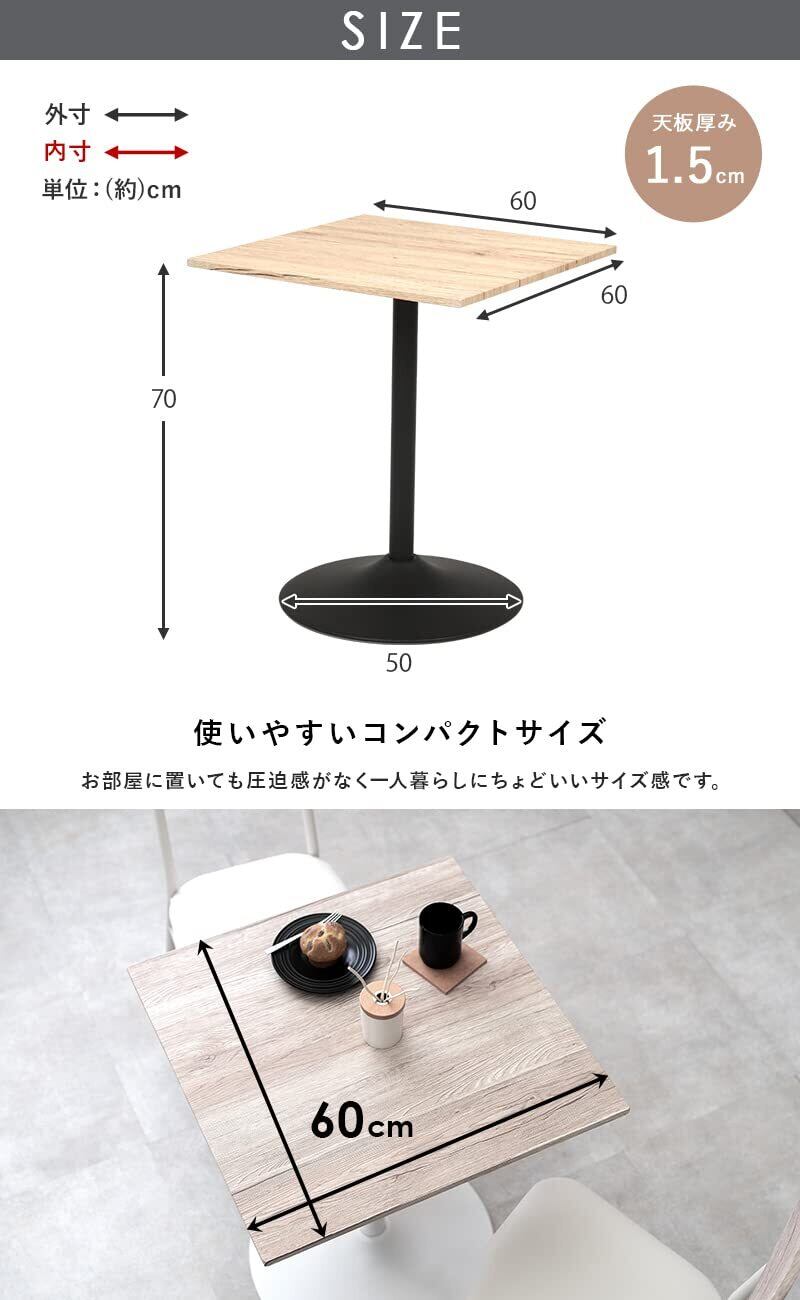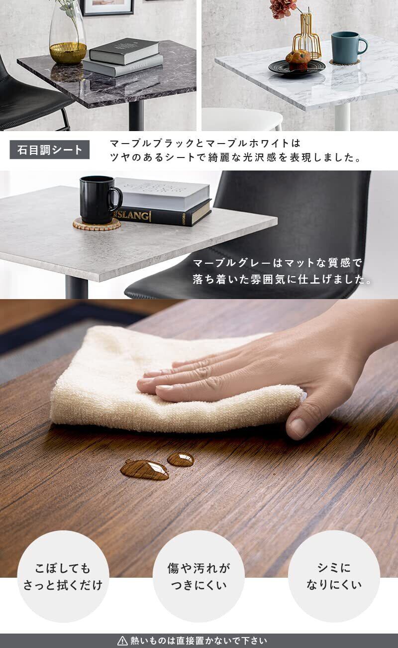 萩原 ダイニングテーブル カフェテーブル ダイニング 食卓 【大理石調天板×スチール脚】 正方形 角型 インダストリアル 幅60 奥行60 高さ70 マーブルブラック LT-4919MBK | kki