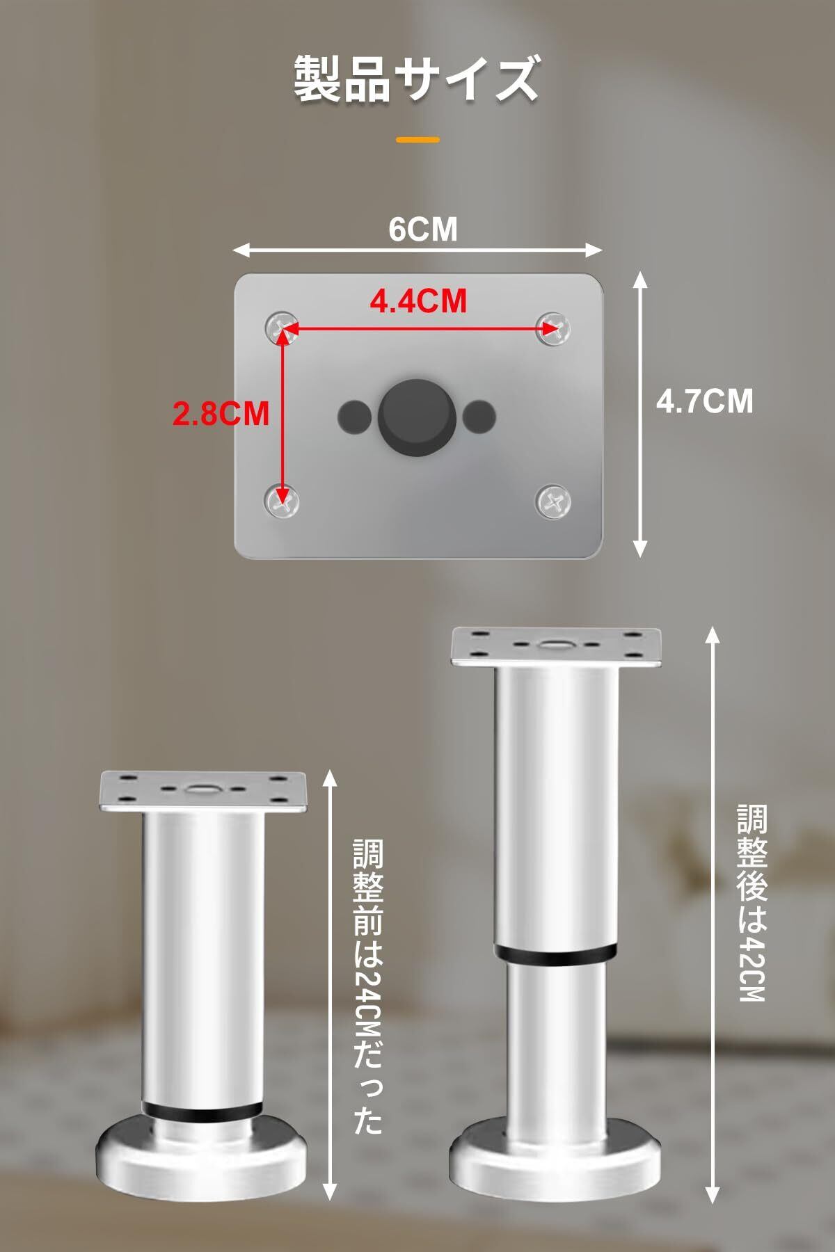 テーブル 脚 diy 家具脚 さ ささ ベッド 脚 ソファ 脚 高さ調整 脚 (ホワイト, 25cm-42cm)