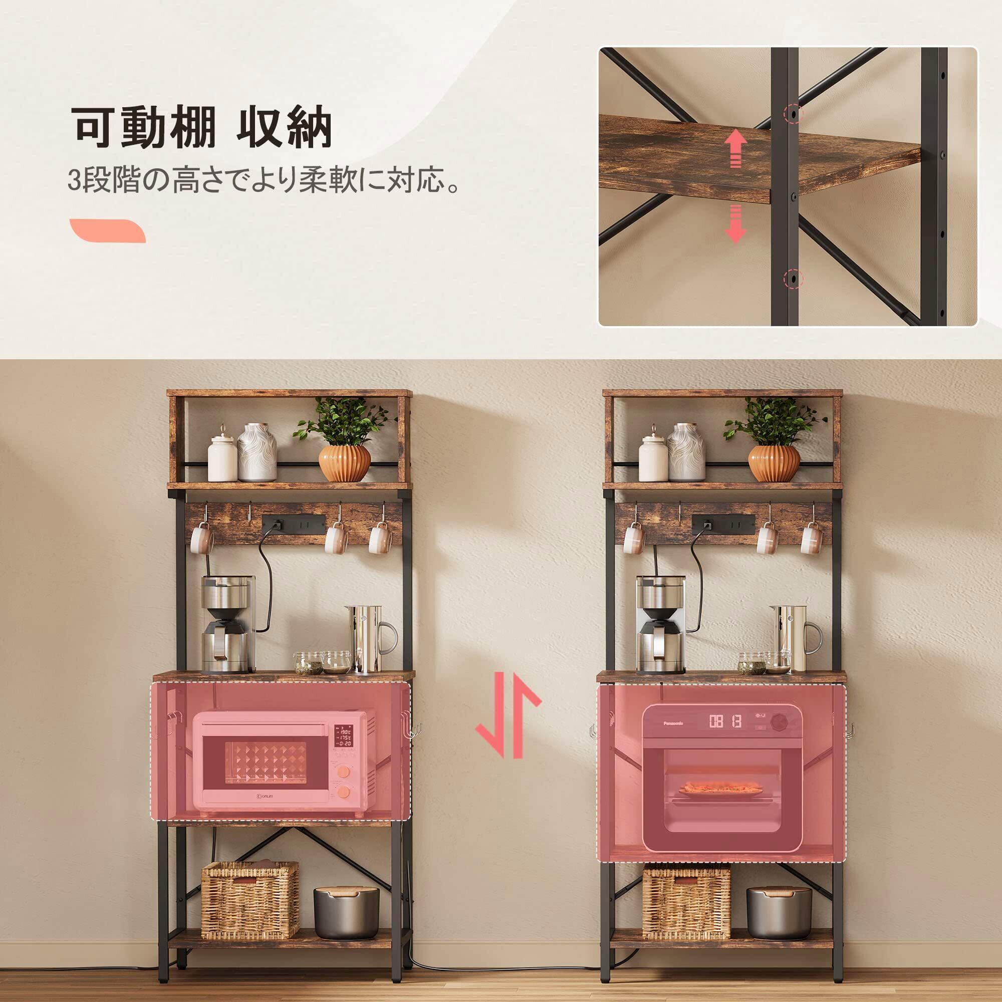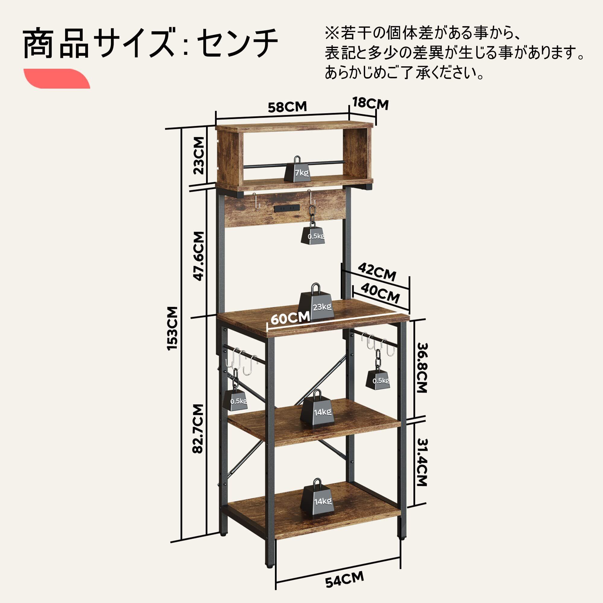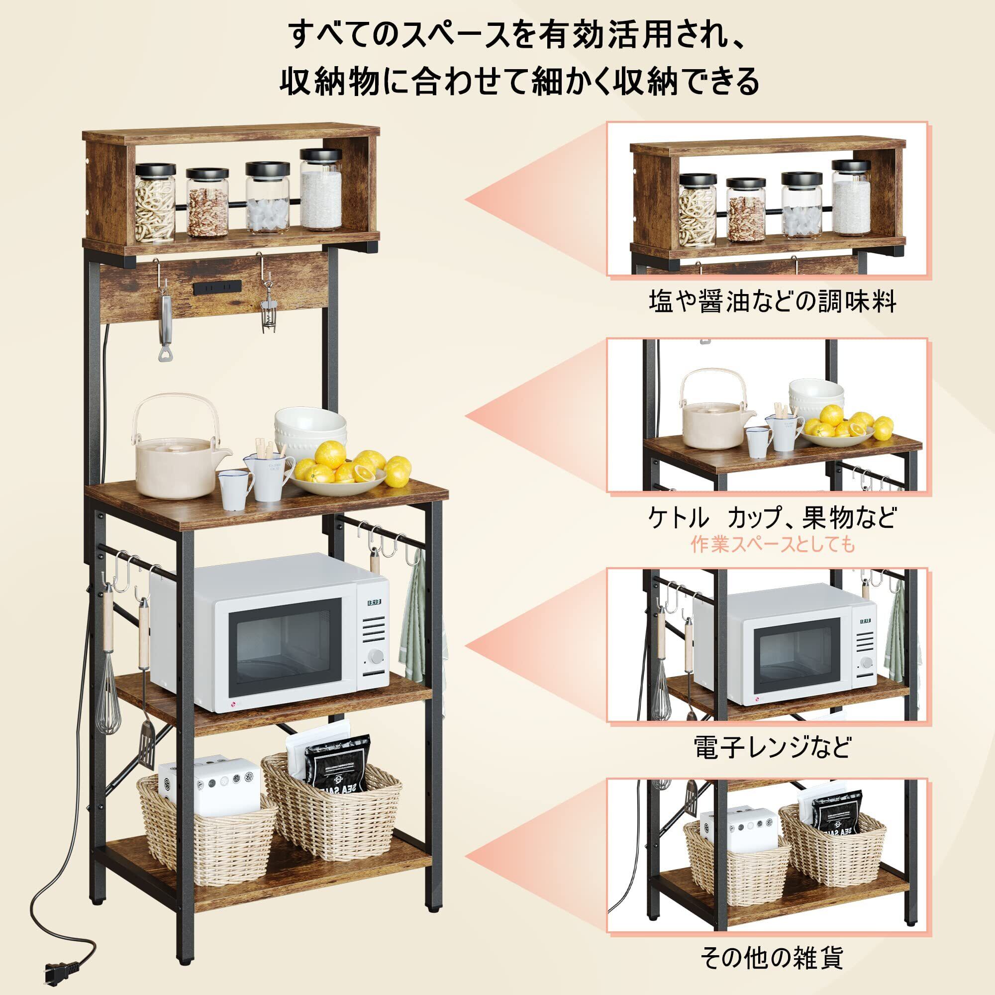 Bestier キッチンラック レンジ台 棚 レンジボード レンジおき台 2口コンセント付き 幅60cm キッチン収納 オープンラック オープンシェルフ レンジラック 省スペース (ブラウン) | kki