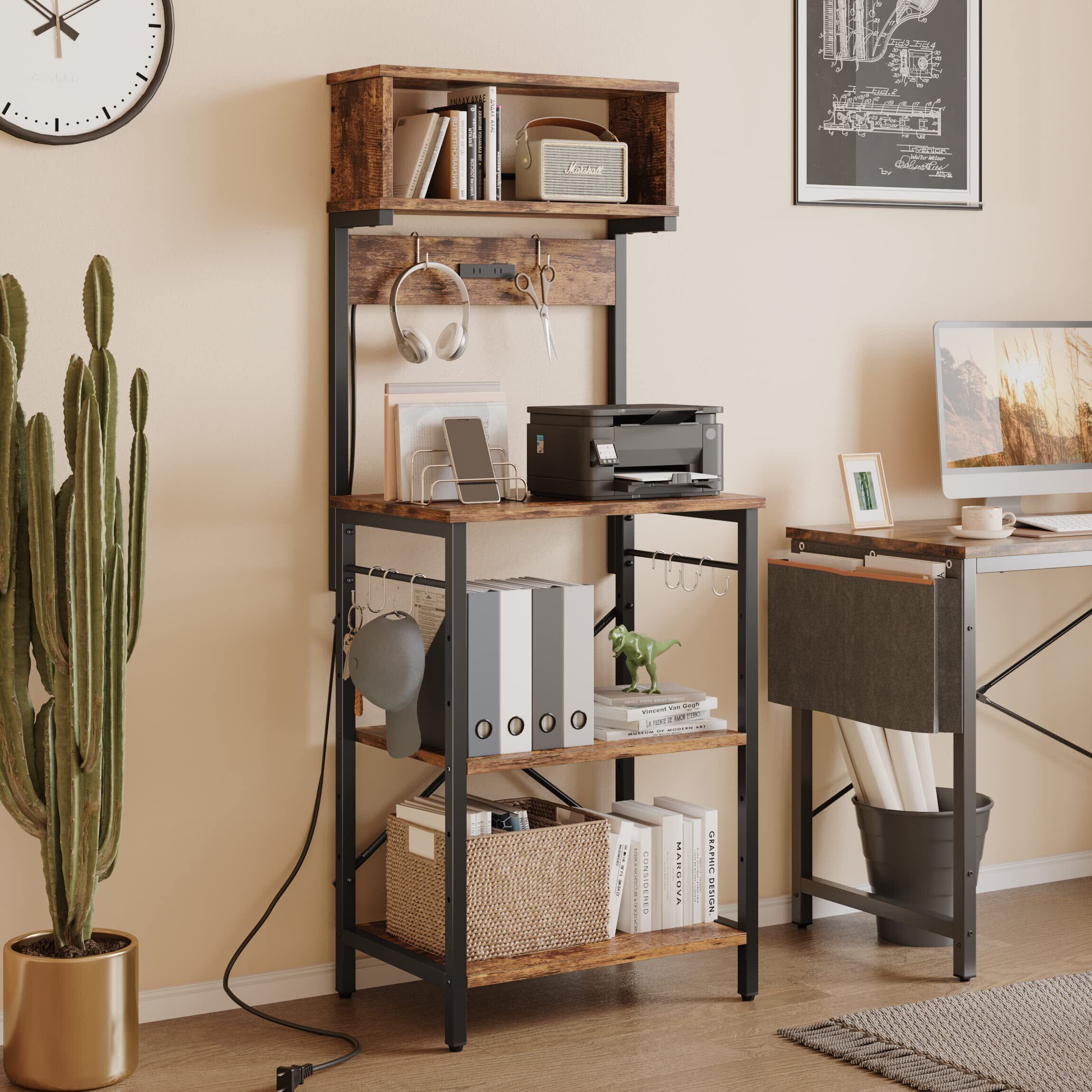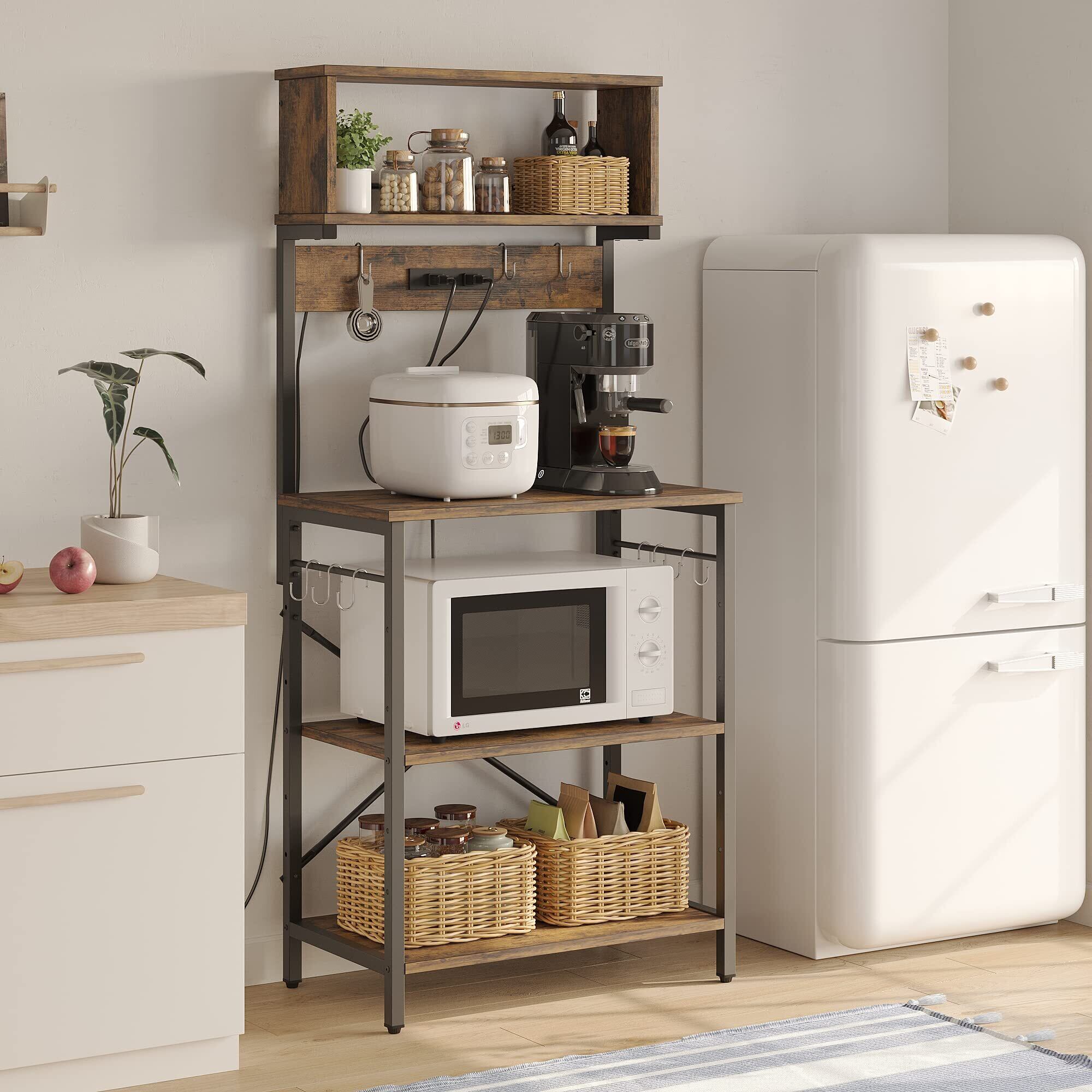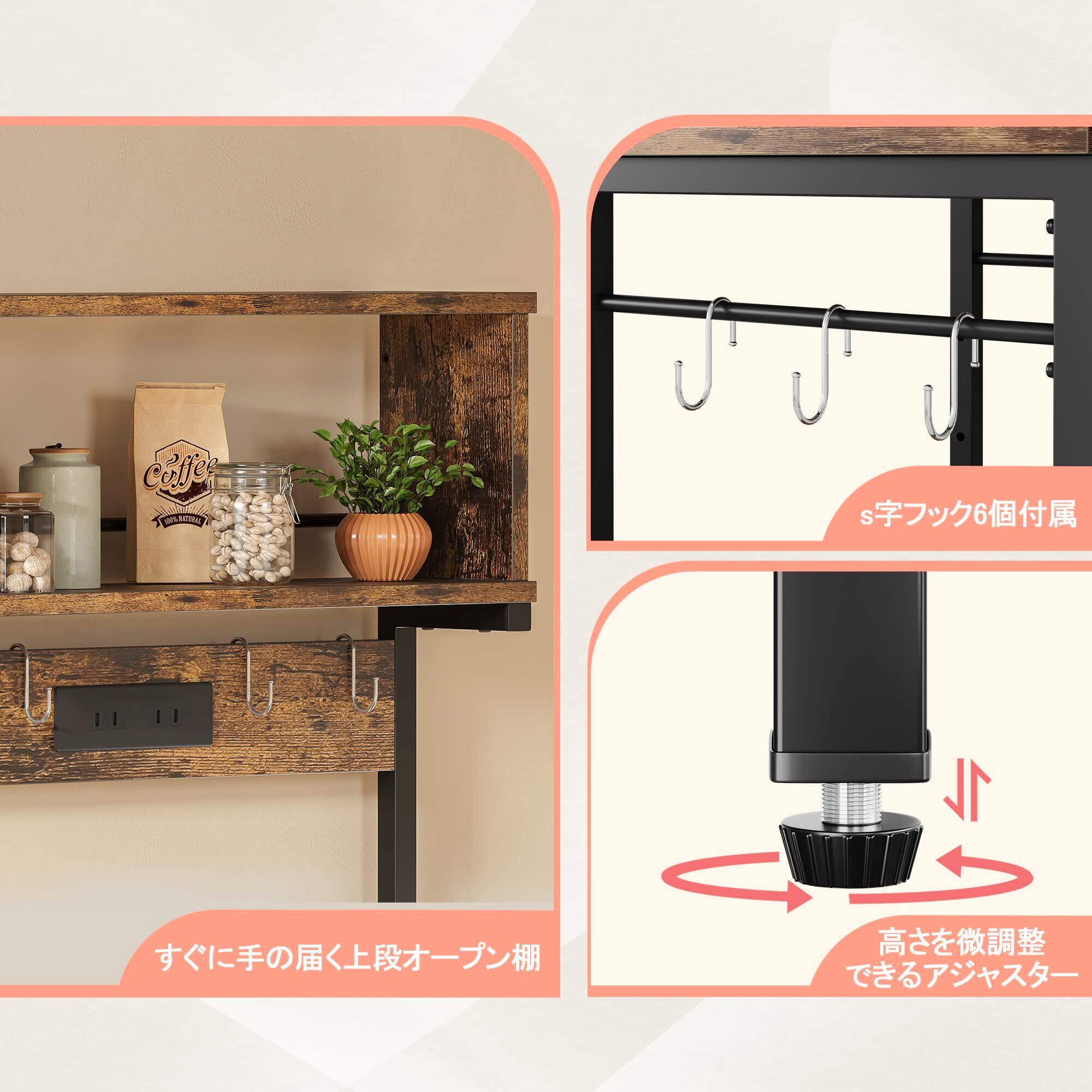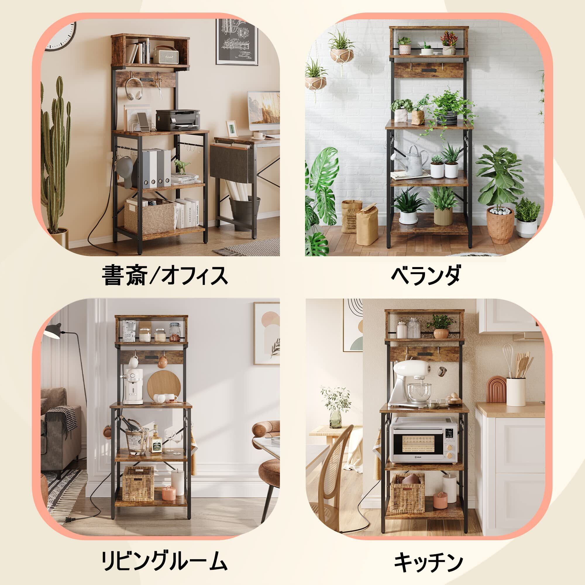Bestier キッチンラック レンジ台 棚 レンジボード レンジおき台 2口コンセント付き 幅60cm キッチン収納 オープンラック オープンシェルフ レンジラック 省スペース (ブラウン) | kki