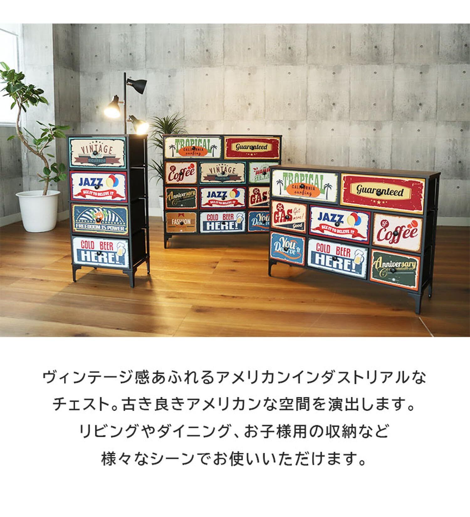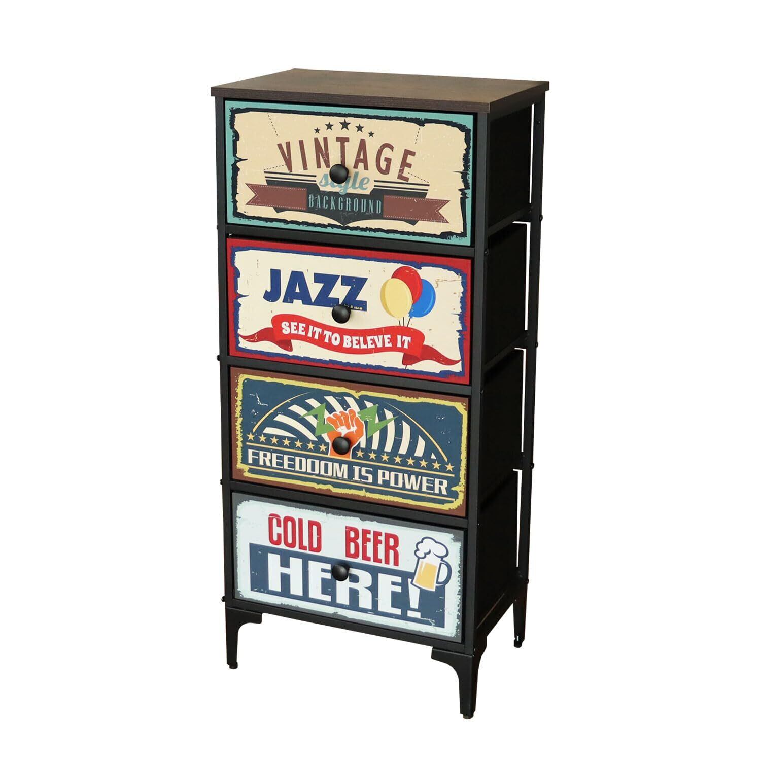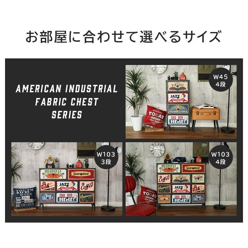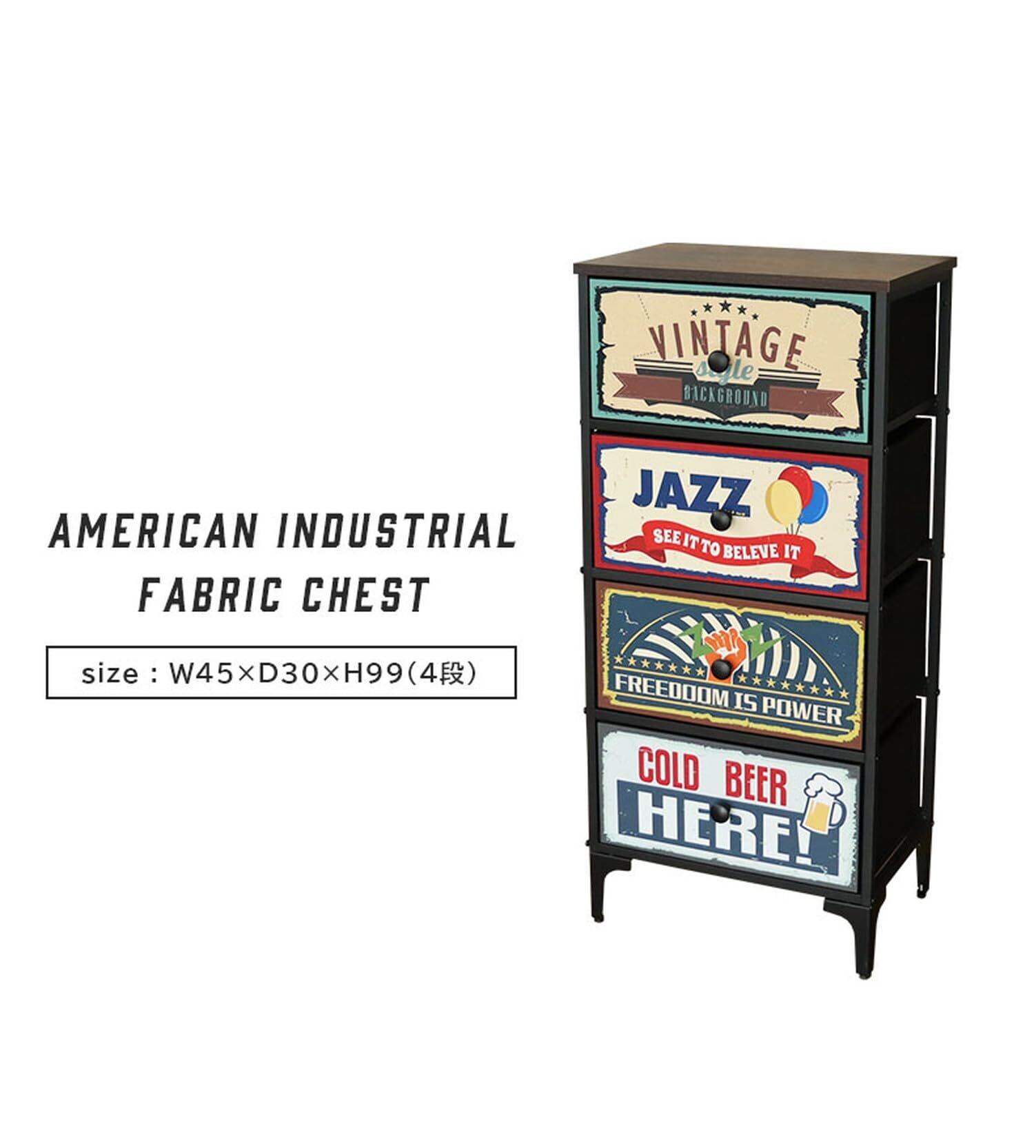 マナベインテリアハーツ チェスト スリムチェスト 幅45 奥行30 高さ99 引出 4段 アメリカン インダストリアル ファブリックチェスト プラスワン
