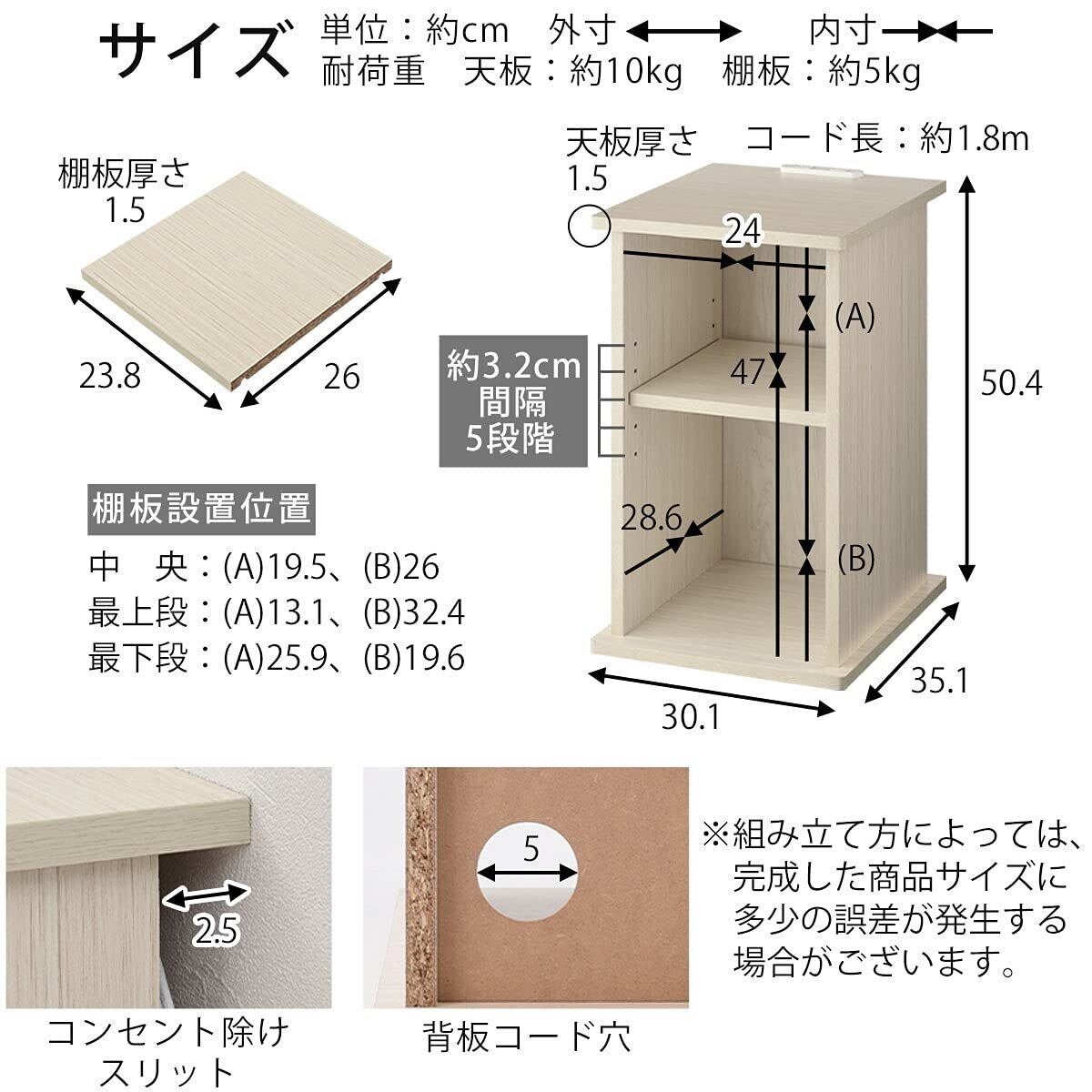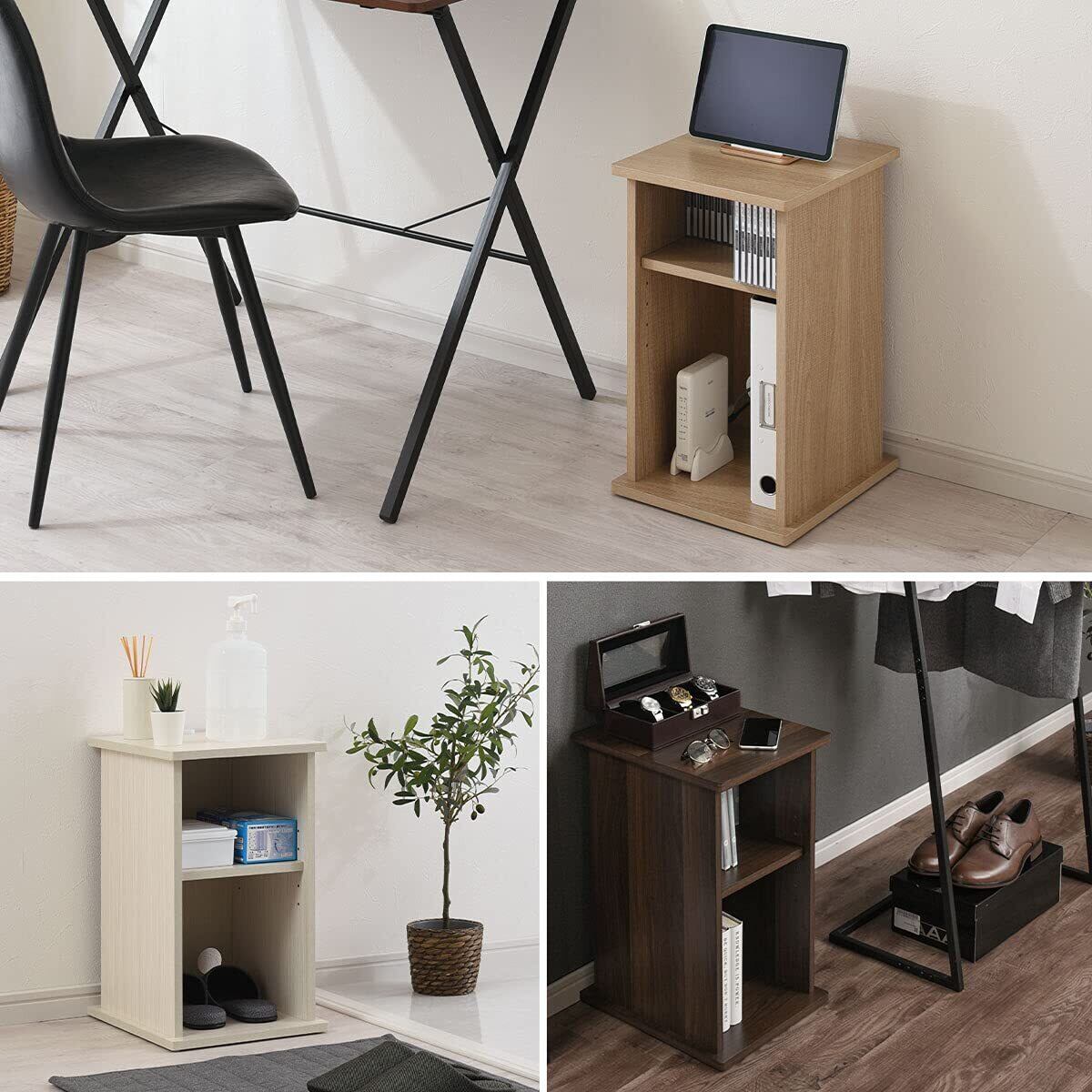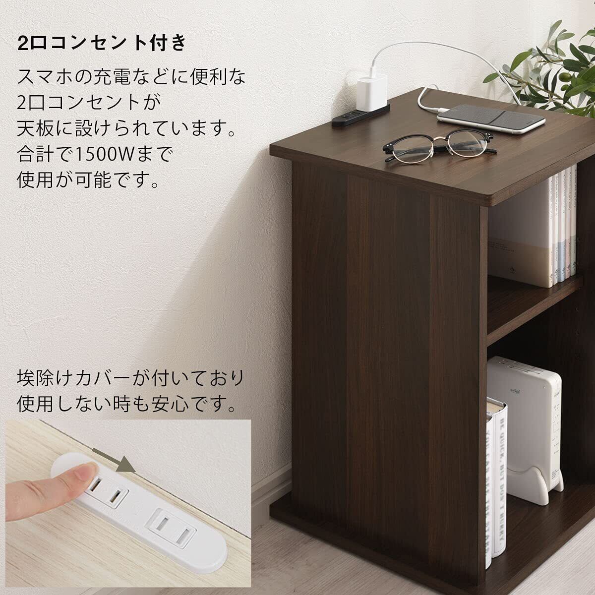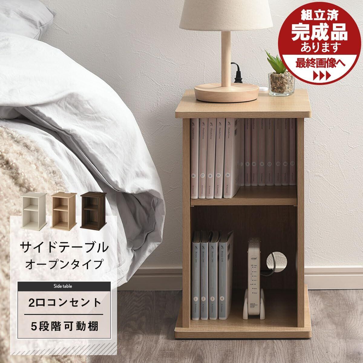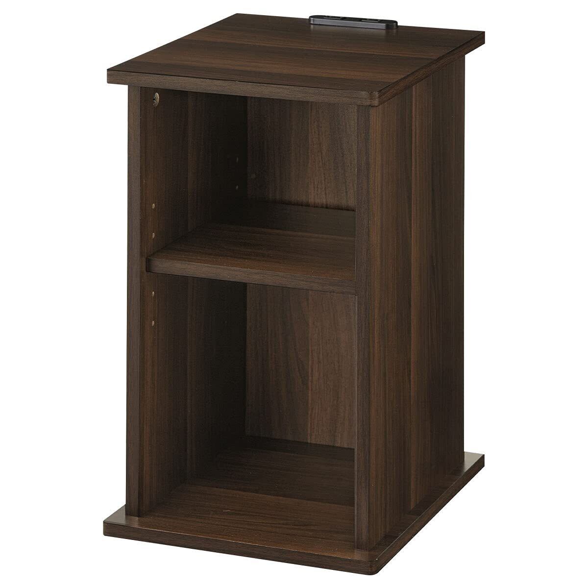 ぼん家具 サイドテーブル コンセント ベッドサイド ナイトテーブル コンパクト ルーター収納 オープン ウォールナット お客様組み立て