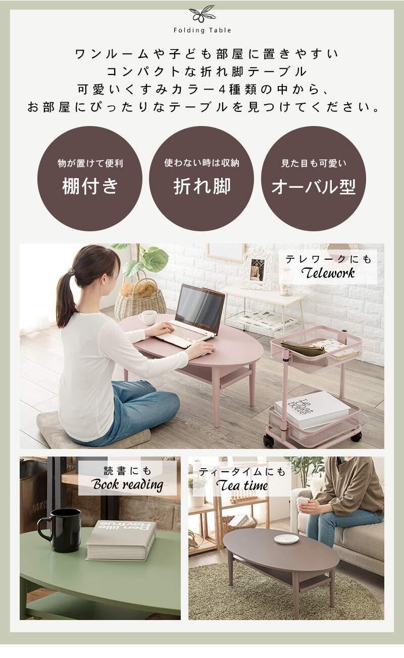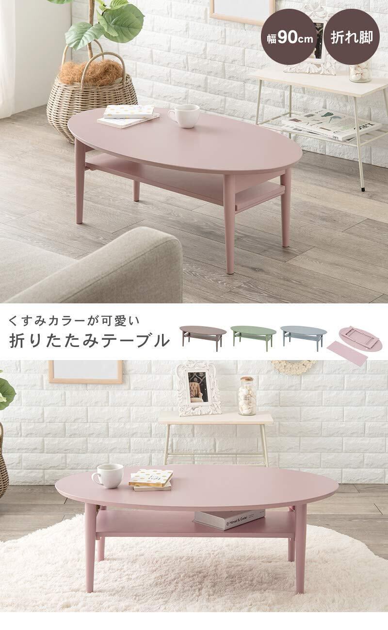 萩原 ローテーブル 折りたたみ テーブル 棚付き 【完成品】 一人暮らし コンパクト 幅90 スモ―キーピンク VT-7969SP