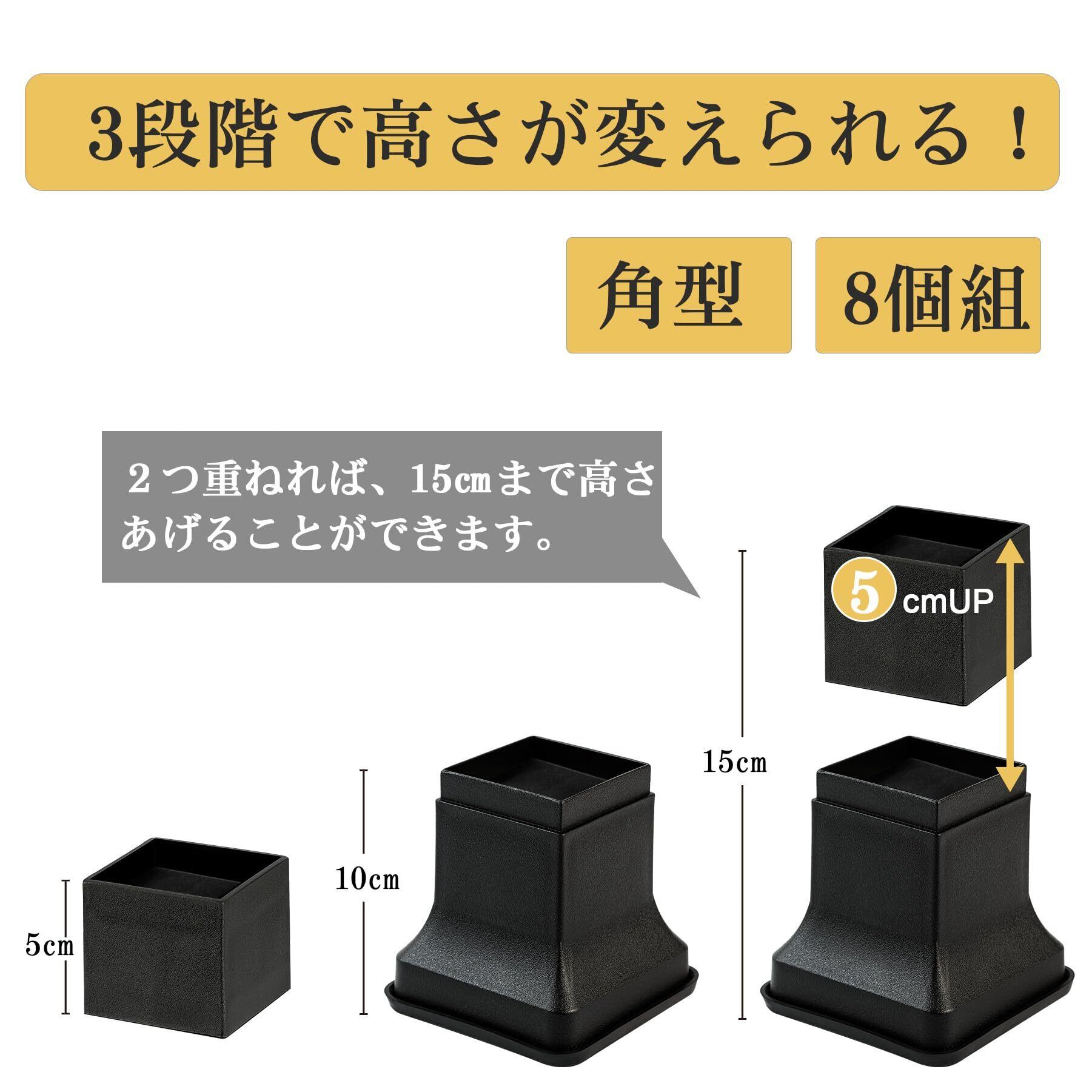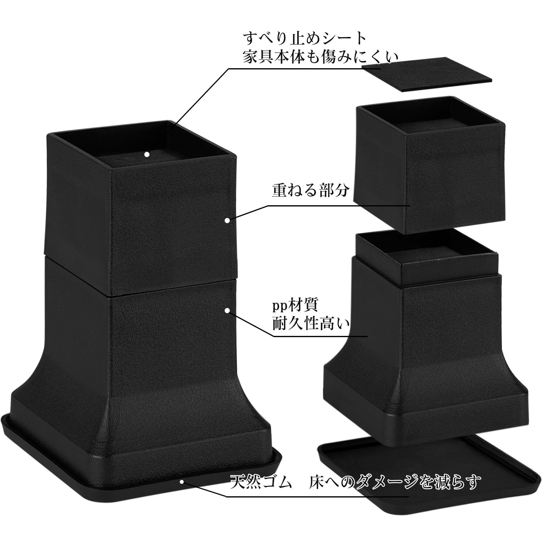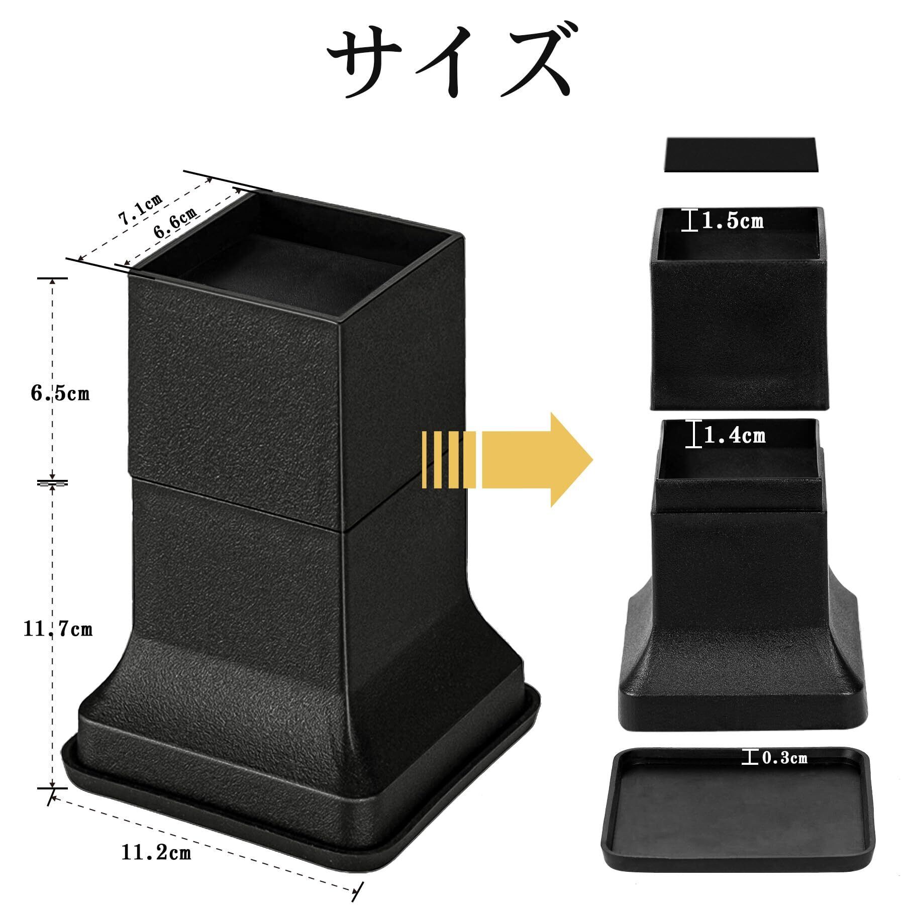 継ぎ脚 高さ調整脚 継足 3Way 5cm 10cm 15cm 調整可能 底上げ 延長脚 アジャスター ベッド・テーブル・ソファ・机・こたつ 高さを上げる足 テーブル脚台 多段階 高さ調節脚 暖房器具 矩形 ブラック (耐荷重1000kg) 3段階の高さ調整が可能 | kki