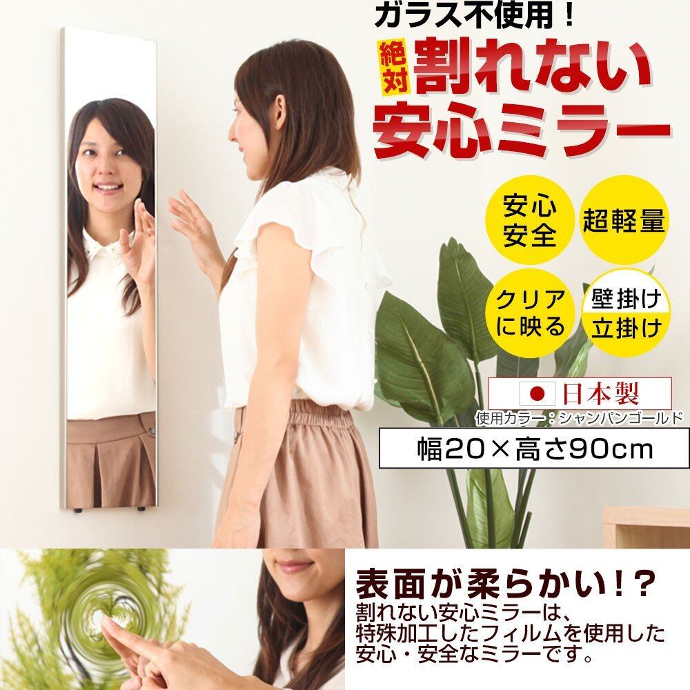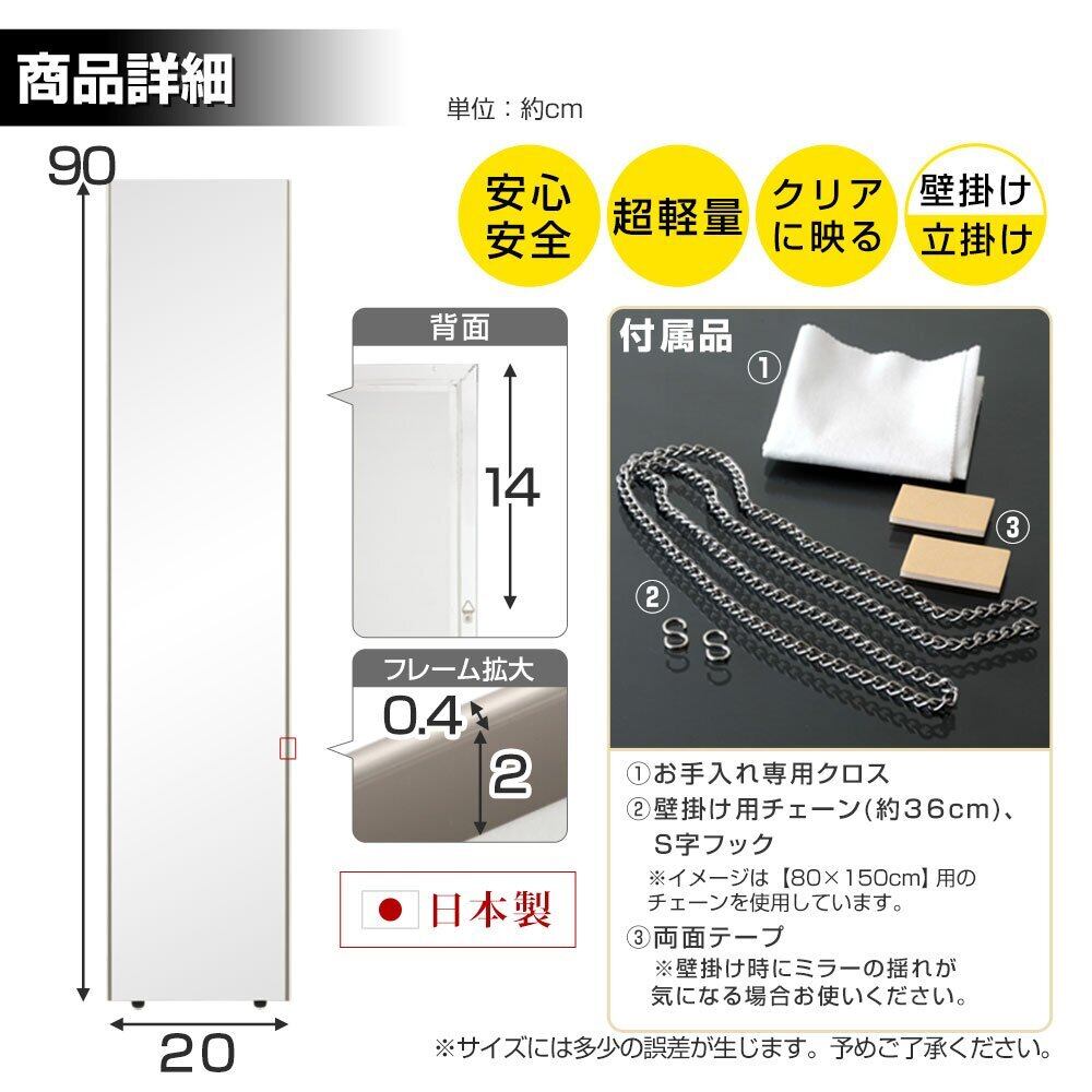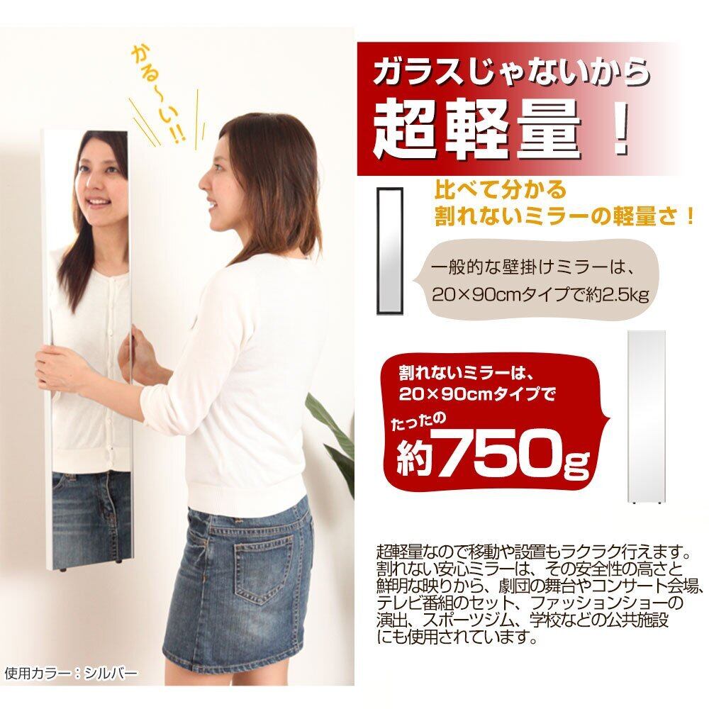 ぼん家具 【20cm幅】 鏡 スタンドミラー 全身 ウォールミラー 壁掛け 立掛け 姿見 割れない 軽量 日本製 シルバー