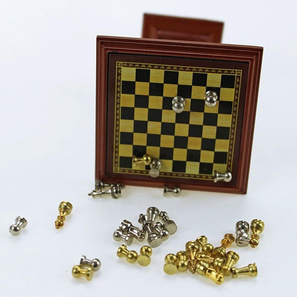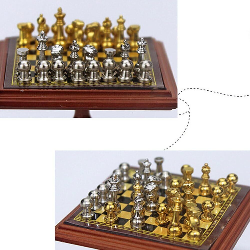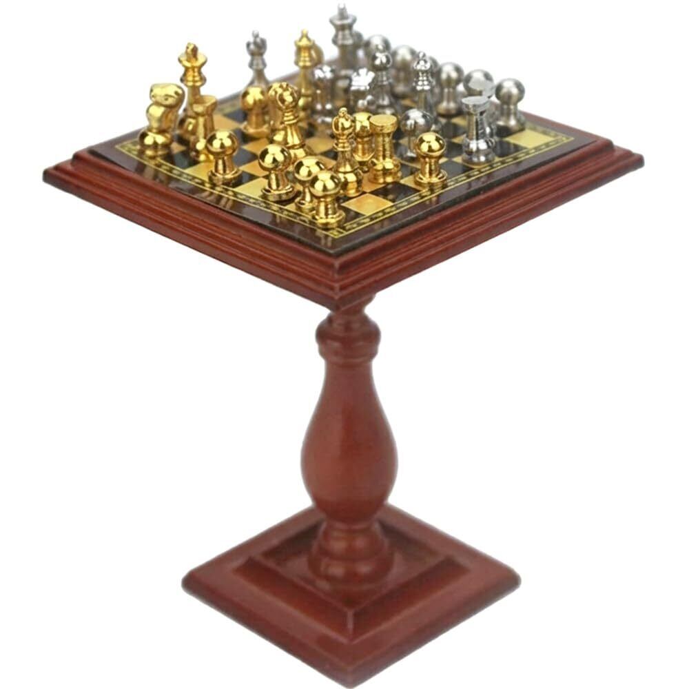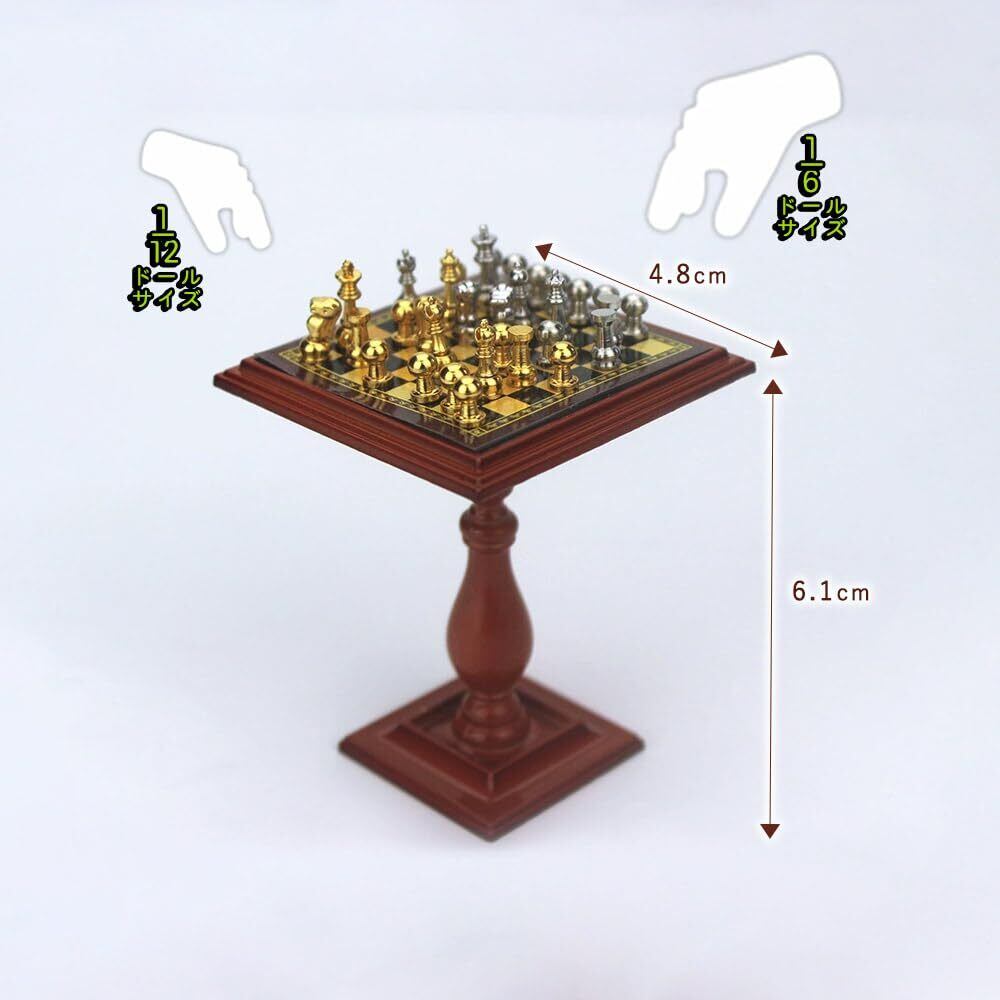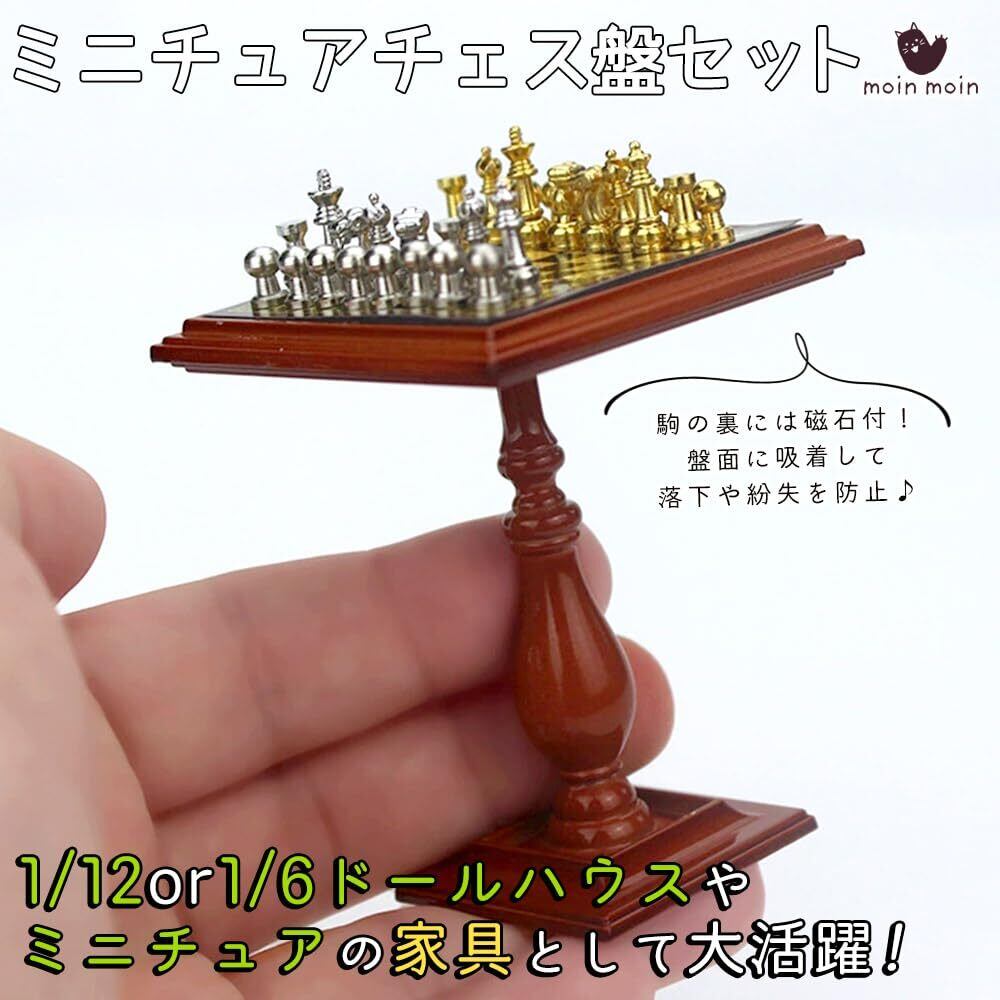 moin moin ミニチュア 1/6 1/12 スケール ドールハウス 家具 チェス セット マグネット 落ちない ずれない メタル駒 木目調 テーブル 撮影 小道具 展示 書斎 インテリア 木材 ウッド 木 1:12 1:6 2512mini78 | kki
