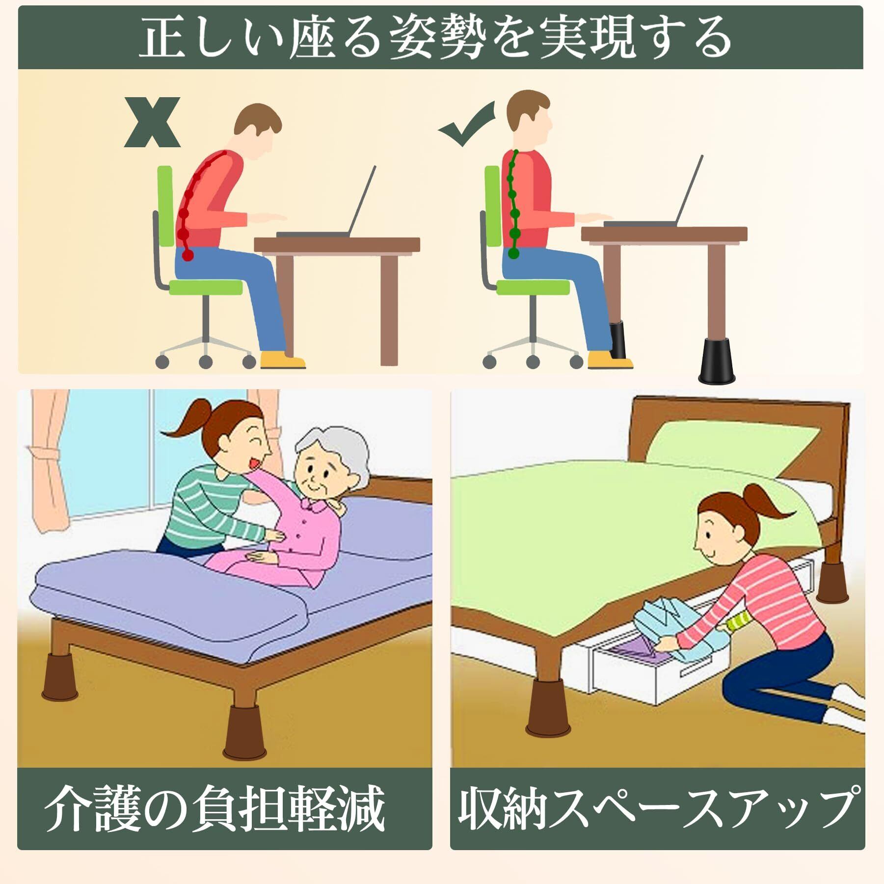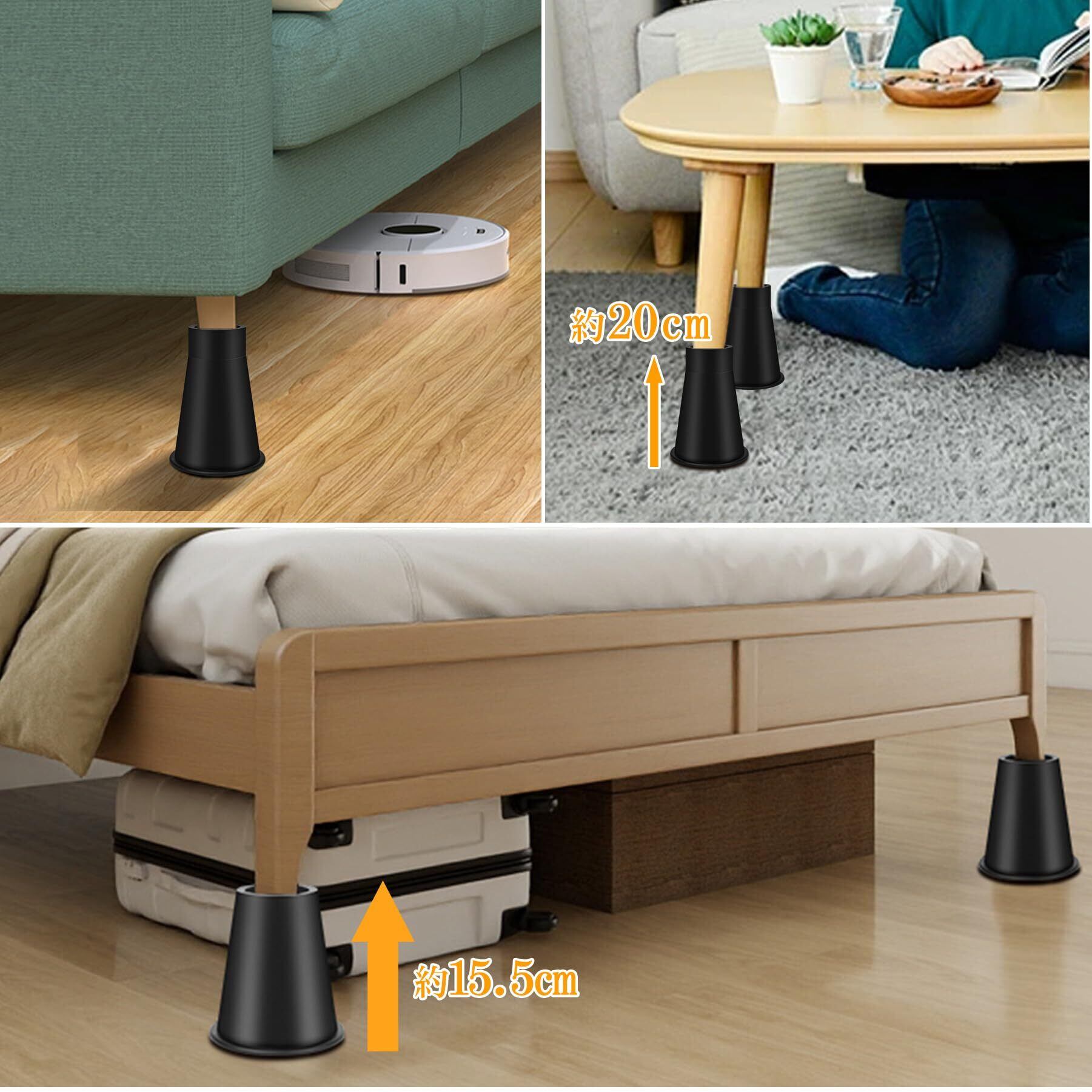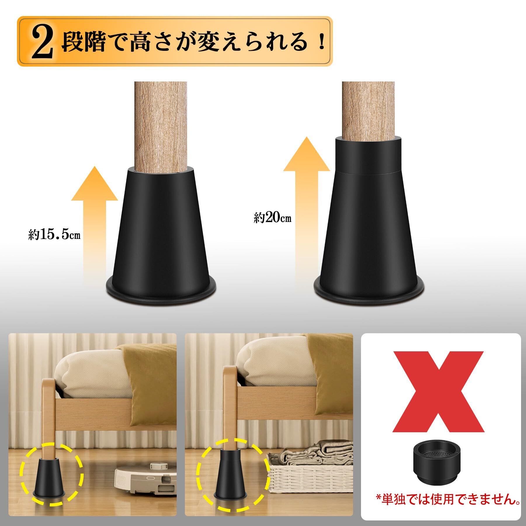 継ぎ脚 高さ調整脚 継足 2段階調整可能 延長脚 アジャスター ベッド テーブル ソファ 机 こたつ 高さを上げる足 テーブル脚台 多段階 高さ調節脚 暖房器具 家具 脚台 つぎあし 底上げ 2Way 15.5cm 20cm 丸型 ブラック | kki