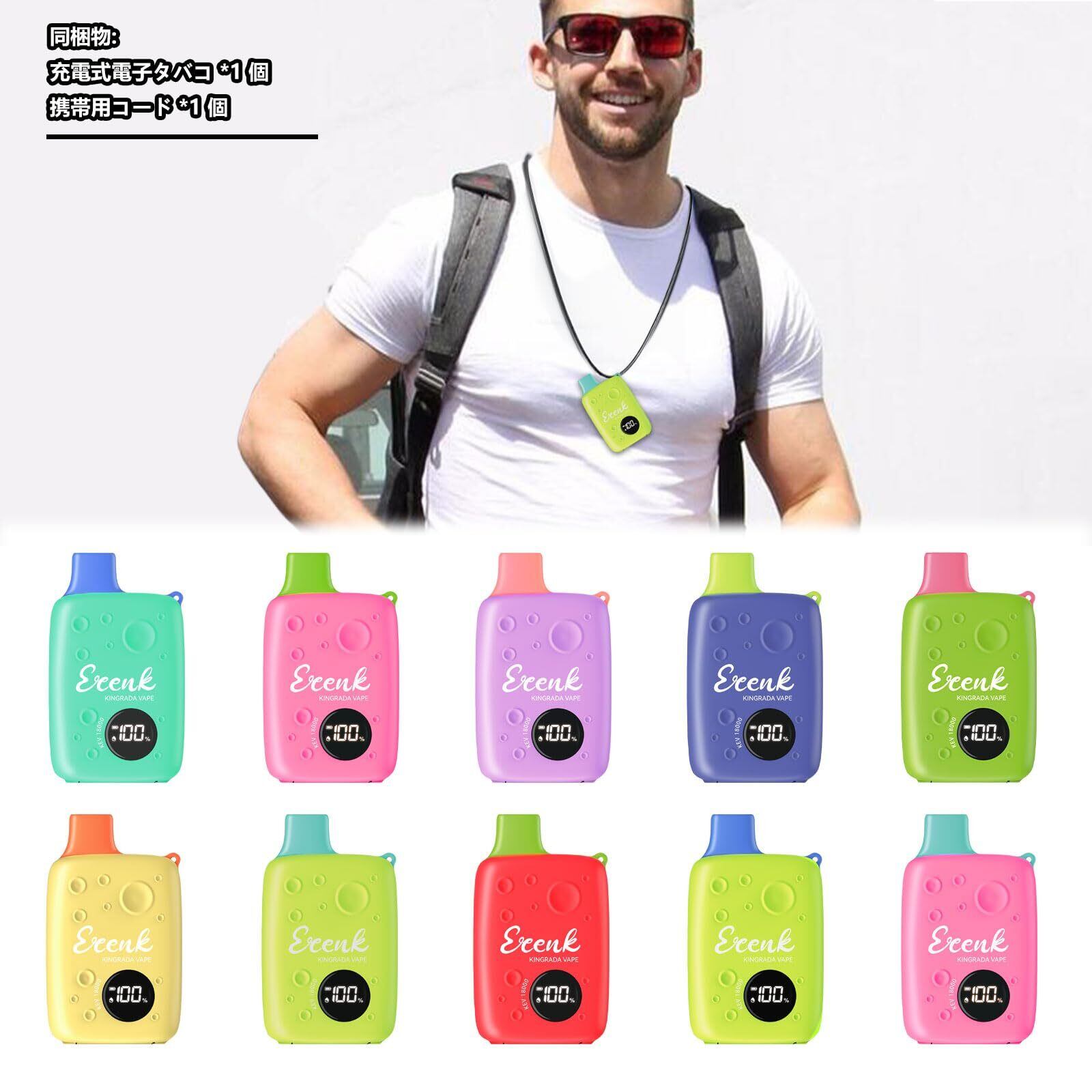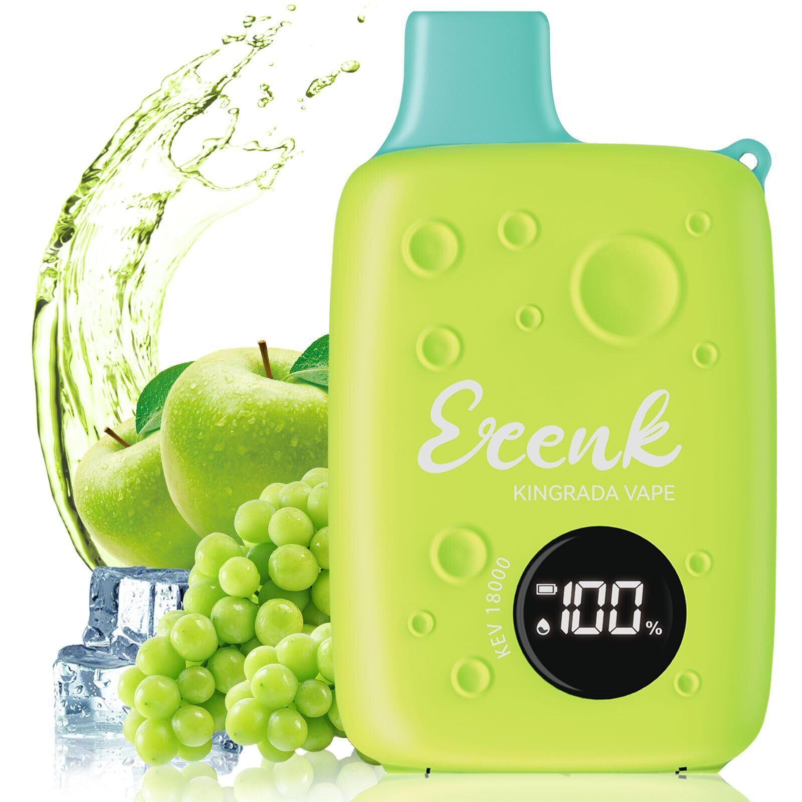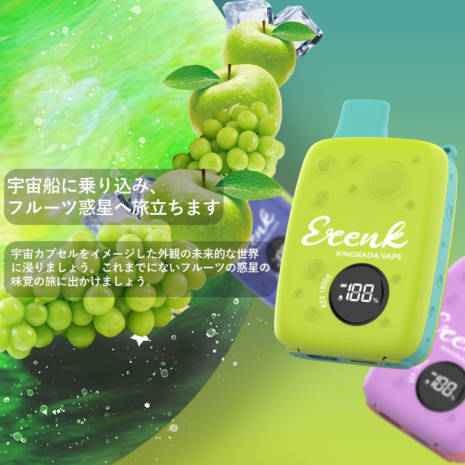 ECENK VAPE 電子タバコ 使い捨て VAPE 18,000回吸引可能 ベイプ シーシャ 10風味 爆煙 充電式 大容量 LEDディスプレイ搭載 持ち運び 水蒸気タバコ 禁煙サポート ニコチンなし 煙量調節可能 ストラップ付き (マスカット·青りんご·アイス) | kki