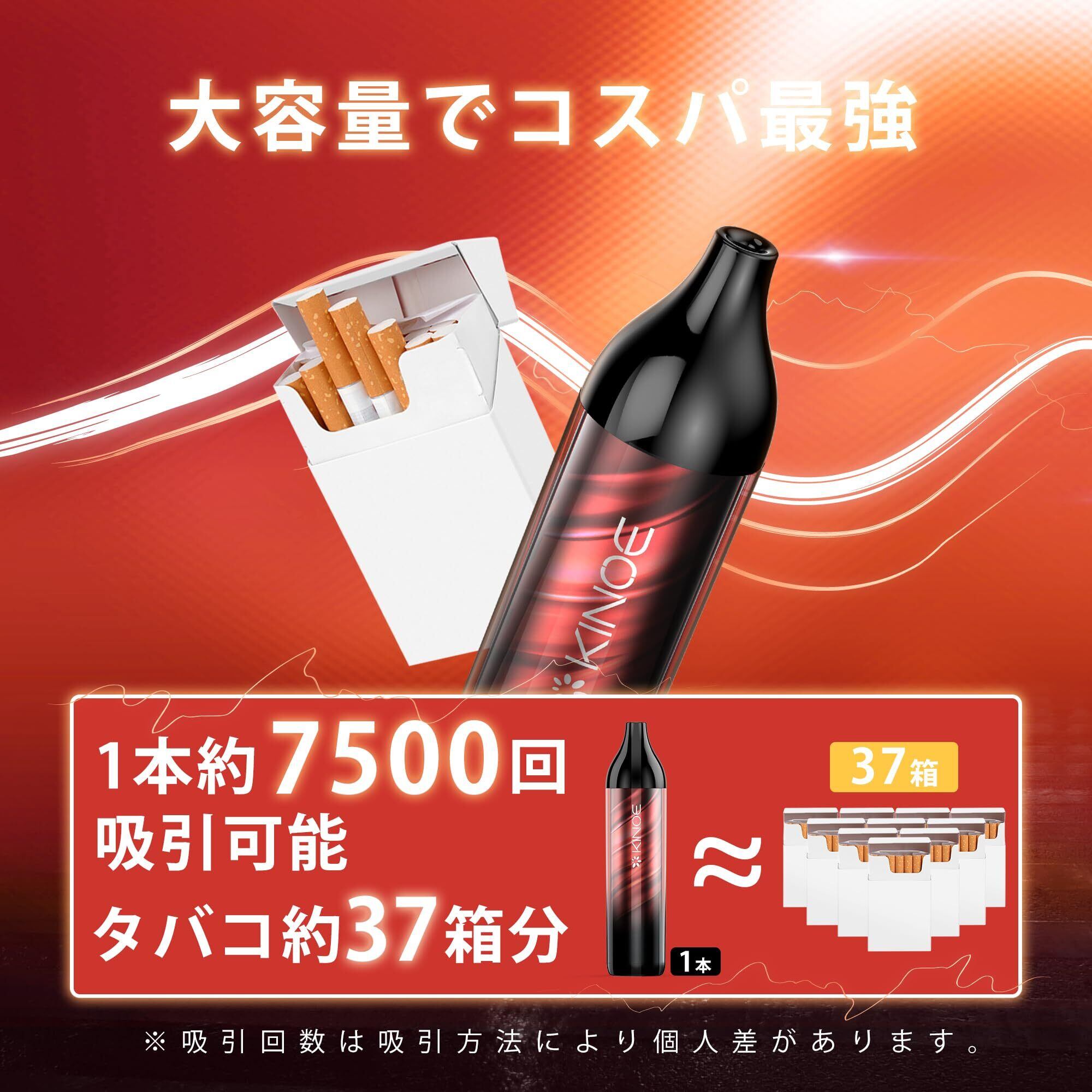 KINOE 電子タバコ 使い捨て 7500回吸引可能 充電式 べイプ 大容量 持ち運びシーシャ 水蒸気たばこ VAPE 爆煙タイプ ニコチン&タールなし 禁煙サポート(アイスコーラ)