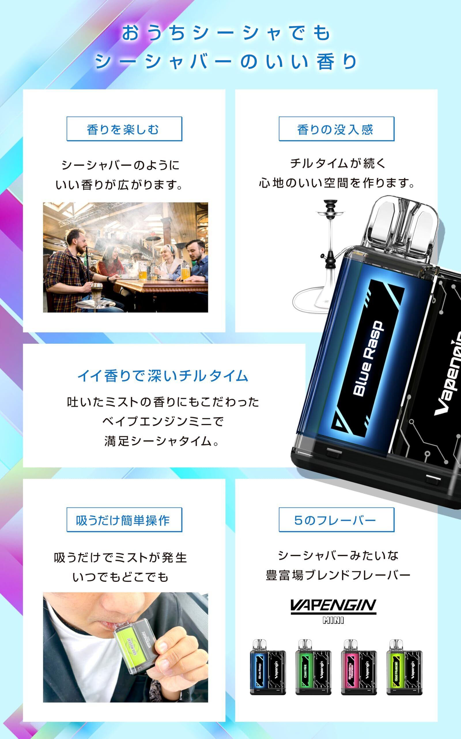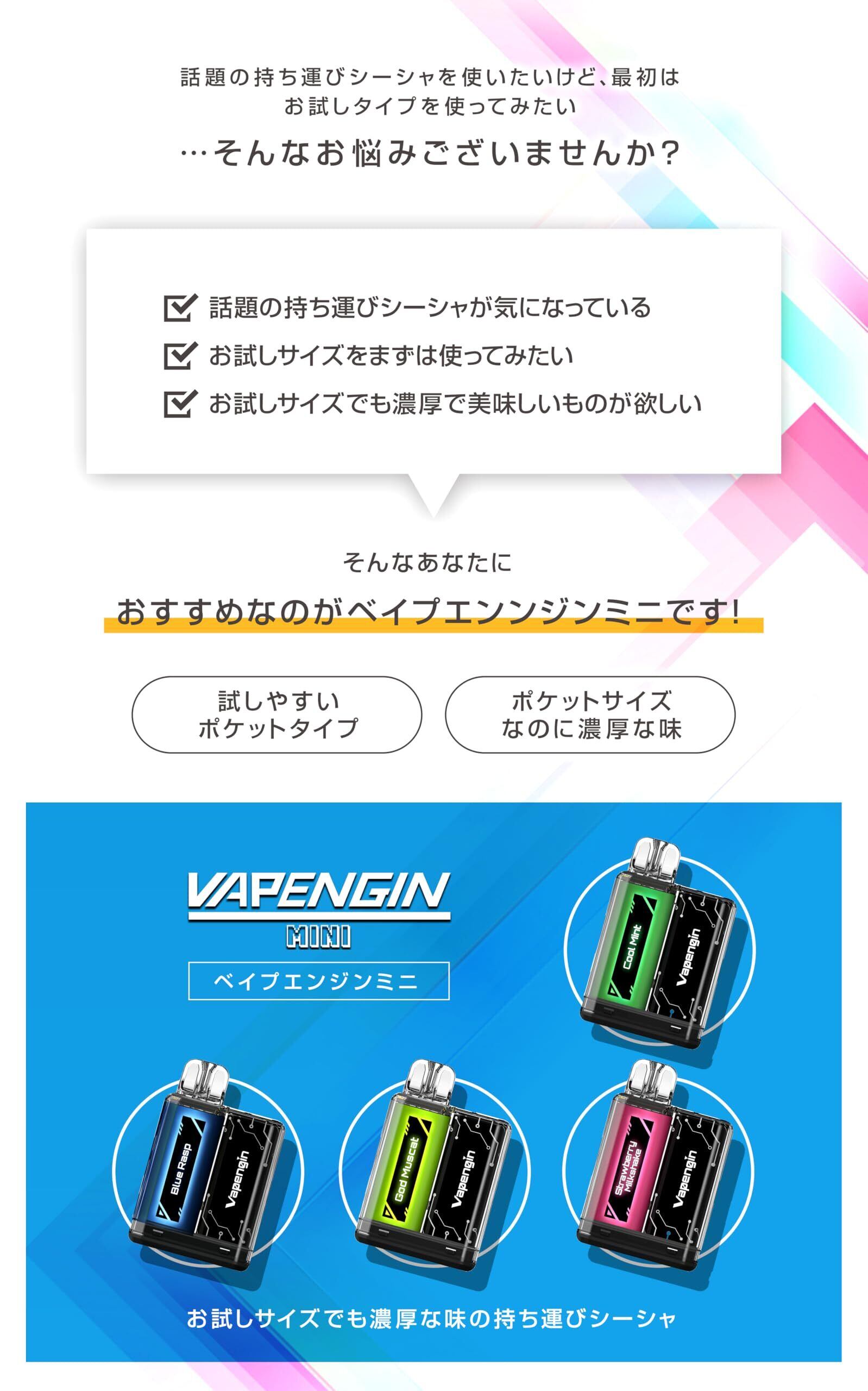 VAPENGIN MINI ベイプエンジン ミニ 持ち運びシーシャ シーシャ 持ち運び 電子タバコ ベイプ vape 使い捨て 使い切り 携帯用 お出かけ用 フレーバー メンソール 強い タバコの代わり (MINI, ゴッドマスカット1個) | kki