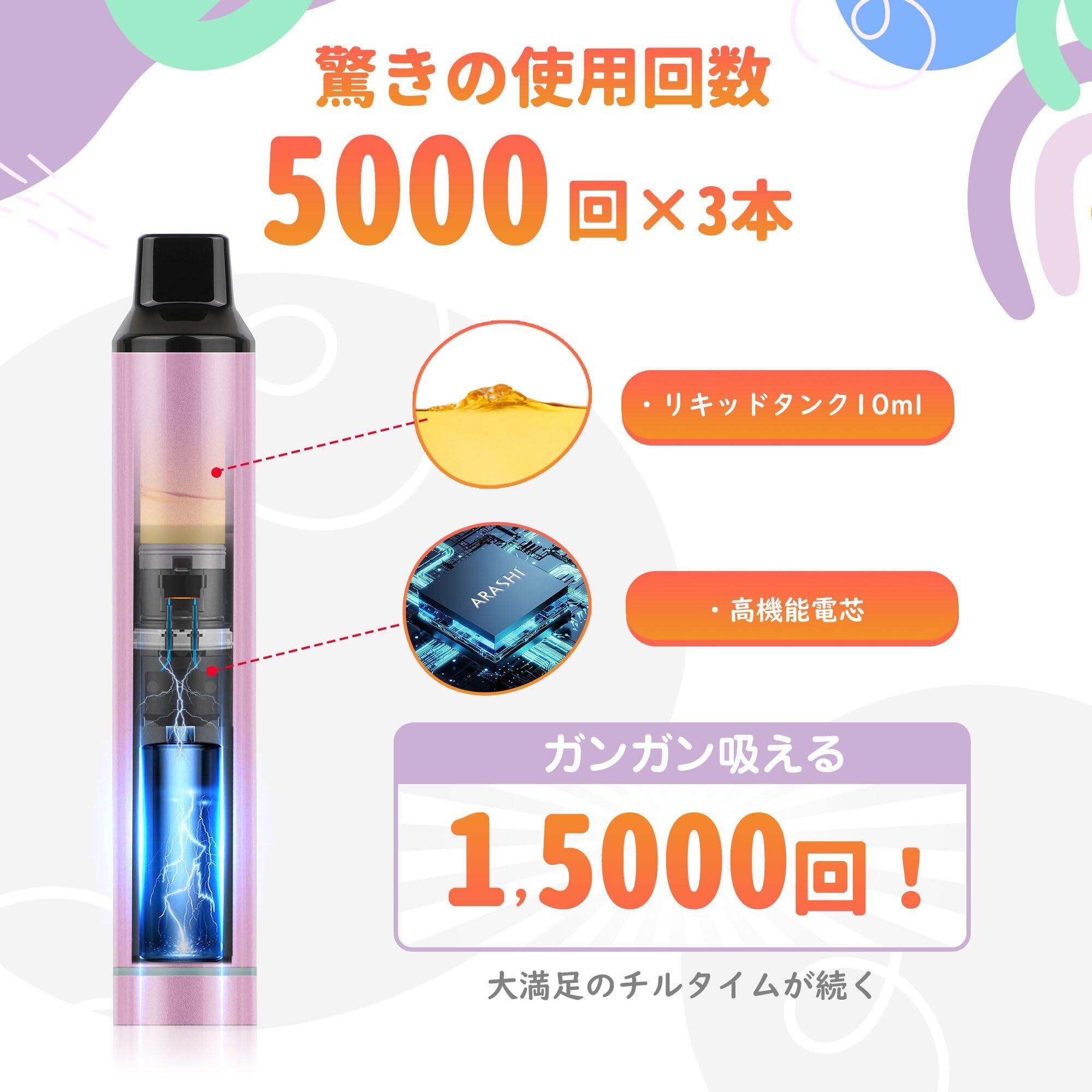 電子タバコ 使い捨て VAPE シーシャー ベイプ 爆煙 水蒸気タバコ 禁煙 電子たばこ ニコチン0 タール0 ARASHI (グリーンアップル1個)