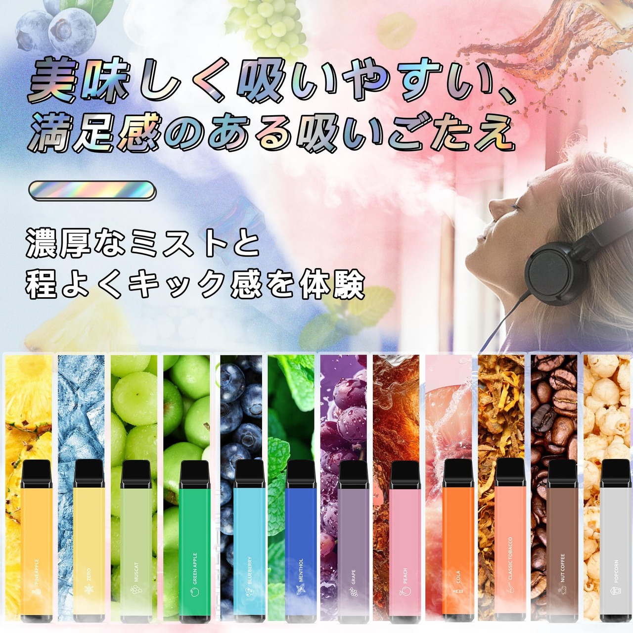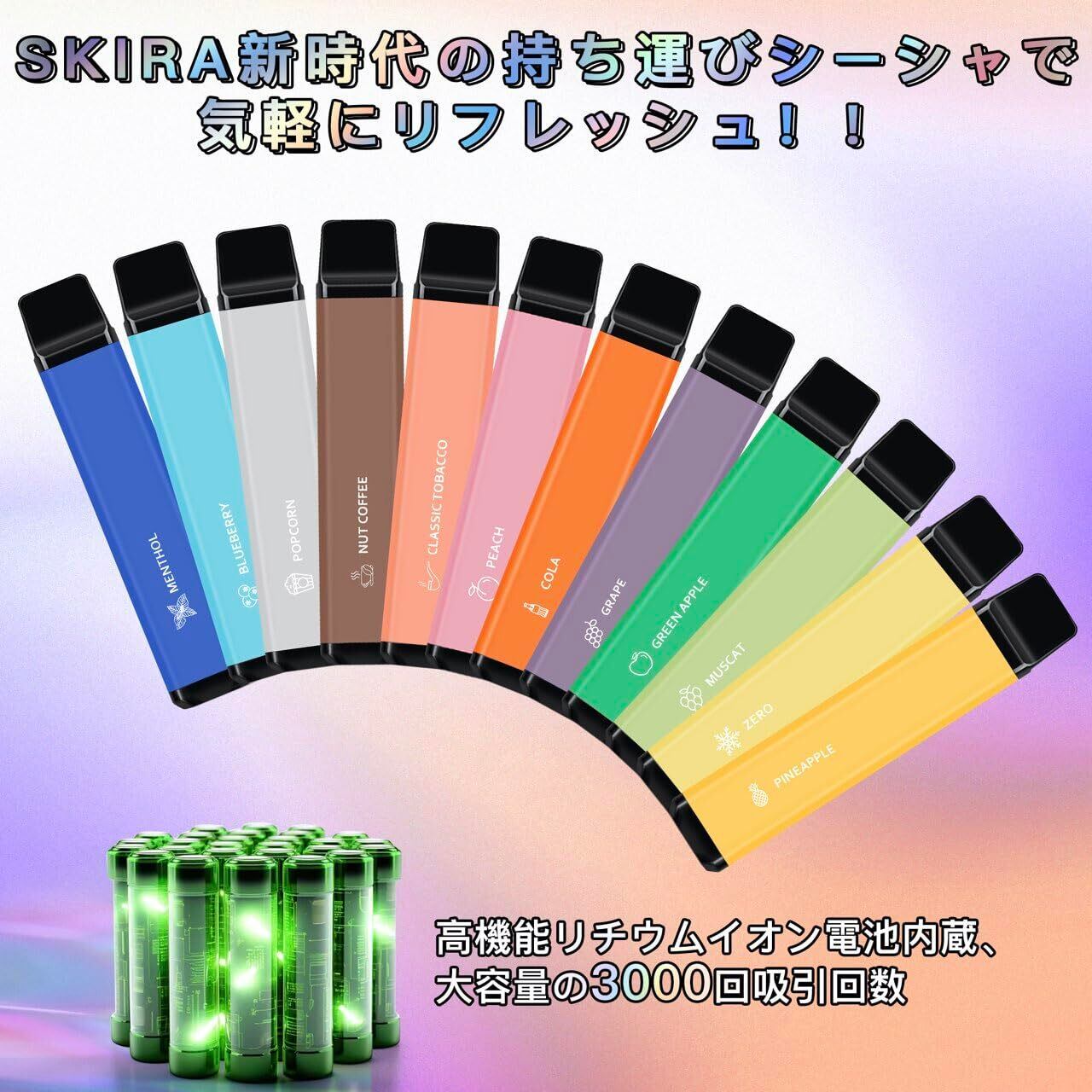 電子タバコ 使い捨て ベイプ 大容量 3000回吸引 12風味選択可 爆煙 水蒸気 タバコ ニコチン タール無し ビタミン入り 禁煙補助 SKIRA (1本, メンソール)
