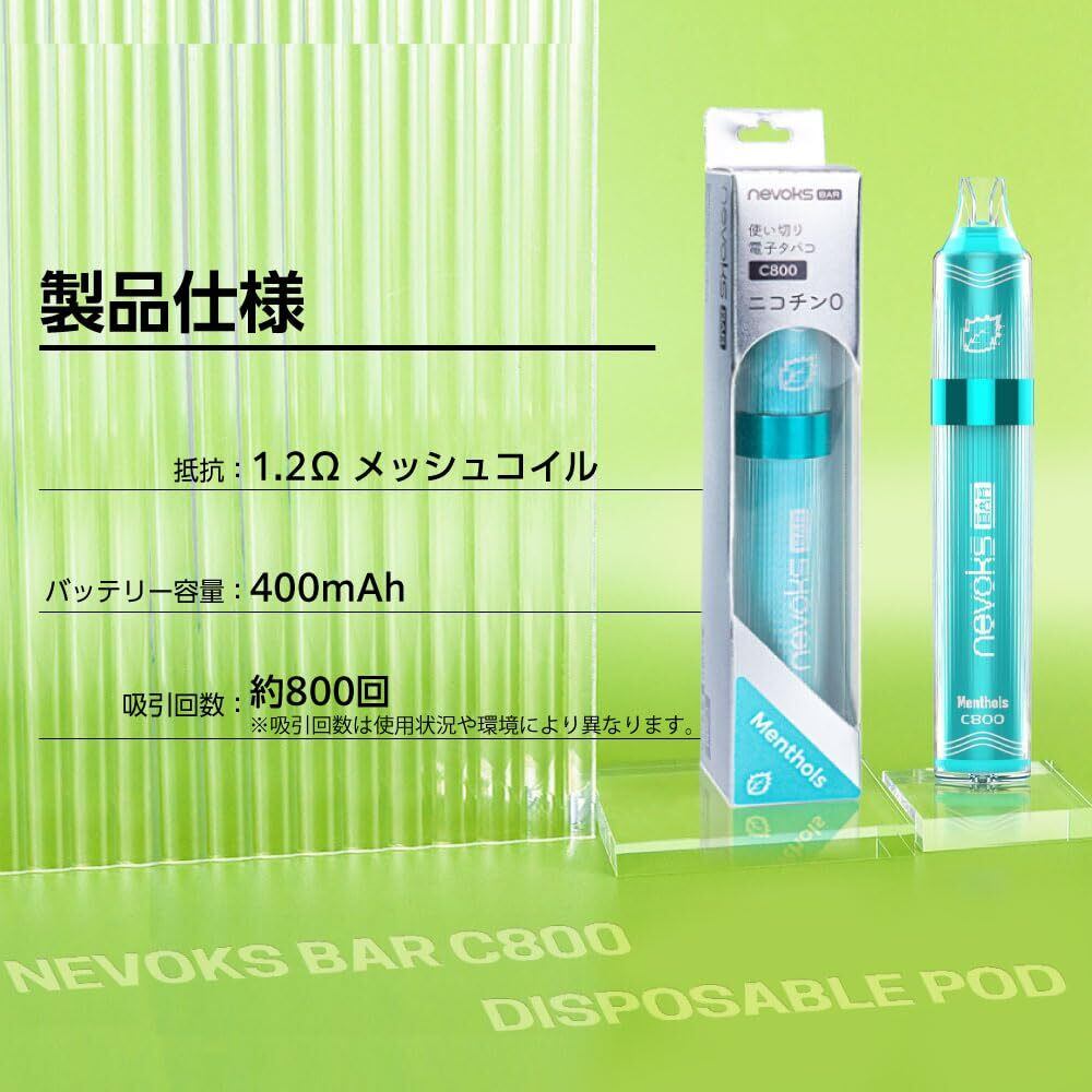 Nevoks Bar C800 電子タバコ ニコチン タール無し 本体 使い捨て スターターキット 持ち運び シーシャ アソチネート キック感 禁煙 (メンソール)