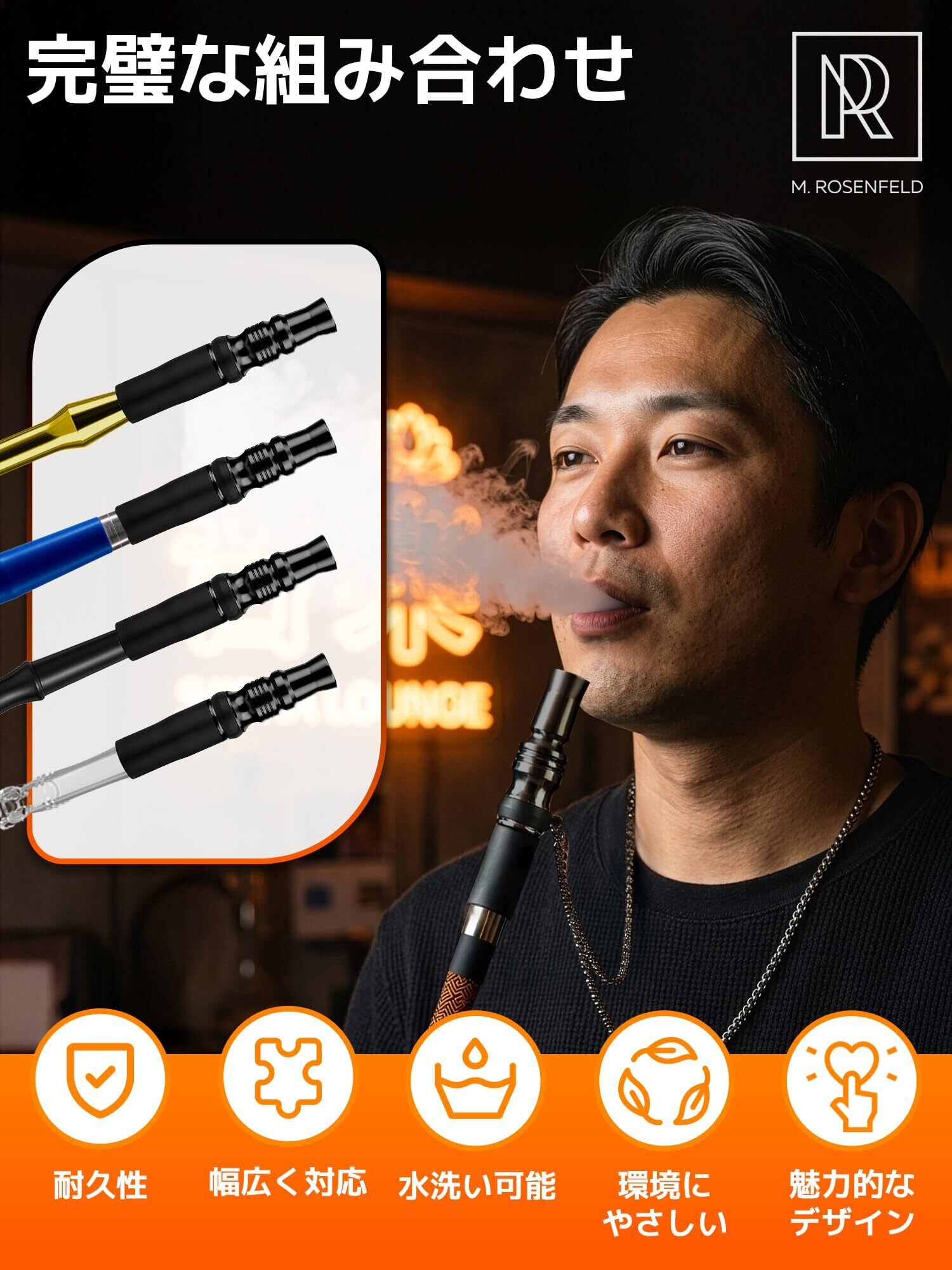 シーシャ マウスピース シーシャマウスピースおしゃれ マウスピース シーシャ シーシャ 吸い口 プレミアムモデル ブラックステンレス製 食品グレードシリコン 携帯用マウスピース ネックストラップ&キーリング付 ポーチ&クロス同梱 多くのホース対応 個人用 水たばこアクセサリー M. ROSENFELD | kki