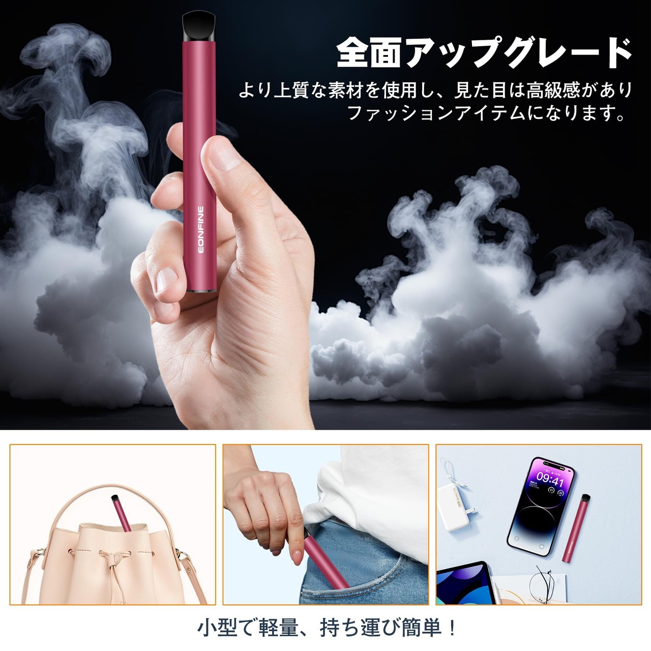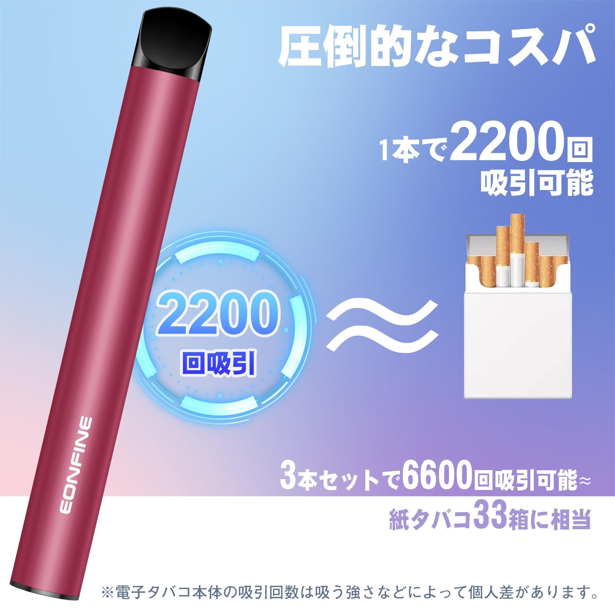Eonfine 電子タバコ 使い捨て 3本セット VAPE ベイプ 6600回吸引可能 大容量 爆煙 シーシャ 持ち運び 水蒸気タバコ 禁煙グッズ 禁煙パイポ メンテナンス不要 タールなし ニコチンなし グレープ | kki
