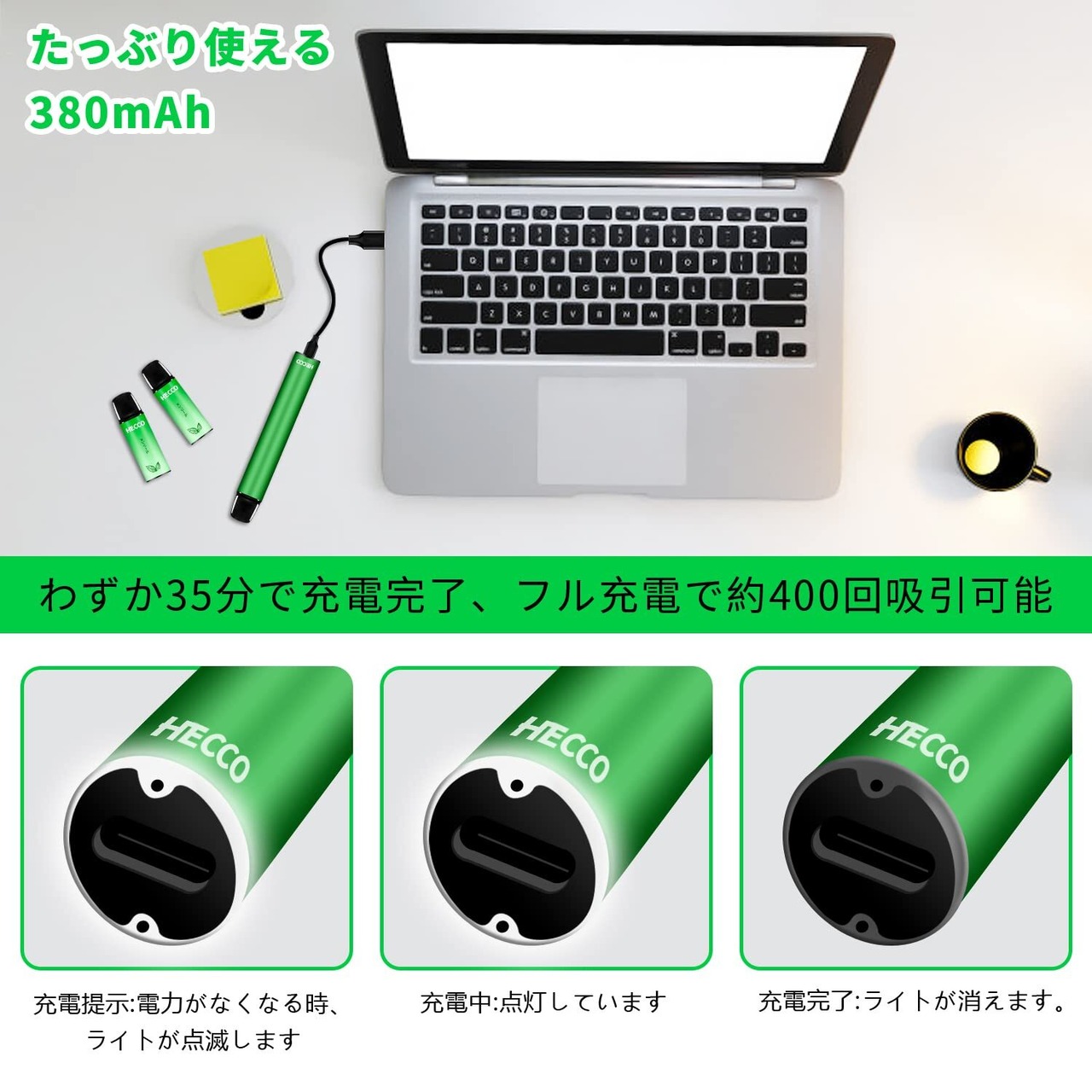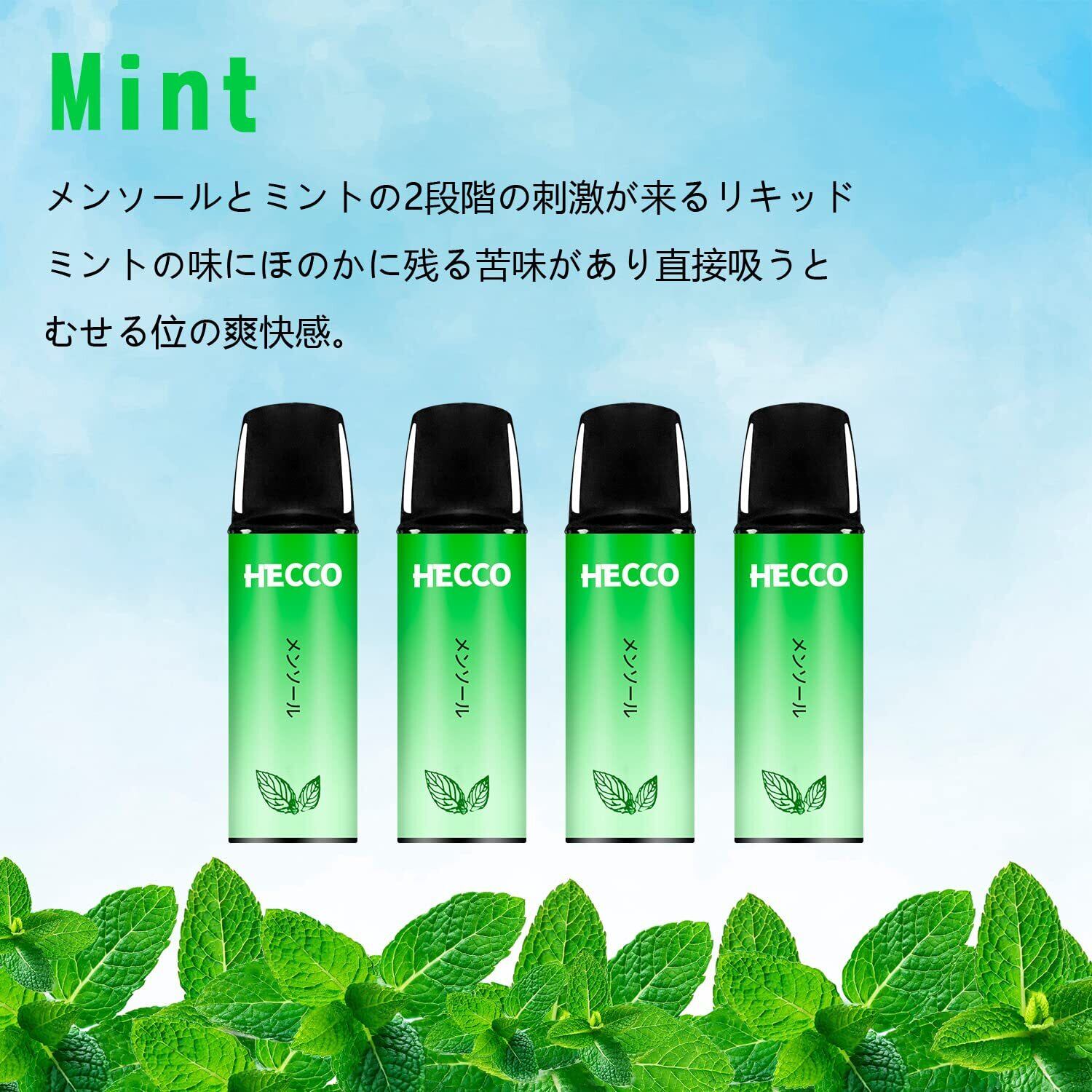 HECCO 電子タバコ メンソール ミント 清涼感 フレーバーポッド 使い捨て ポケットシーシャ 爆煙 交換用カートリッジ スターターキット M16型(グーリン本体+2個ポッド付き)