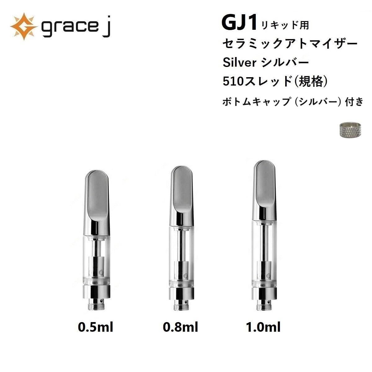 セラミック アトマイザー 510 シルバー リキッド用 1.4Ω 【ボトムキャップ + ケース付き 単品】0.5ml or 0.8ml or 1.0ml 510スレッド 510規格 交換用 VAPE CBD リキッド GJ1 (1.0ml) | kki