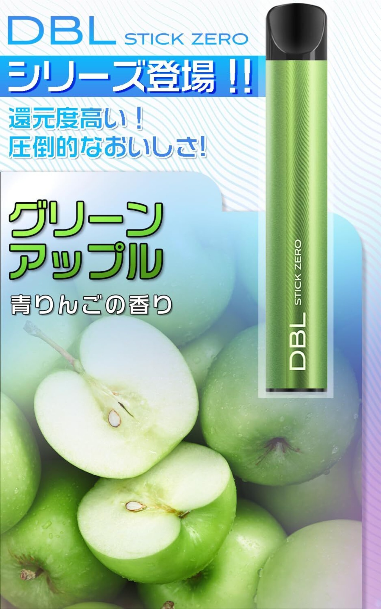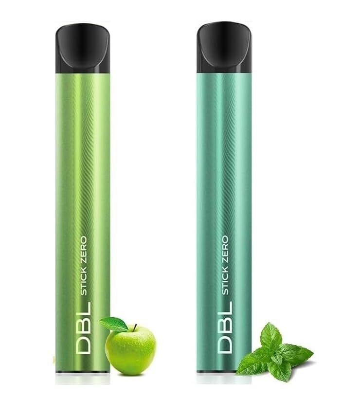 DBL 電子タバコ 使い捨て 持ち運び シーシャ ベイプ 2本入り 大容量 VAPE 禁煙パイポ 爆煙 水蒸気タバコ 禁煙サポート ニコチンなし タールなし STICK ZEROシリーズ (グリンアップル+ミントアイス) | kki