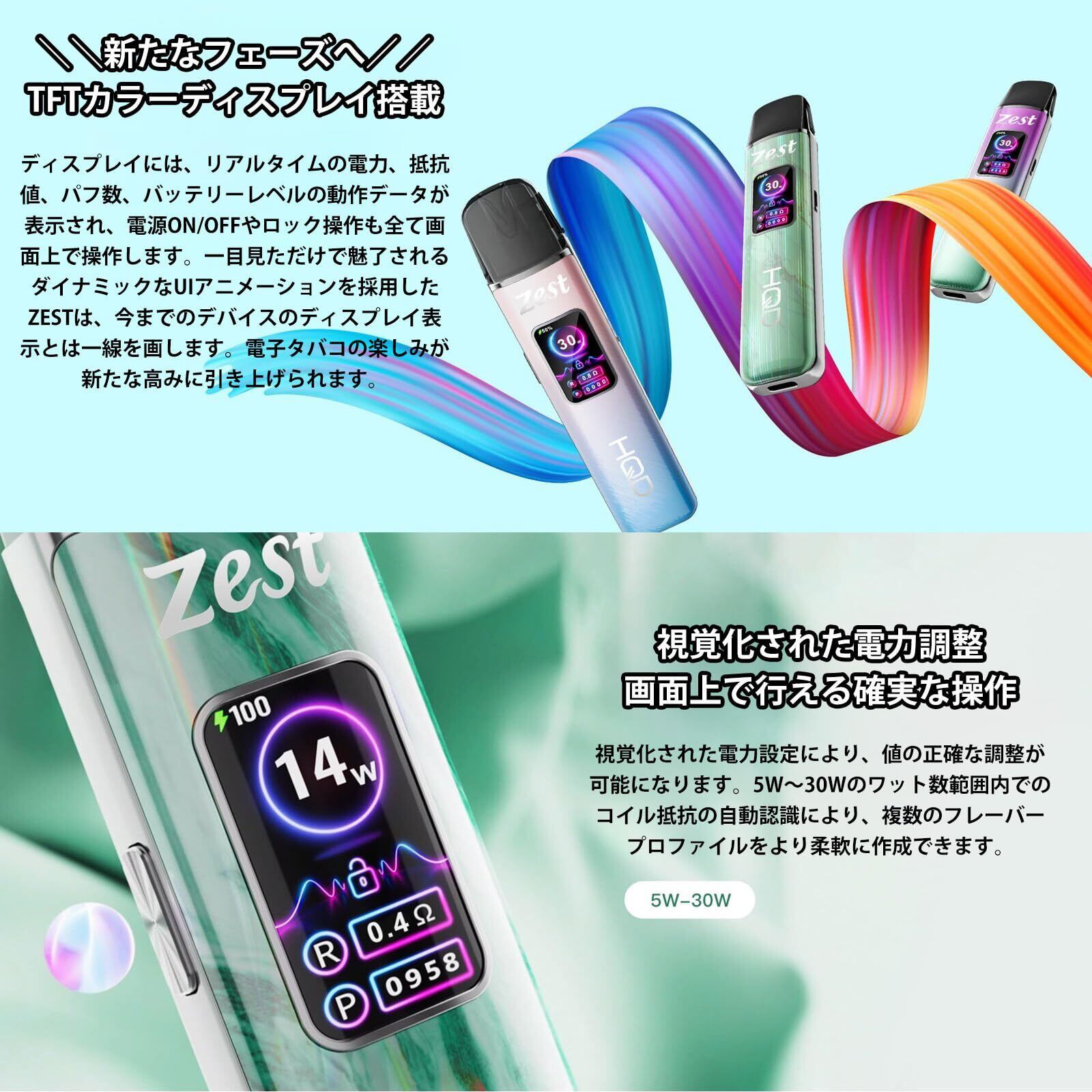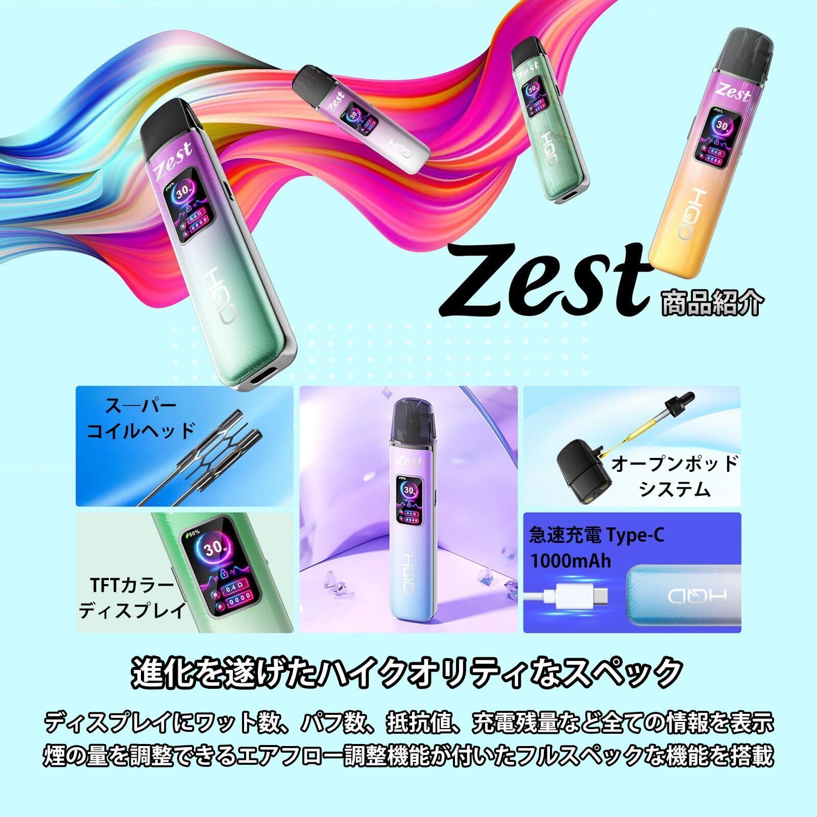 ヴェポライザー HQD ZEST Vaporizer 1000mAh 0.4Ω / 0.8Ω POD付き POD型 リキッド用 バッテリー 電子タバコ 水蒸気タバコ 電子VAPE VAPE 高品質 ハイエンドモデル 正規品 (Blue Pink) | kki