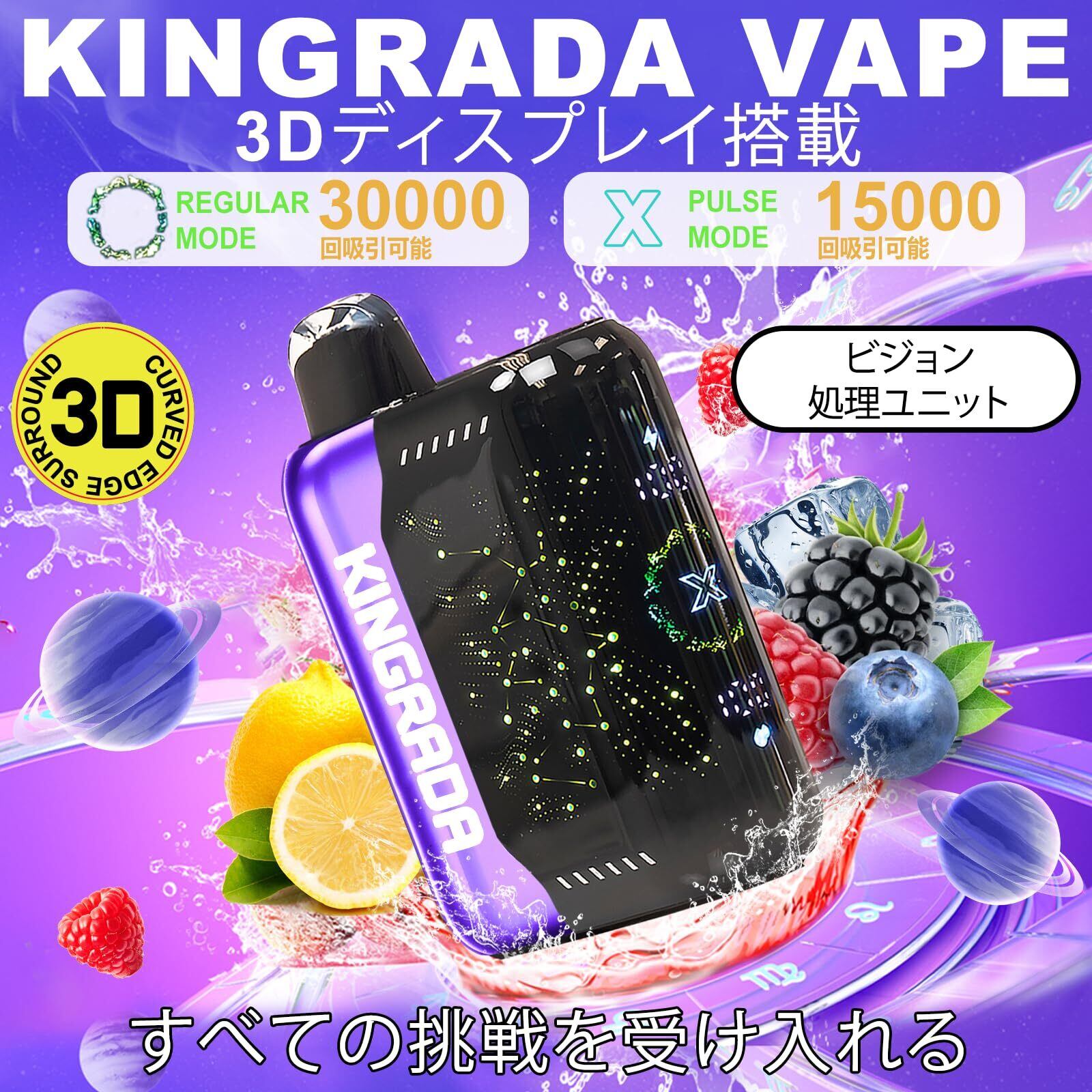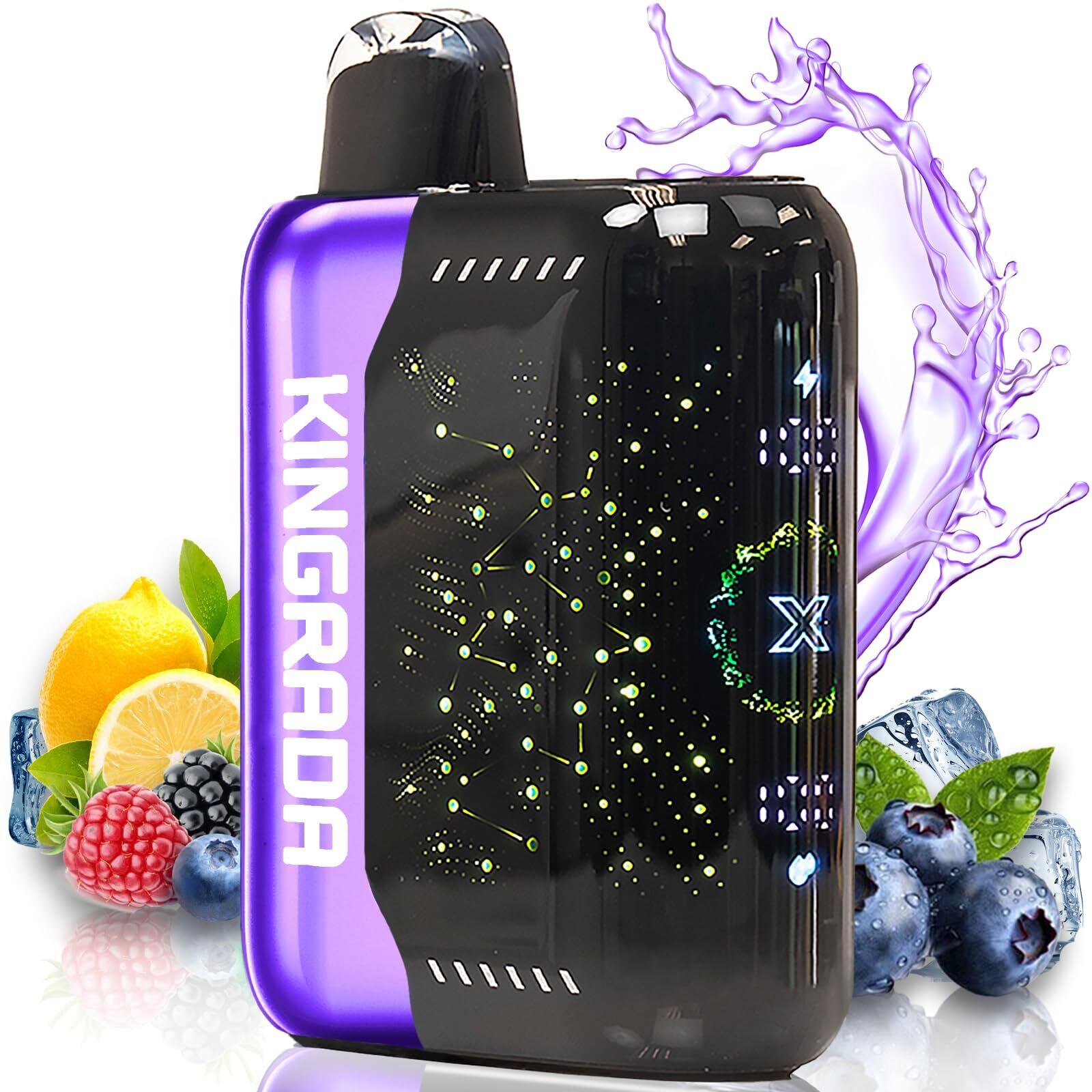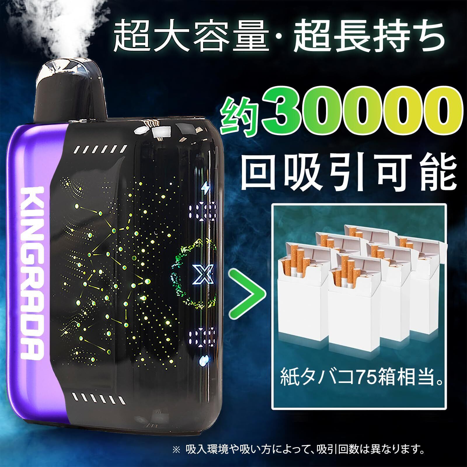 電子タバコ 使い捨て VAPE 30,000回吸引可能 シーシャ 持ち運び 充電式 フレーバー ニコチンなし タールなし 禁煙 ベイプ 3Dディスプレイ搭載 たばこ 大容量 禁煙パイポ 爆煙 水蒸気タバコ 禁煙サポート 煙量調節可能 ビタミン入り Kingrada (ブルーベリー・ラズベリー・レモネード) | kki