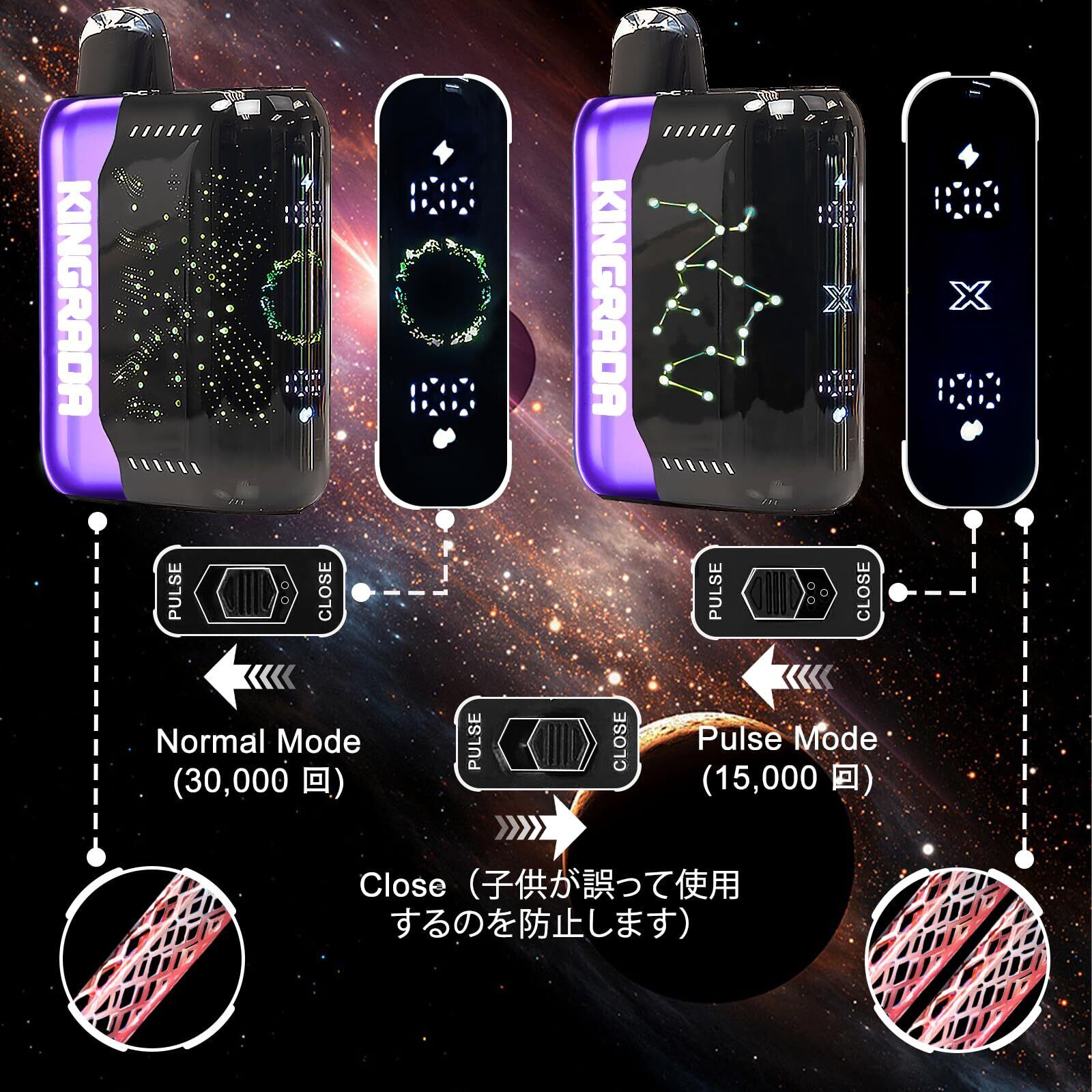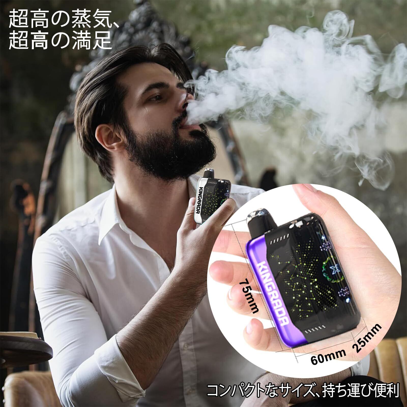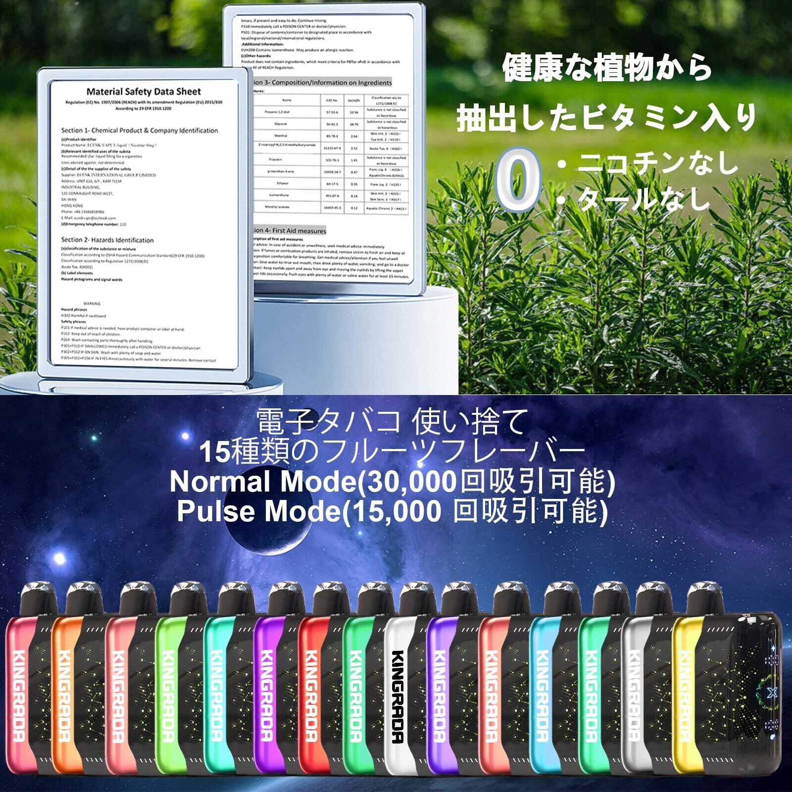 電子タバコ 使い捨て VAPE 30,000回吸引可能 シーシャ 持ち運び 充電式 フレーバー ニコチンなし タールなし 禁煙 ベイプ 3Dディスプレイ搭載 たばこ 大容量 禁煙パイポ 爆煙 水蒸気タバコ 禁煙サポート 煙量調節可能 ビタミン入り Kingrada (ブルーベリー・ラズベリー・レモネード) | kki