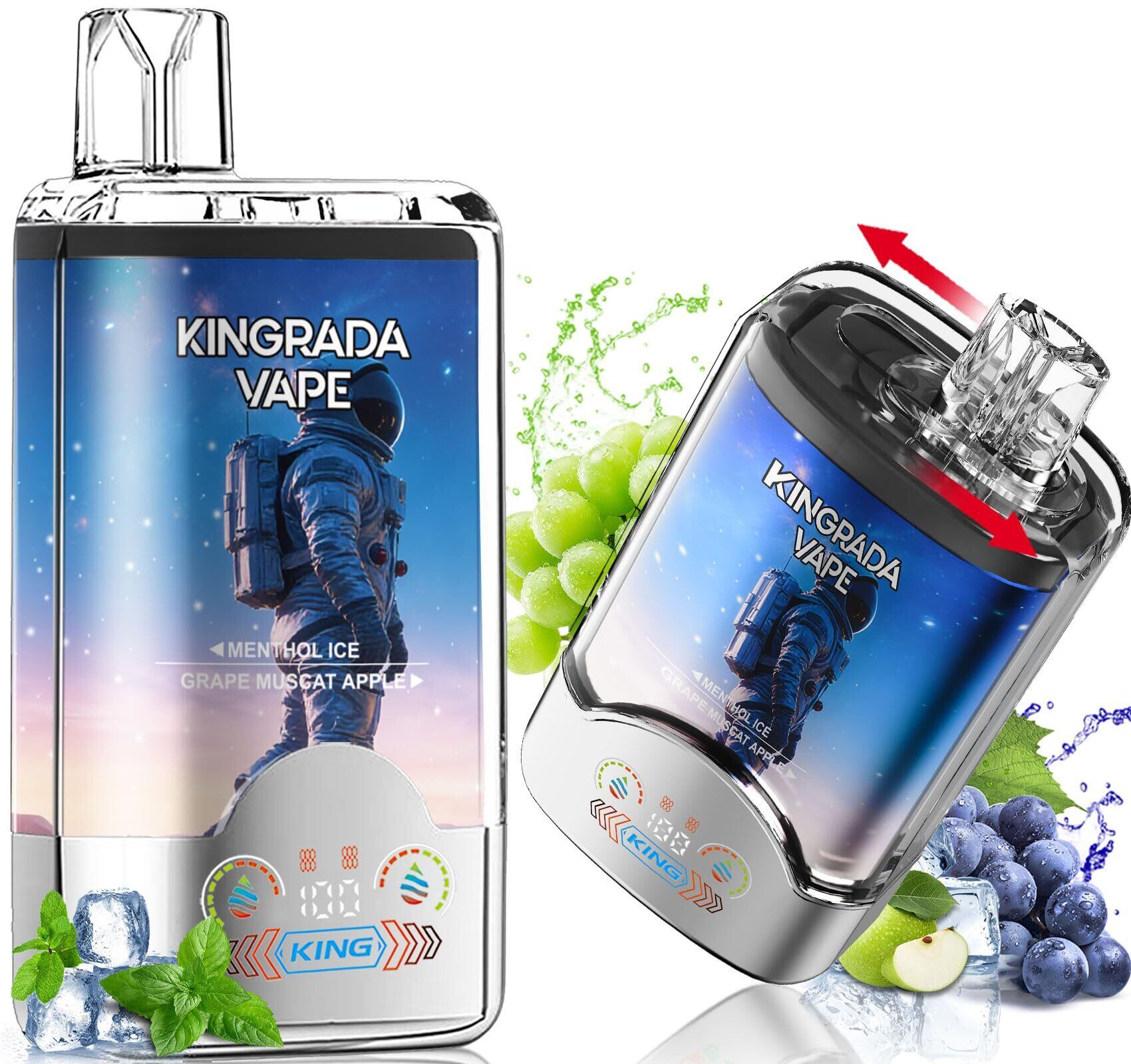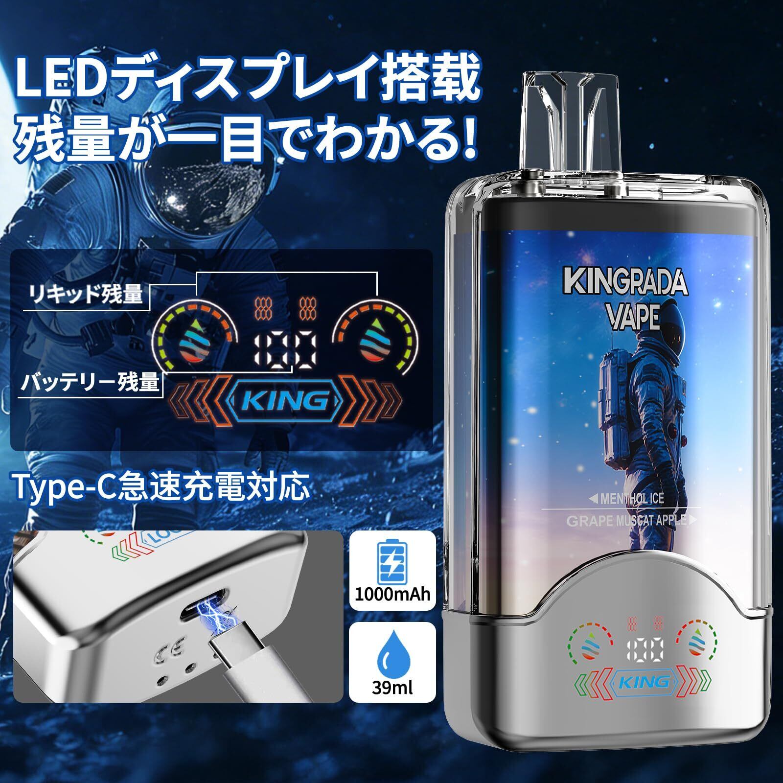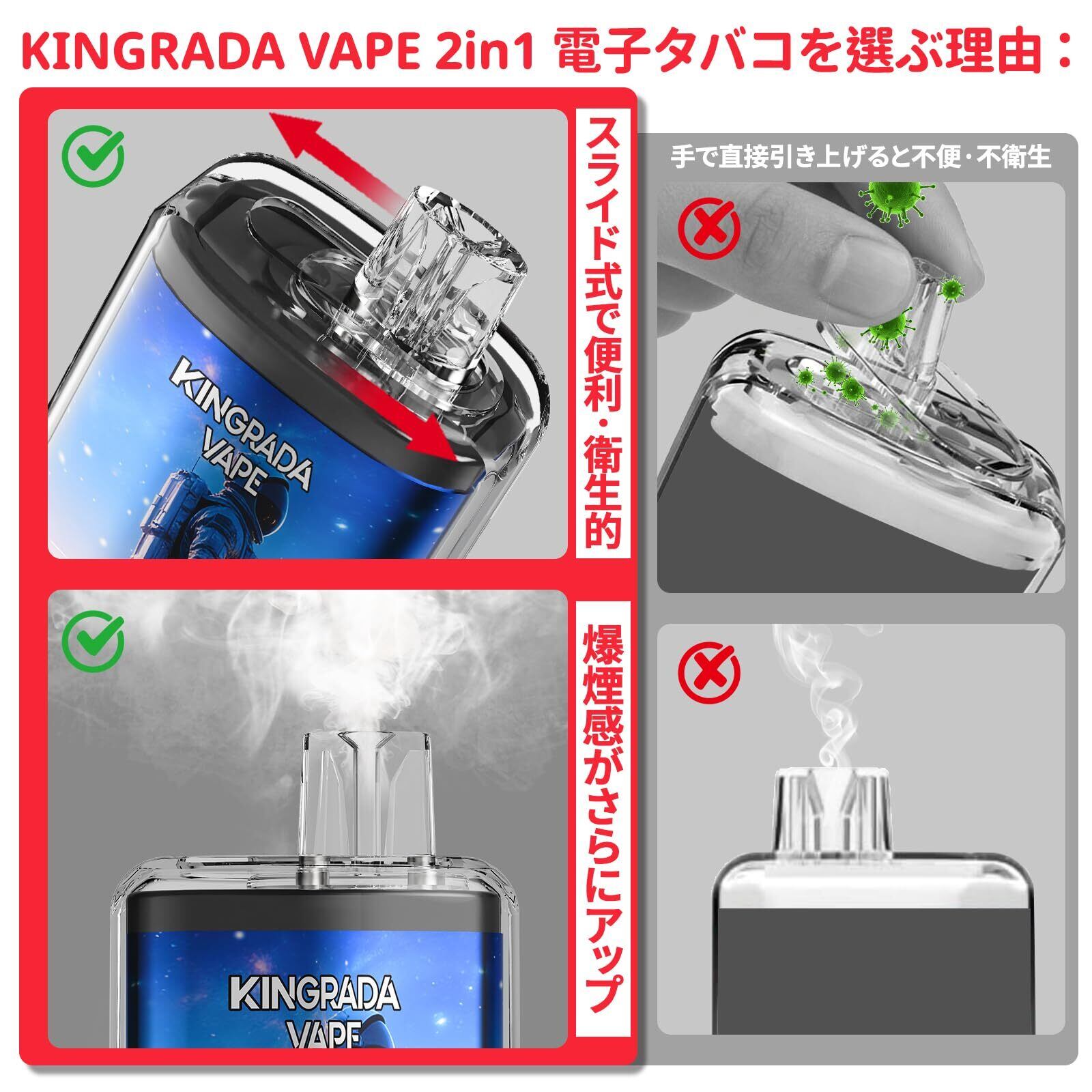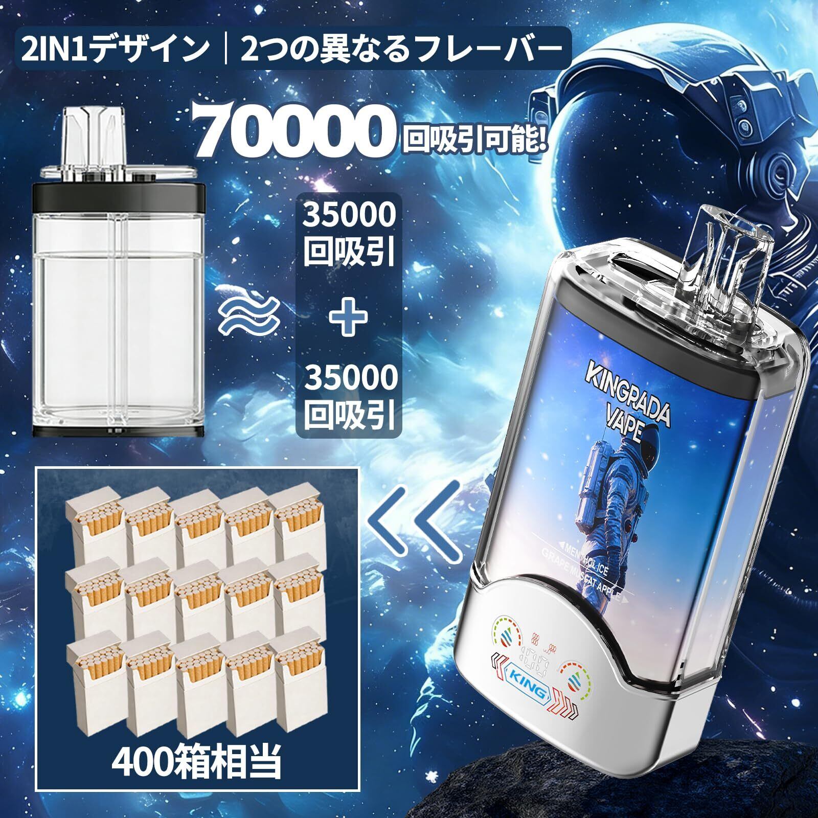 電子タバコ 使い捨て VAPE 【70000回吸引可能 1本でダブルフレーバー】 充電式 ベイプ 2in1 シーシャ ニコチンなし タールなし LEDディスプレイ搭載 KINGRADA VAPE 持ち運び 電子タバコ 爆煙 1000mAh大容量バッテリー バッテリー残量表示 リキッド残量表示 特製スライド式マウスピースでストレス解消 気分転換 たばこ 禁煙パイポ 水蒸気タバコ 禁煙サポート ビタミン入り (メンソール + マスカット·グレープ·青りんご) | kki