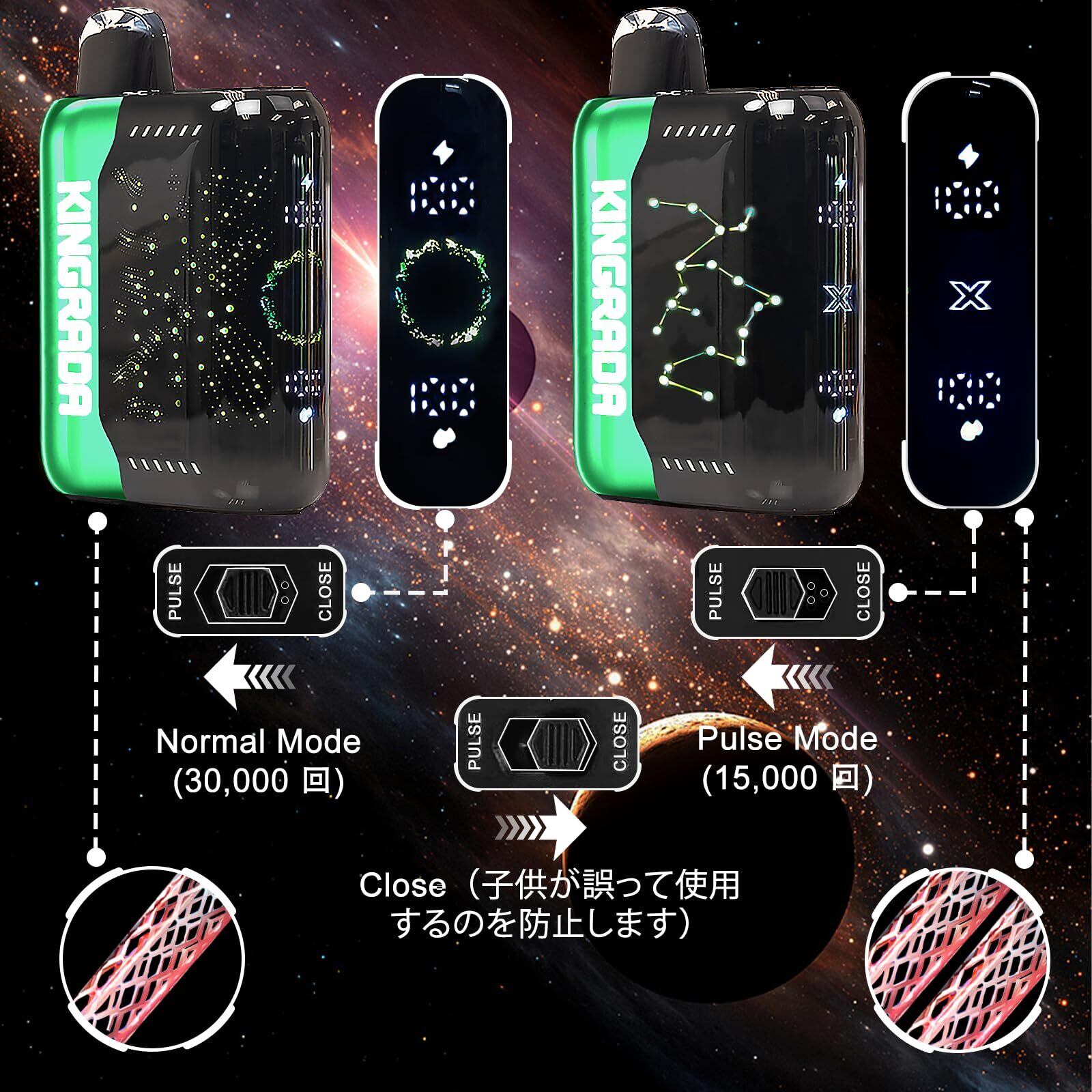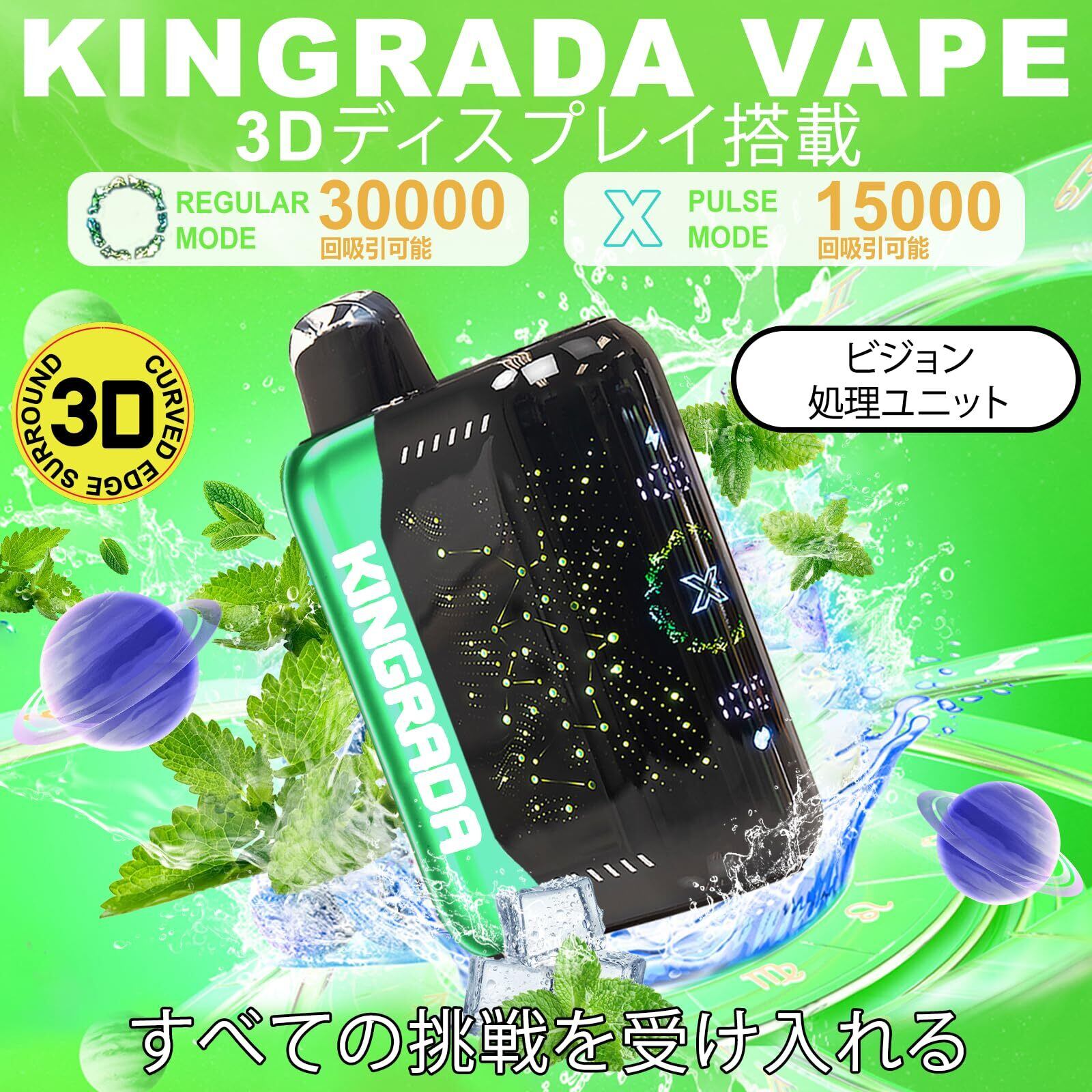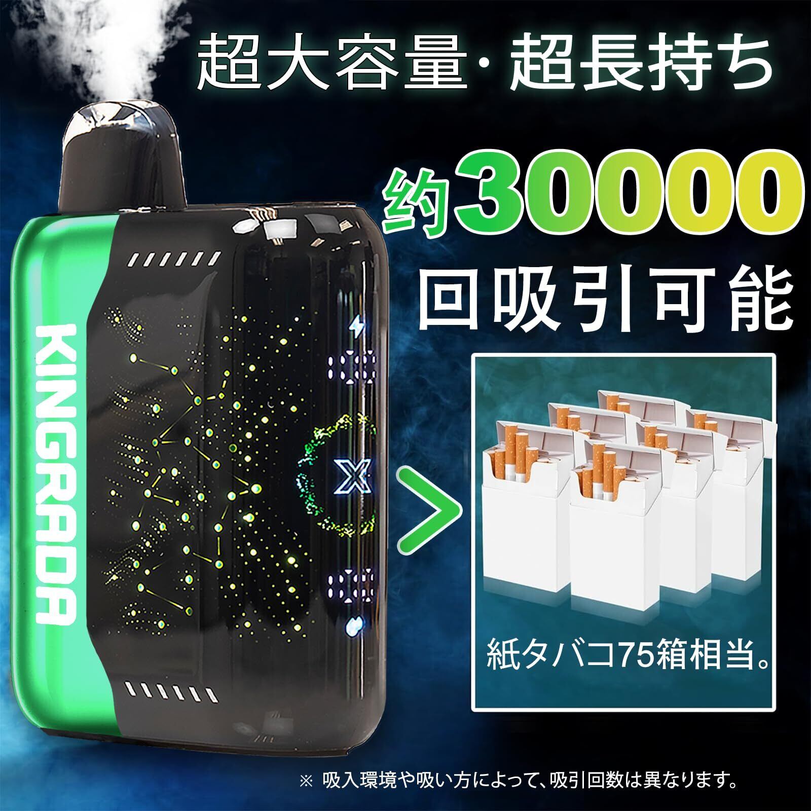 電子タバコ 使い捨て VAPE 30,000回吸引可能 シーシャ 持ち運び 充電式 フレーバー ニコチンなし タールなし 禁煙 ベイプ 3Dディスプレイ搭載 たばこ 大容量 禁煙パイポ 爆煙 水蒸気タバコ 禁煙サポート 煙量調節可能 ビタミン入り Kingrada (メンソール) | kki
