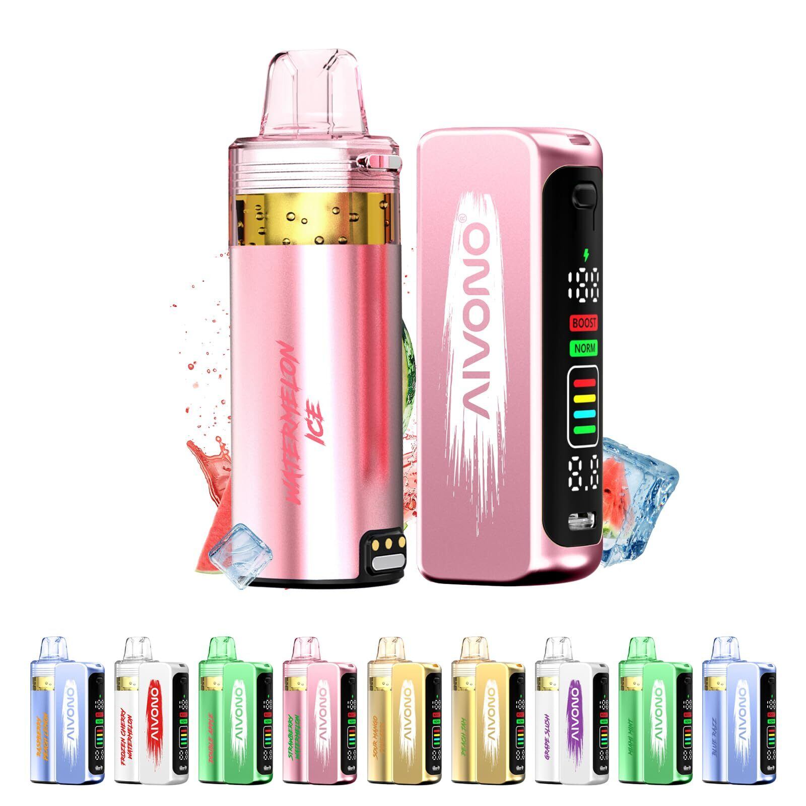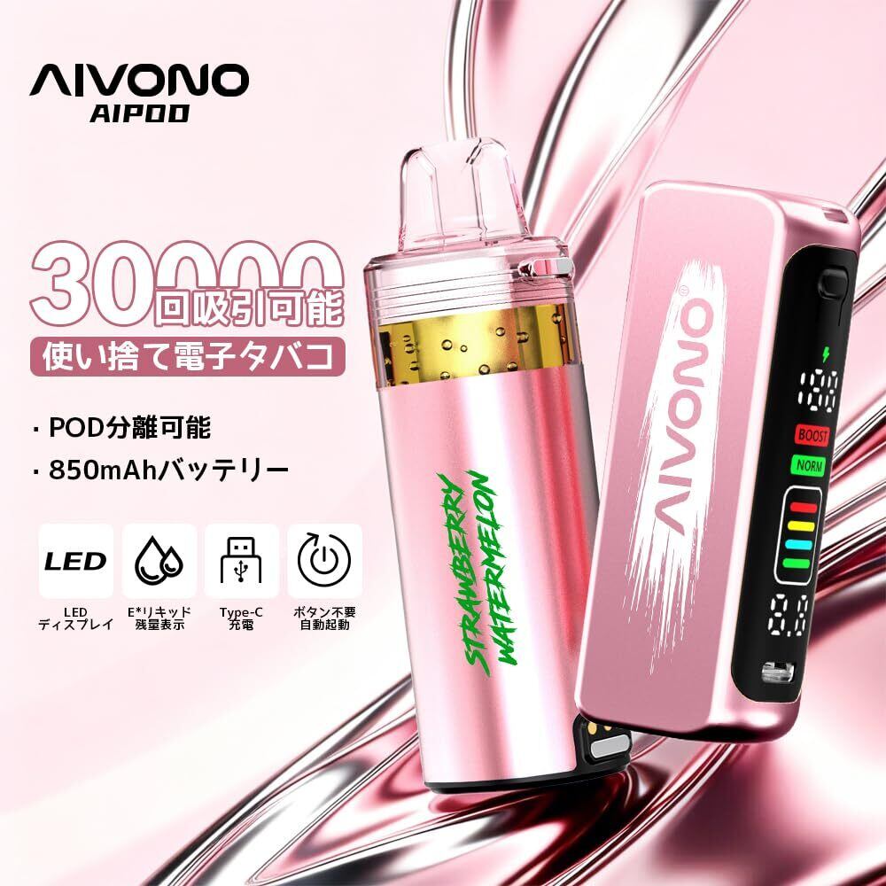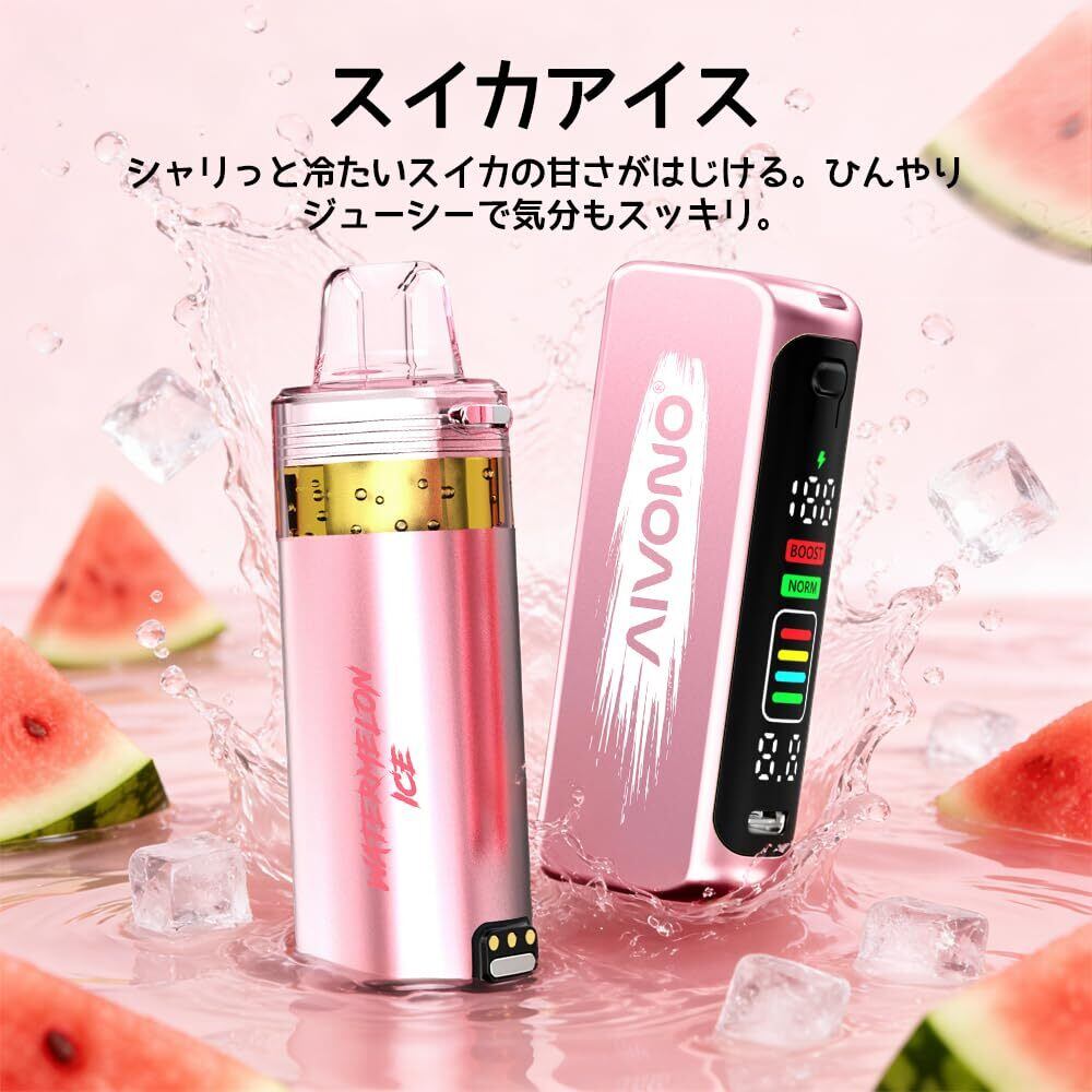 AIVONO 電子タバコ 使い捨て 30000回吸引可能 ベイプ 爆煙 持ち運び シーシャ 大容量 850mAhバッテリー 充電式 エアフロー LEDスクリーン 人気フレーバー 液漏れなし 禁煙サポート ニコチン0 タール0 (スイカアイス) | kki