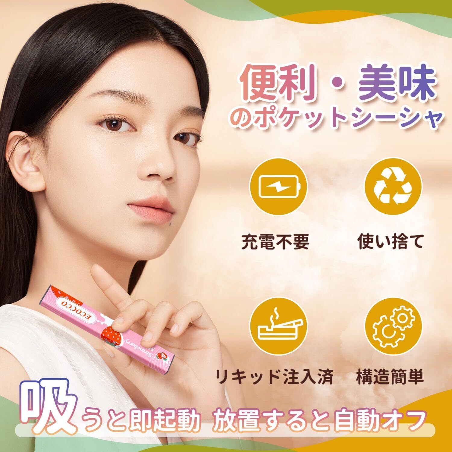 ECOCCO 電子タバコ VAPE ミニシーシャ 1本約300回吸引可能 使い捨てノンニコチン タール無し 持ち運びシーシャ リキッド メンテナンス不要 水蒸気タバコ水蒸気タバコ 禁煙サポート (メンソール*5) | kki