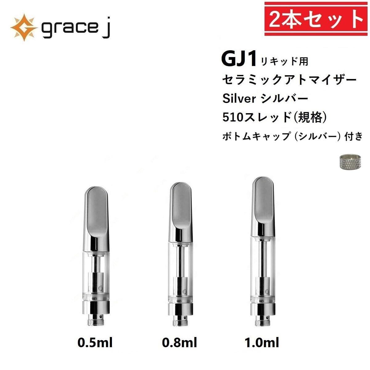 セラミック アトマイザー 510 シルバー リキッド用 1.4Ω 【ボトムキャップ + ケース付き 2本セット】0.5ml or 0.8ml or 1.0ml 510スレッド 510規格 交換用 VAPE CBD リキッド GJ1 (0.8ml) | kki
