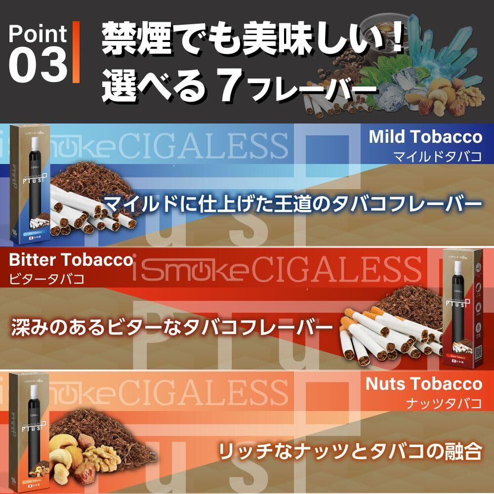 iSmoke Cigaless Plus 電子タバコ タール ニコチン0 VAPE ベイプ 電子タバコ 使い捨て シーシャ 持ち運び スターターキット 本体 (重さ 6mg, ビタータバコ 3本) | kki