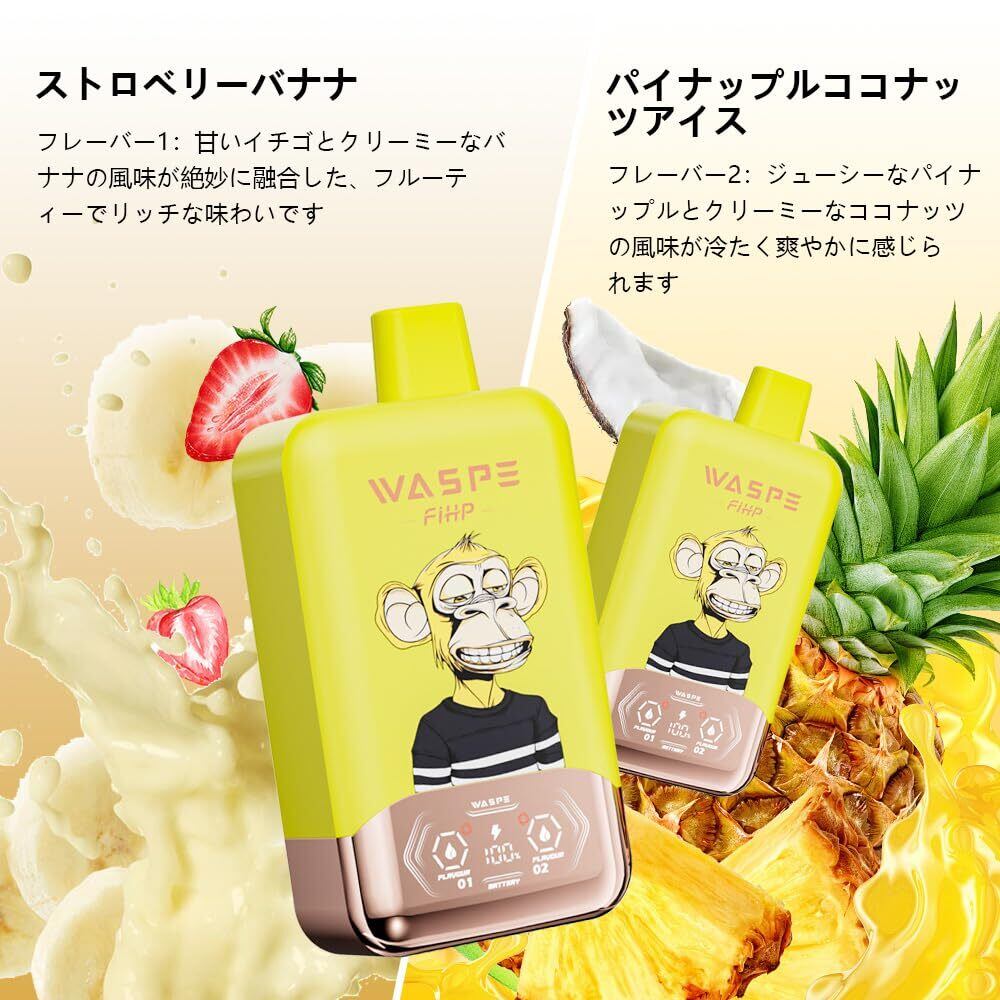 【40000回】電子タバコ 使い捨て WASPE 40000回吸引 vape シーシャ 持ち運び ベイプエンジン 本体 水蒸気タバコ 爆煙 禁煙グッズ 禁煙パイポ Type-C 650mAh 充電式 ニコチンなし タール無し (ストロベリーバナナ&パイナップルココナッツアイス) | kki