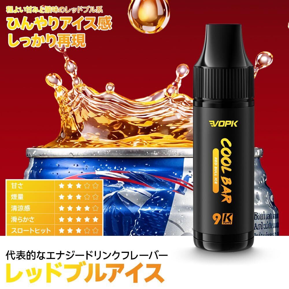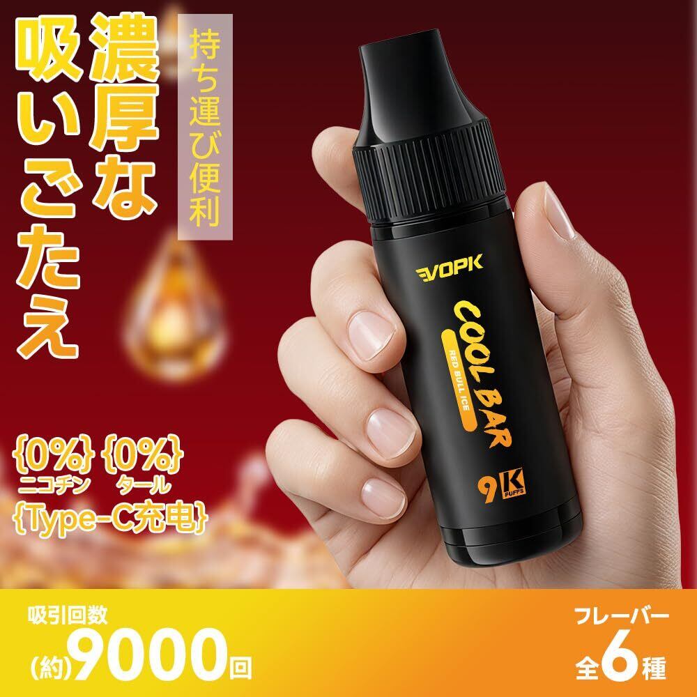 電子タバコ 使い捨て 9000回吸引可能 爆煙 シーシャ 持ち運び便利 水蒸気タバコ ニコチンなし タールなし 禁煙サポート 薄型 軽量 レッドブルアイス