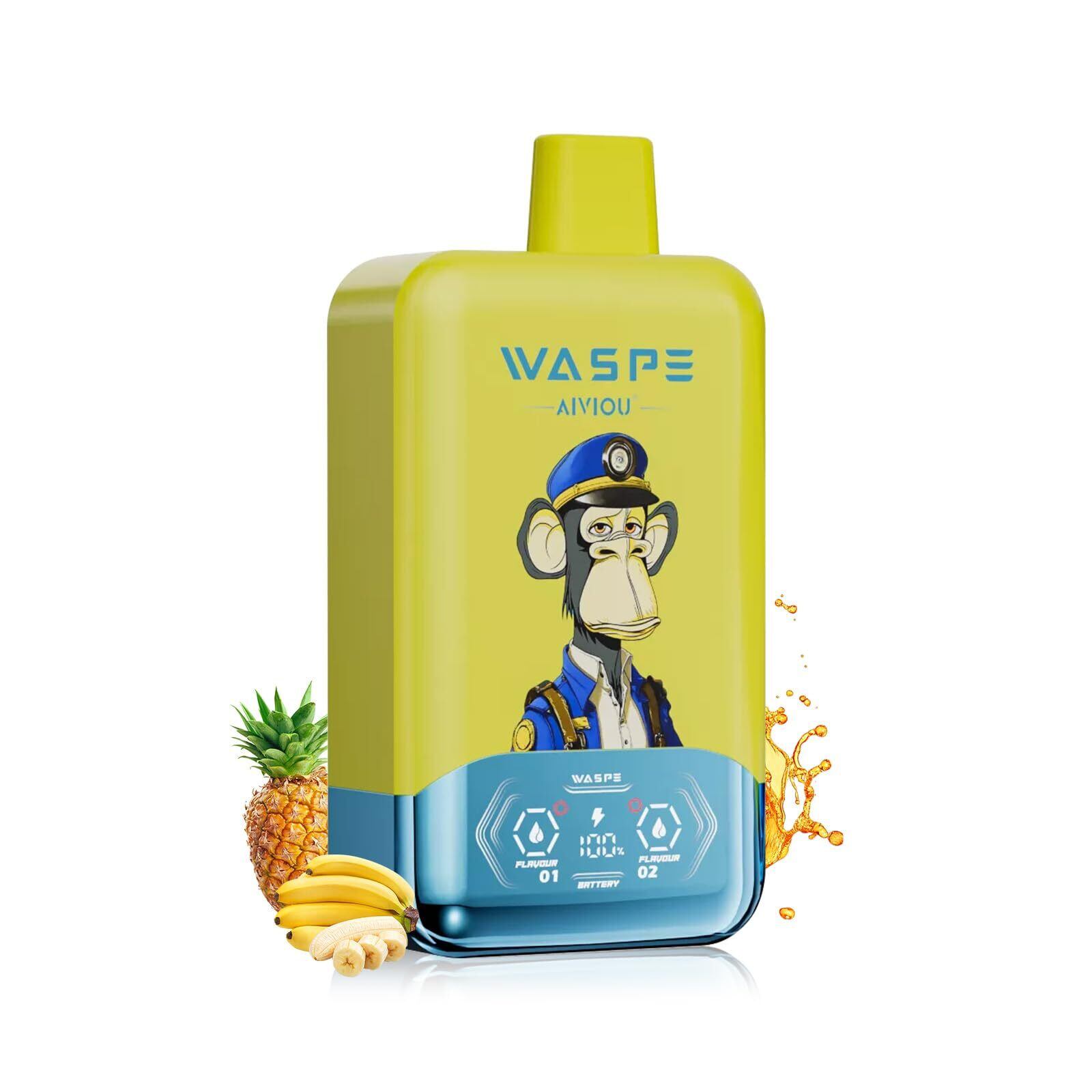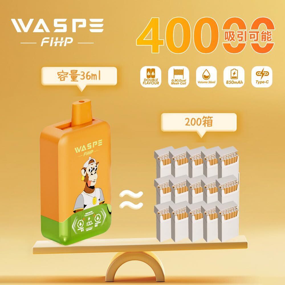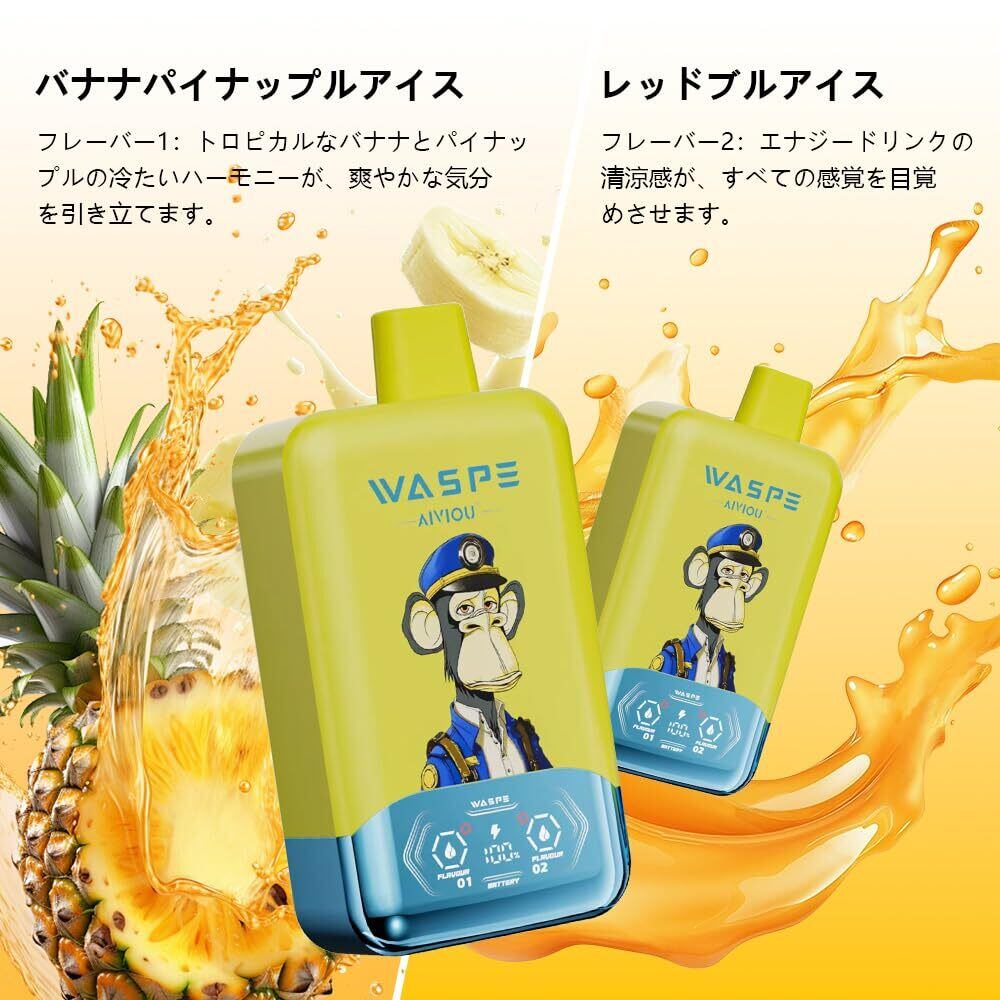 【ダブルフレーバー】 使い捨て電子タバコ40000回吸引 WASPE メッシュコイル E-リキッドとバッテリーの残量表示 650mAh大容量 Type-C 爆煙 持ち運び シーシャ ニコチンなしタバコなし (Banana Pineapple Ice &レッドブル Ice) | kki