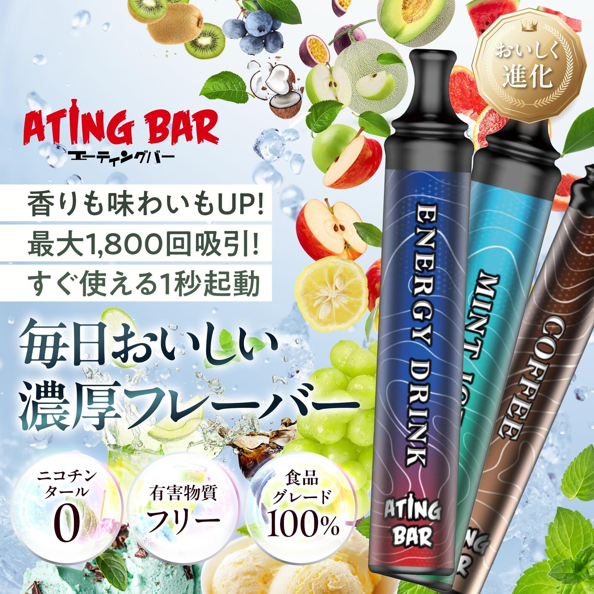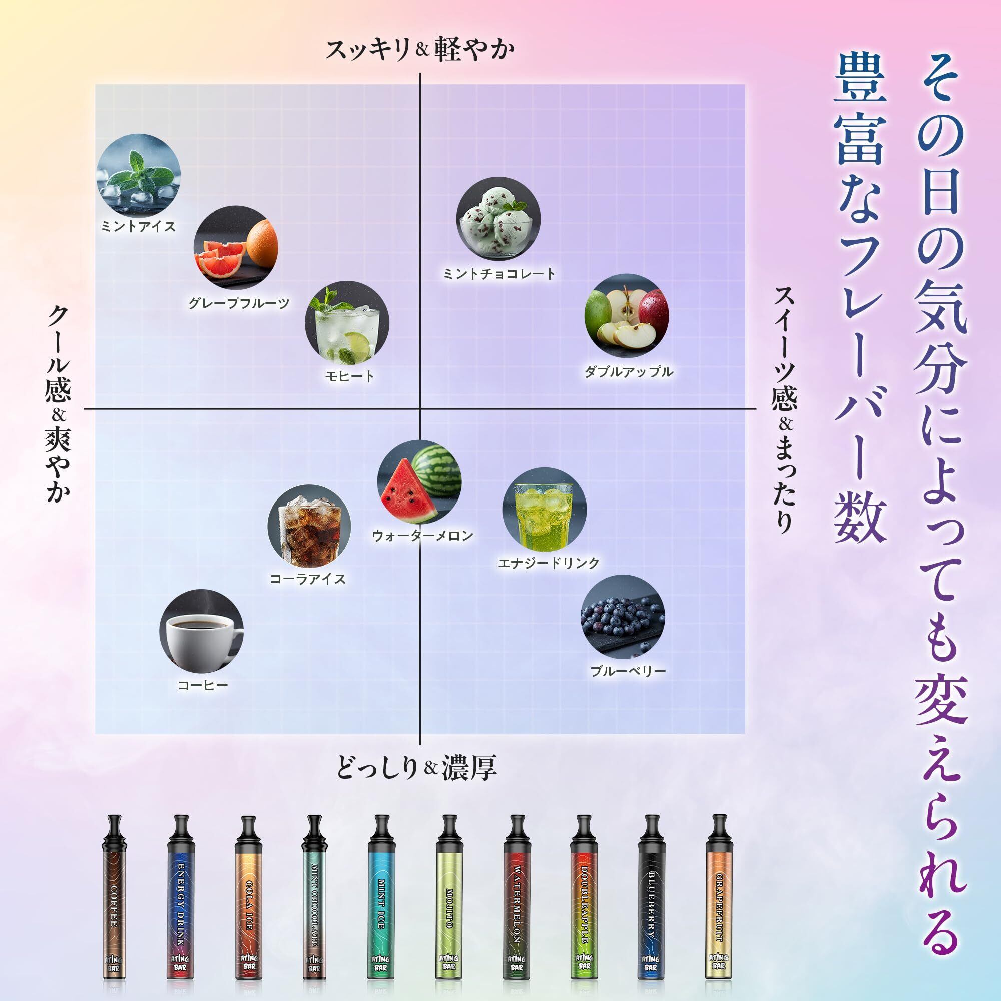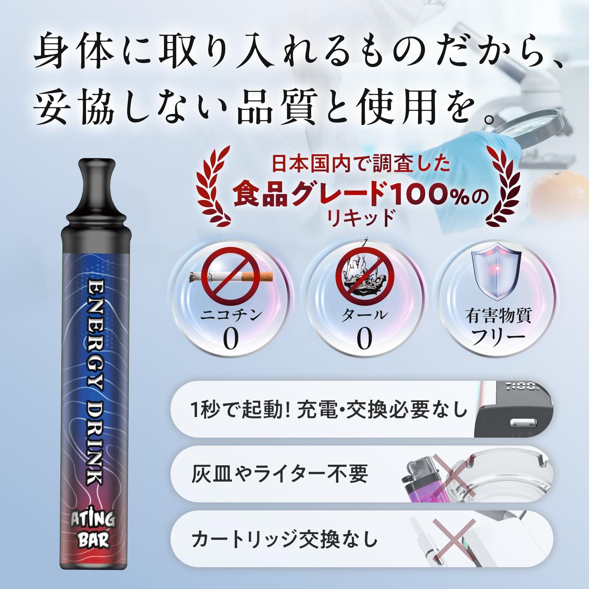 【エーティングバー 公式】 持ち運び シーシャ (1800回 パフ) ニコチン & タール zero 食品成分で安心 [使い捨て 電子タバコ] 水タバコ 禁煙 サポート 【爆煙/新感覚 リラックス 体験】 [ノンニコチン ノンタール 一酸化炭素ゼロ] コンパクト おしゃれ デザイン (2本 / ブルーベリー) 【ATING BAR】 | kki