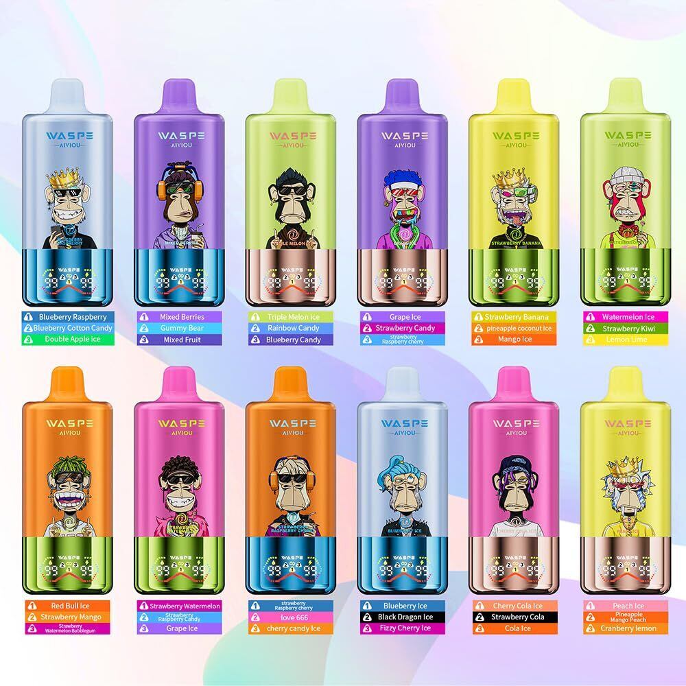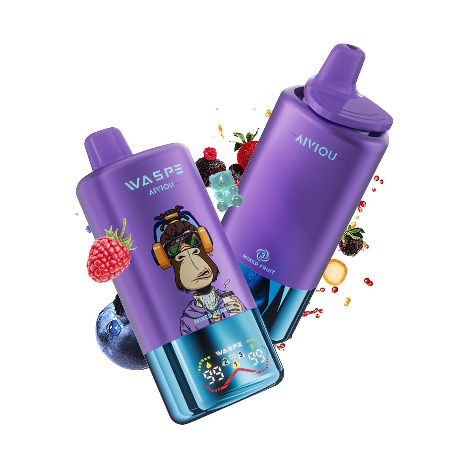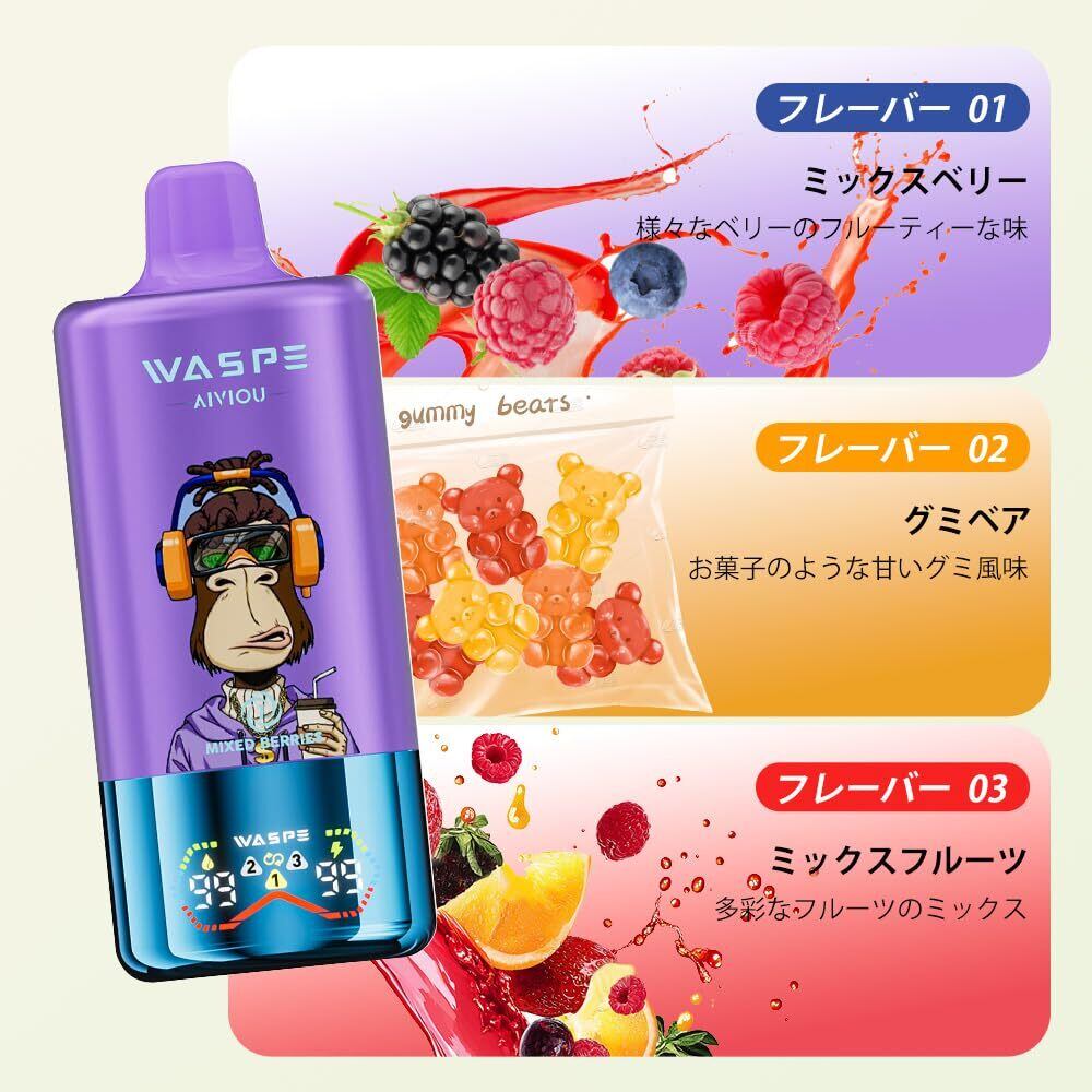 【60000回】Waspe 電子タバコ 使い捨て 60000回吸引可能 54mlの大容量 持ち運び vape ベイプ LEDディスプレイ 爆煙 650mAhバッテリー Type-C充電 禁煙パイポ 3つの味を1つに ニコチンなし タール無し (ミックスベリー *グミベア *ミックスフルーツ) | kki