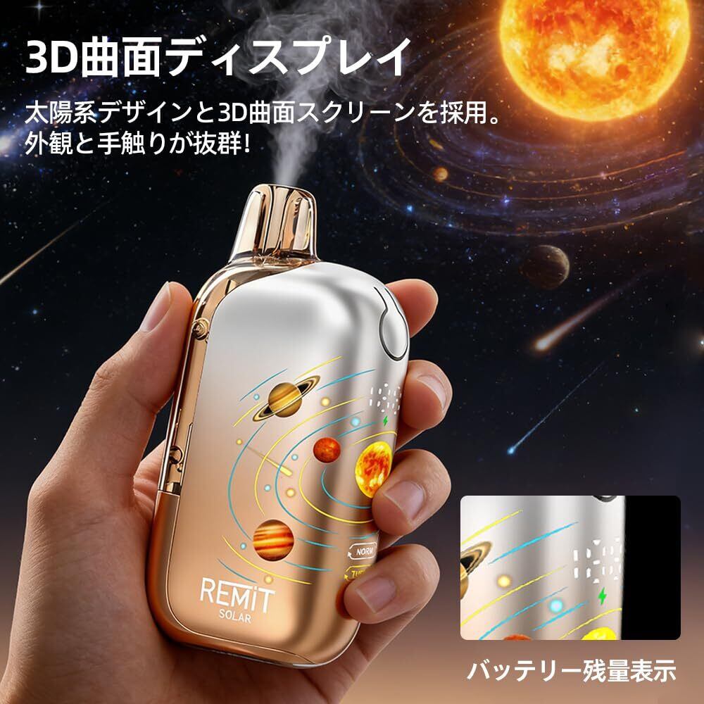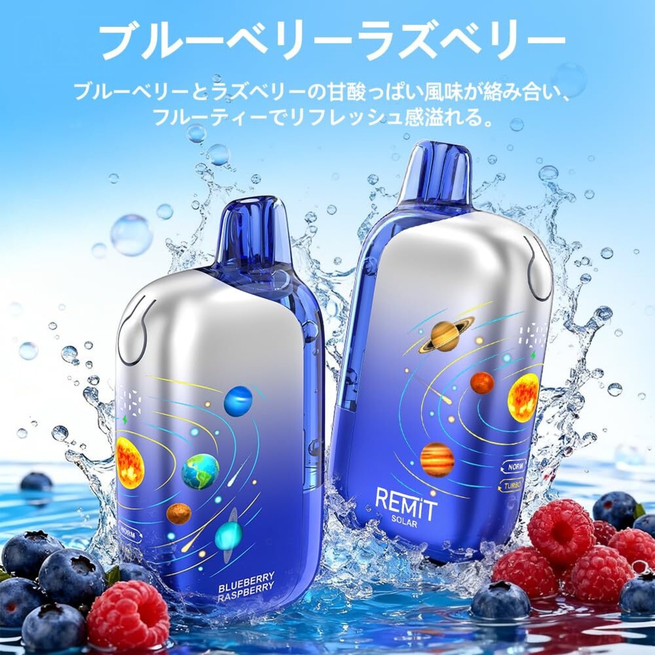 【3D曲面型大画面】 Remit Solar 電子タバコ 使い捨て 50000回吸引可能 vape ベイプ 水蒸気タバコ 900mAh type-c充電対応 煙量調節可能 大容量 爆煙 禁煙グッズ ニコチンゼロ タールなし (ブルーベリーラズベリー) | kki