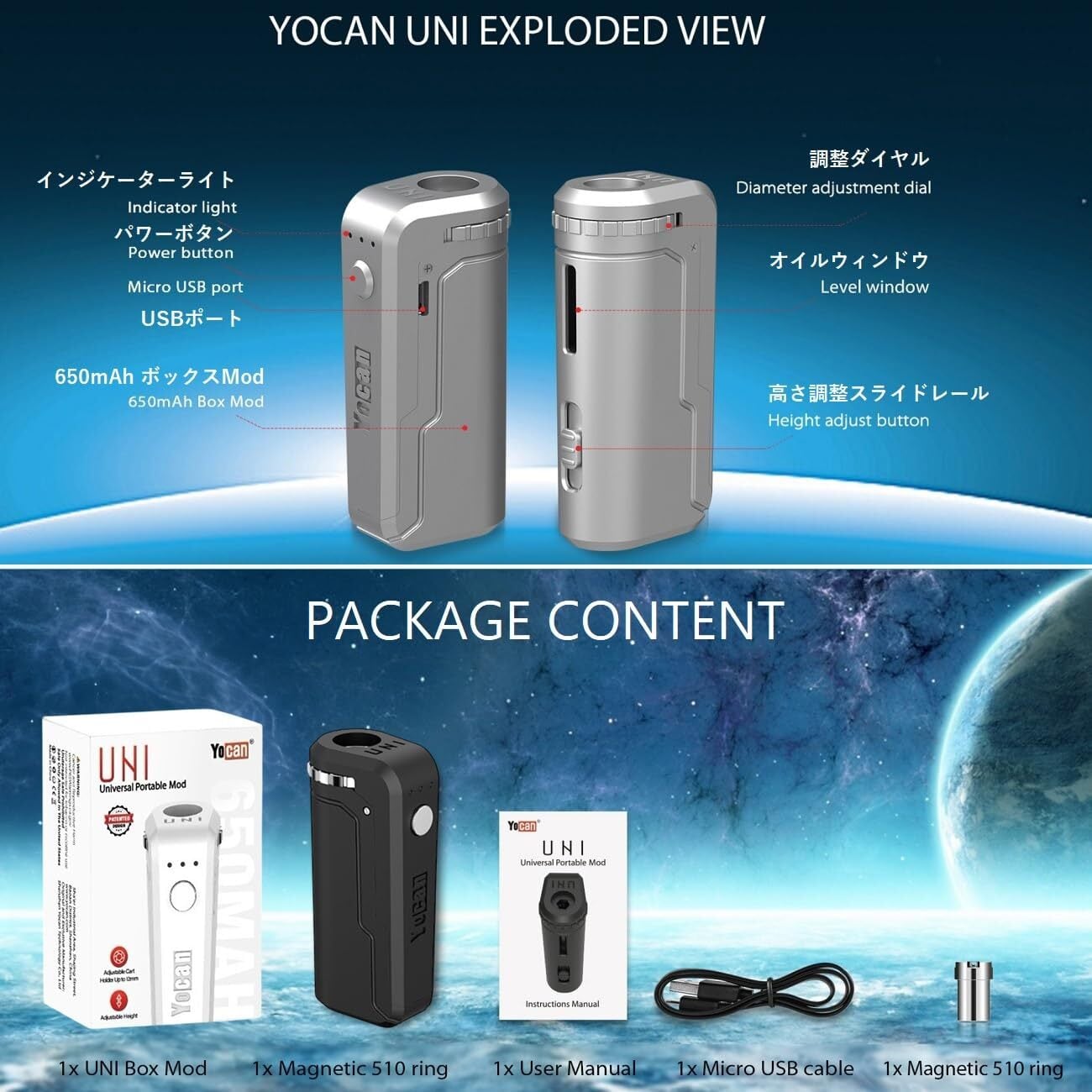 ヴェポライザー Yocan UNI 510 cartridge Battery BOX 650mAh ヨーキャン ユニ カートリッジバッテリー ボックス モッド 510規格 510スレッド 電子タバコ 電子VAPE VAPE CBD 正規品 (オレンジ) | kki