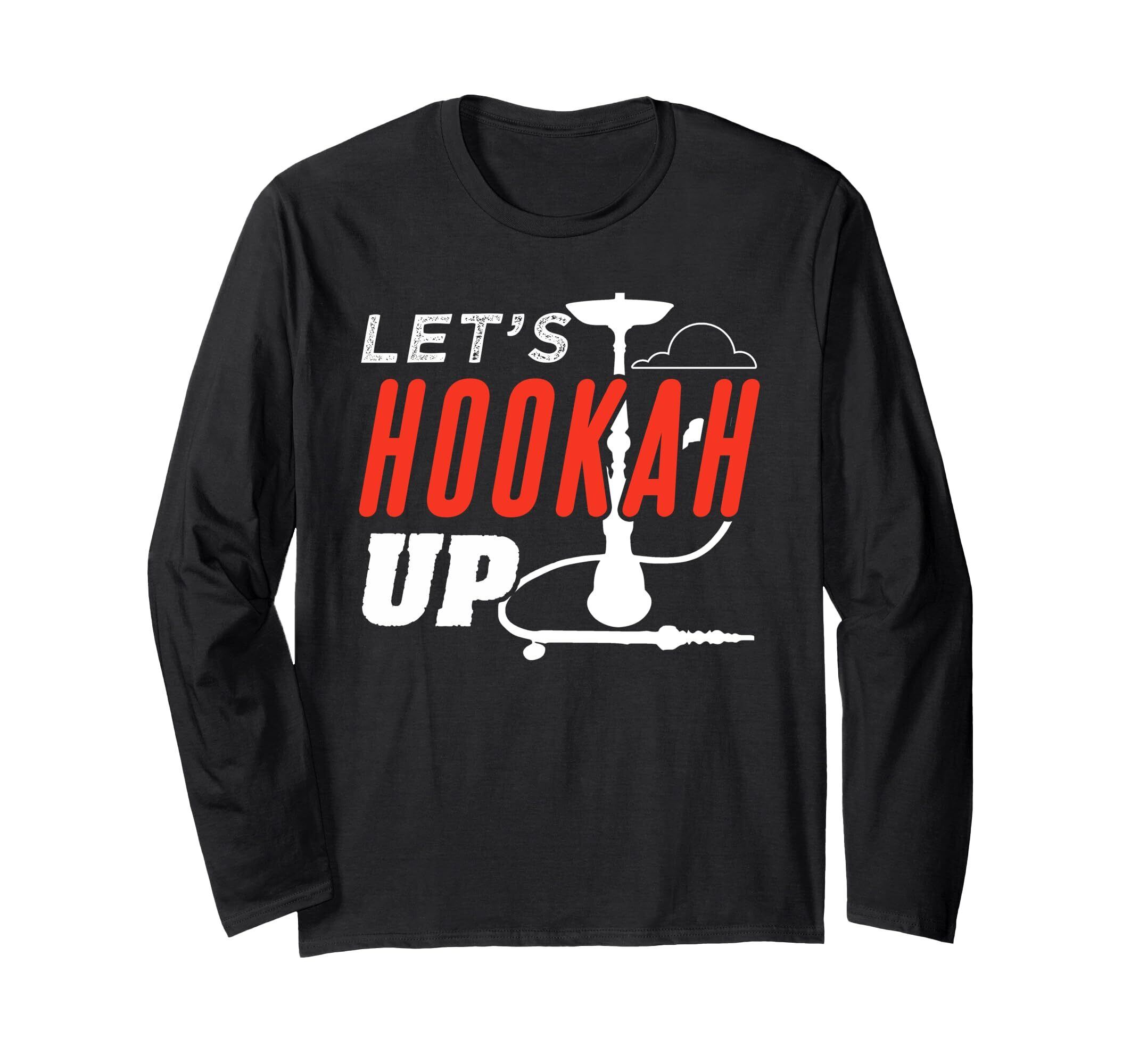 面白 Let's Hookah Up シーシャ 喫煙デザイン 長袖Tシャツ