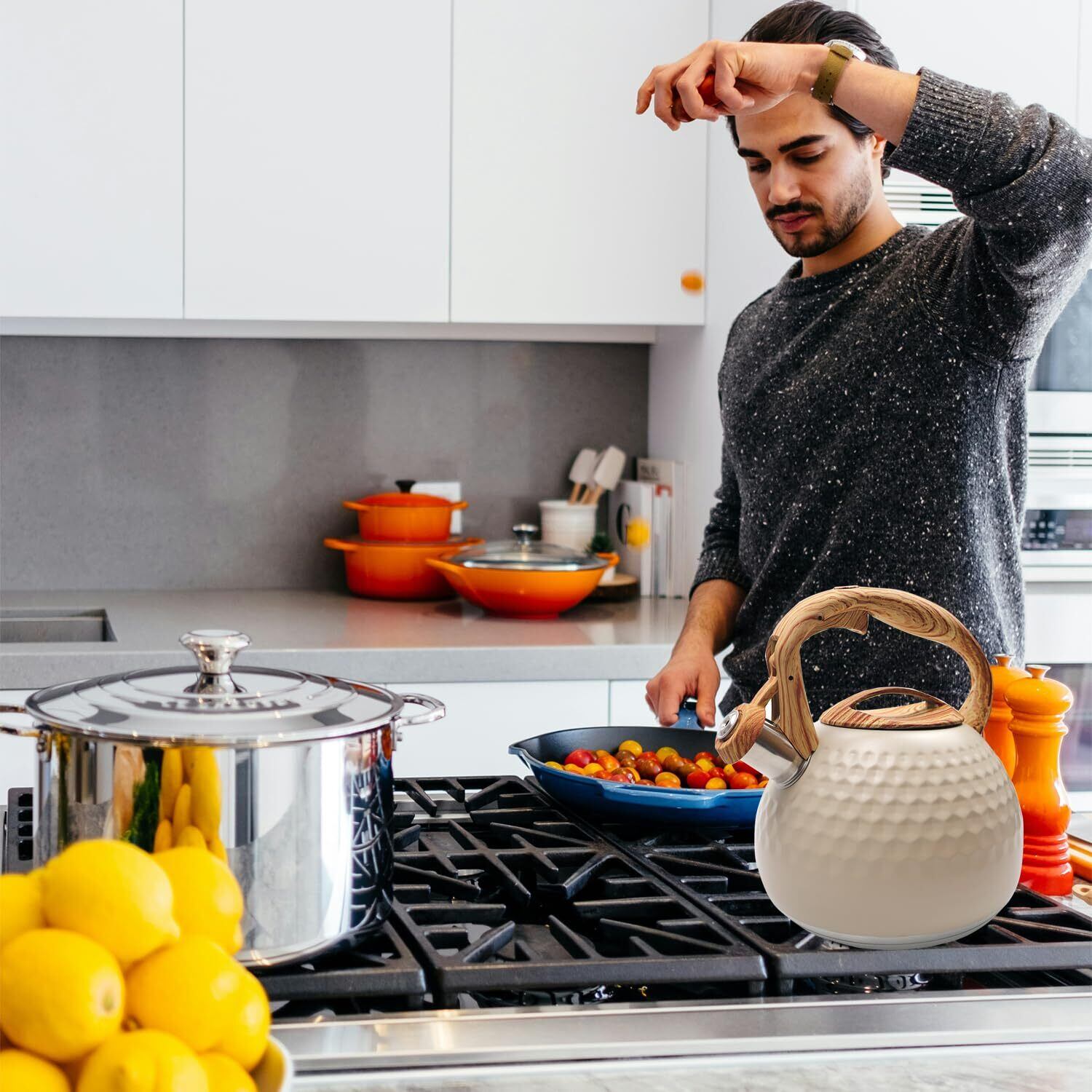 大容量:3リットルの大容量の水は、家族全員のニーズを満たすことができます内蔵ホイッスル大きなホイッスルは、水が沸騰した後、他の部屋からその音を聞くことができる ようにします。 やかんを見なくても、他の家事をしたり、リラックスしたり、映画を見たり、音楽を演奏したりできます。
