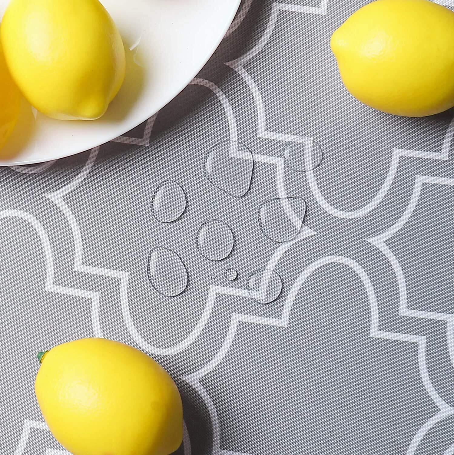 AooHome テーブルクロス ラウンド 円形グロス テーブルカバー 撥水加工 北欧 汚れ防止 お手入れ簡単 グレー 洗える 120cm直径 丸型